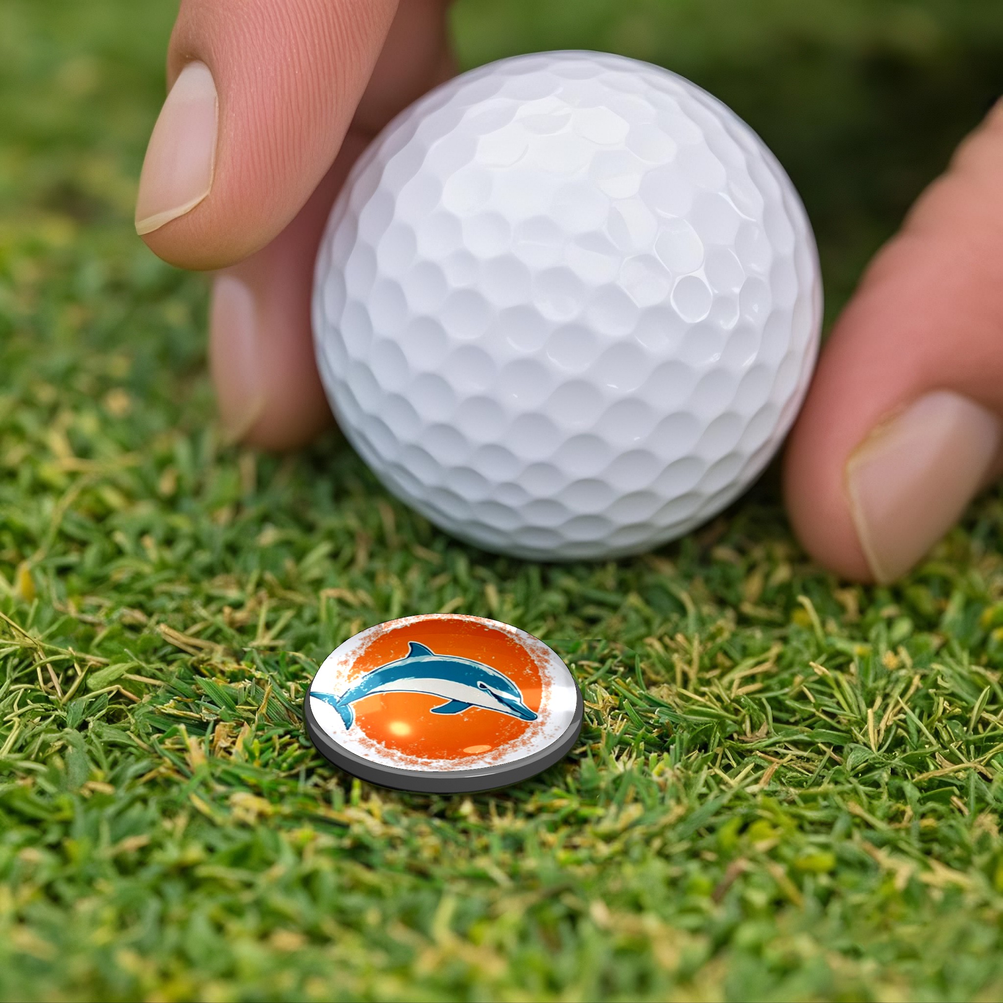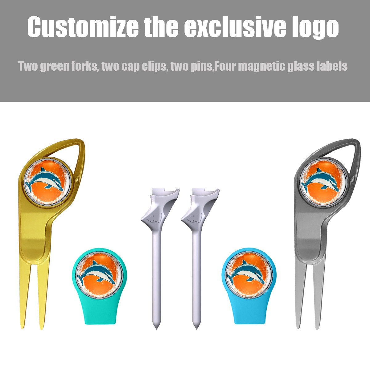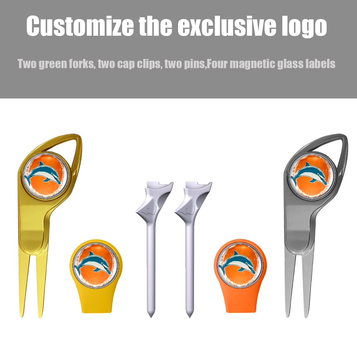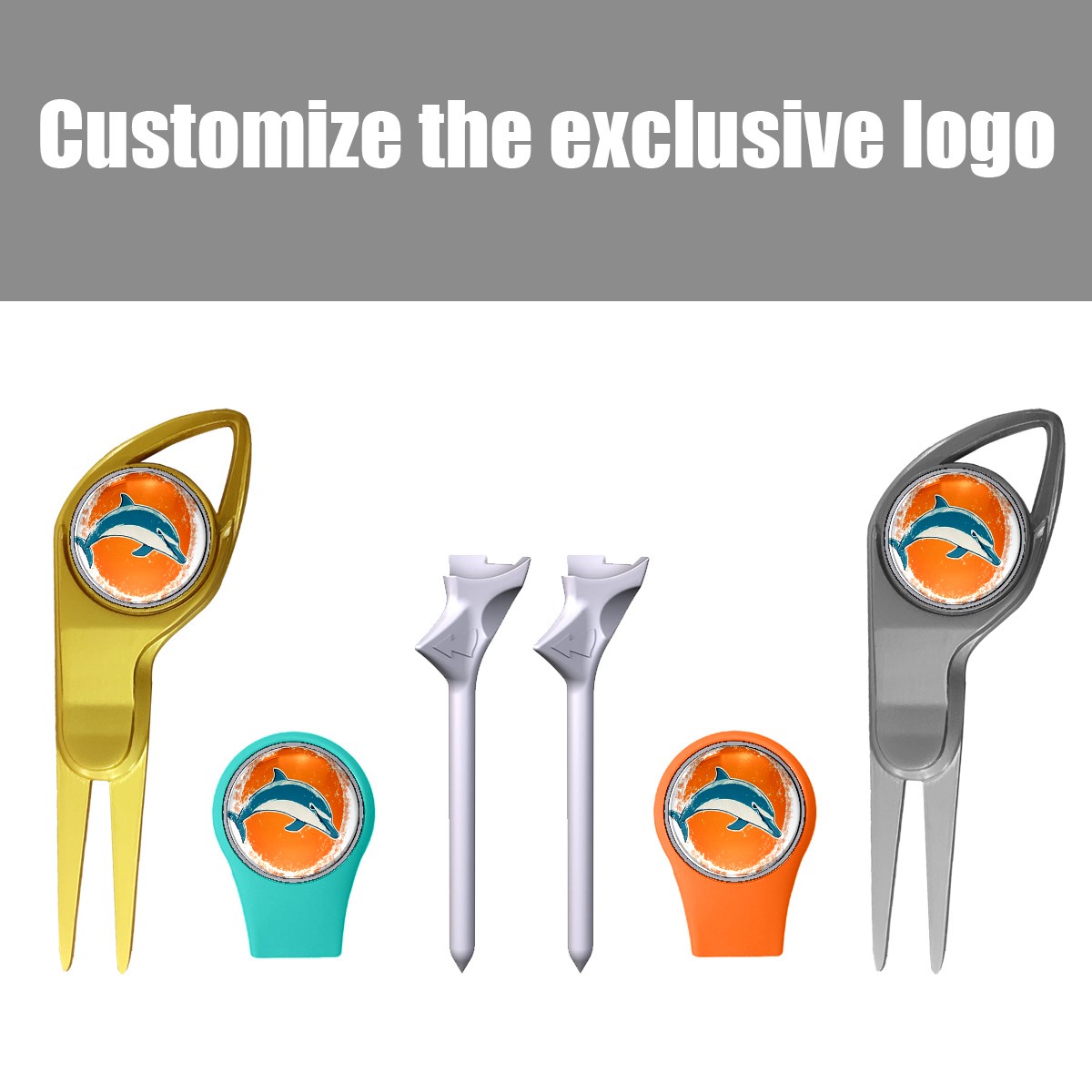 Golf Gift Set for Men Women Golfers Customizable Golf equipment Portable Golf Accessories Set with Golf Ball Tees Divot Tools Hat Clips Magnetic Markers Orange Background Dolphin Graphic