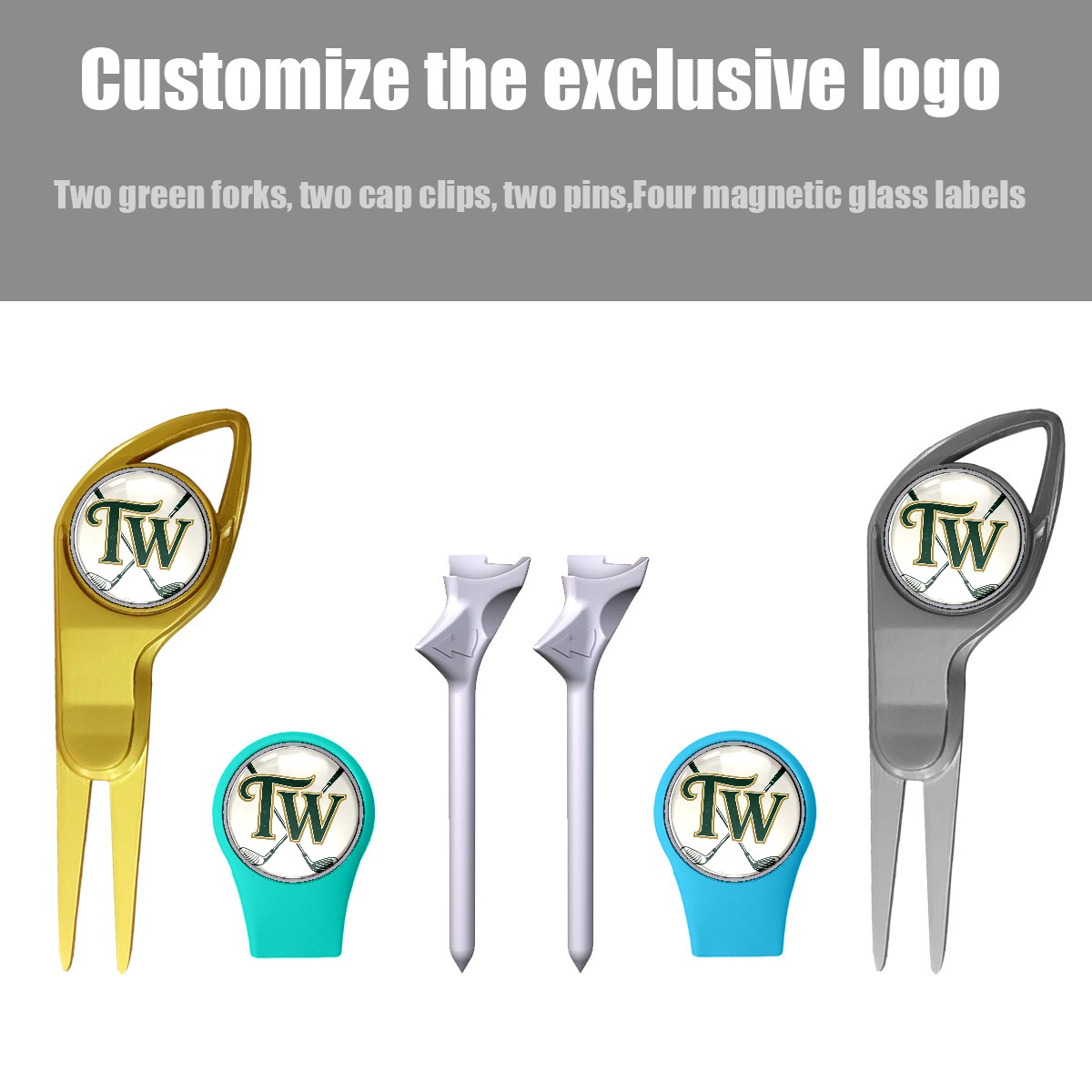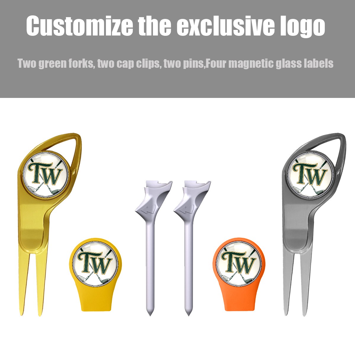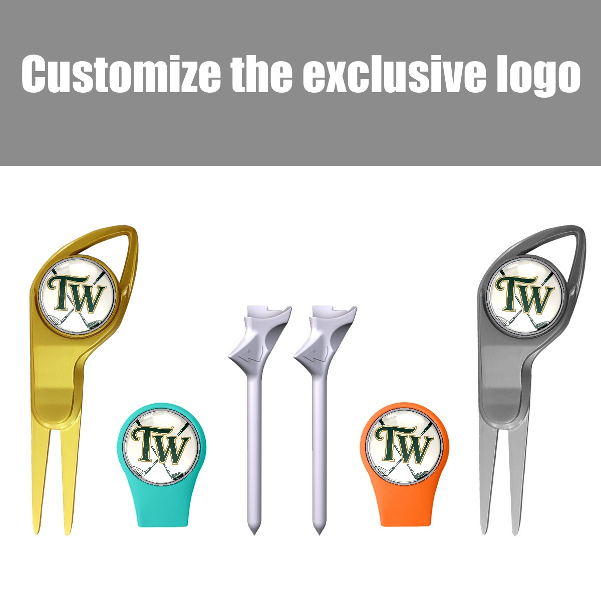Golf Gift Set for Men Women Golfers Customizable Golf equipment Portable Golf Accessories Set with Golf Ball Tees Divot Tools Hat Clips Magnetic Markers "TW" Golf Club Emblem