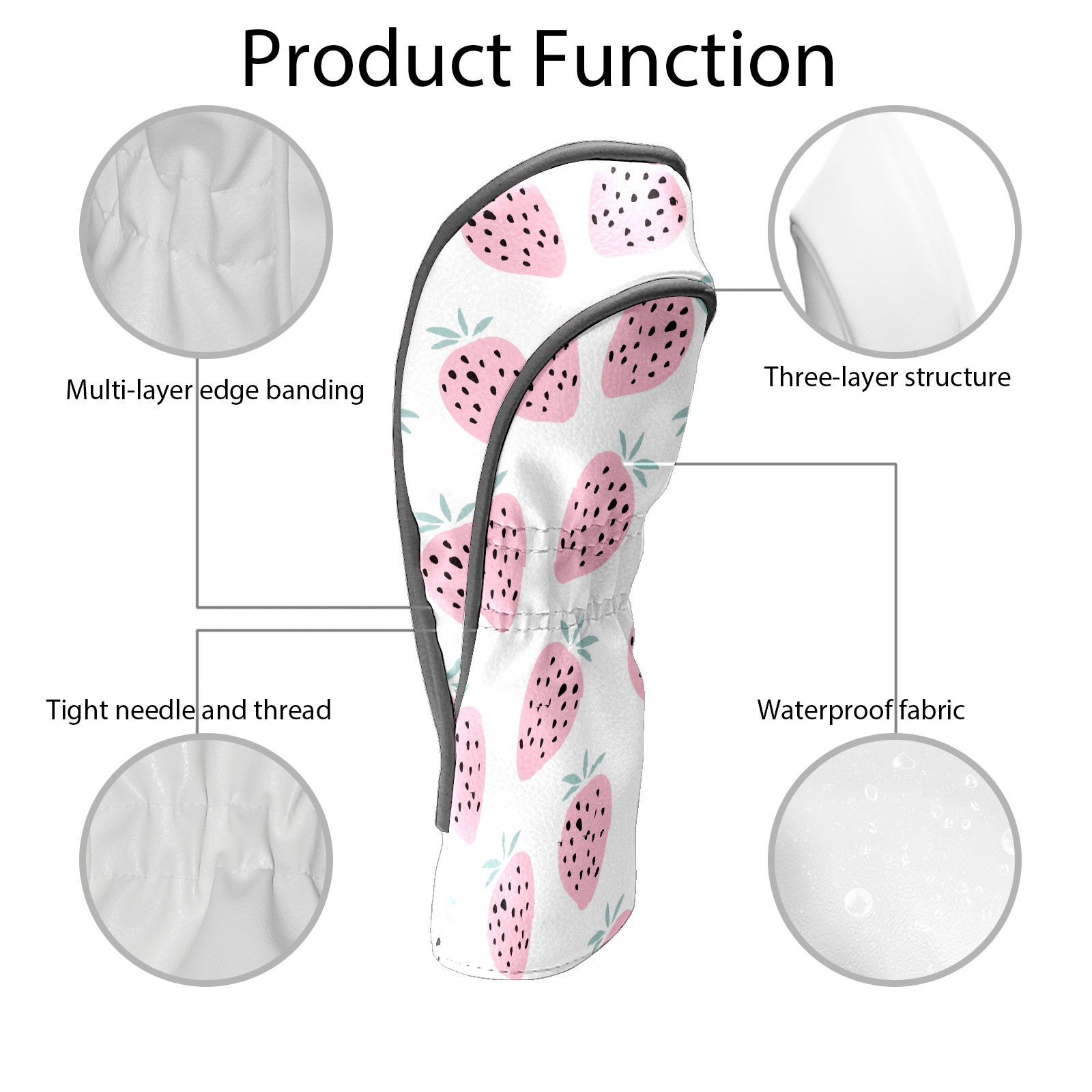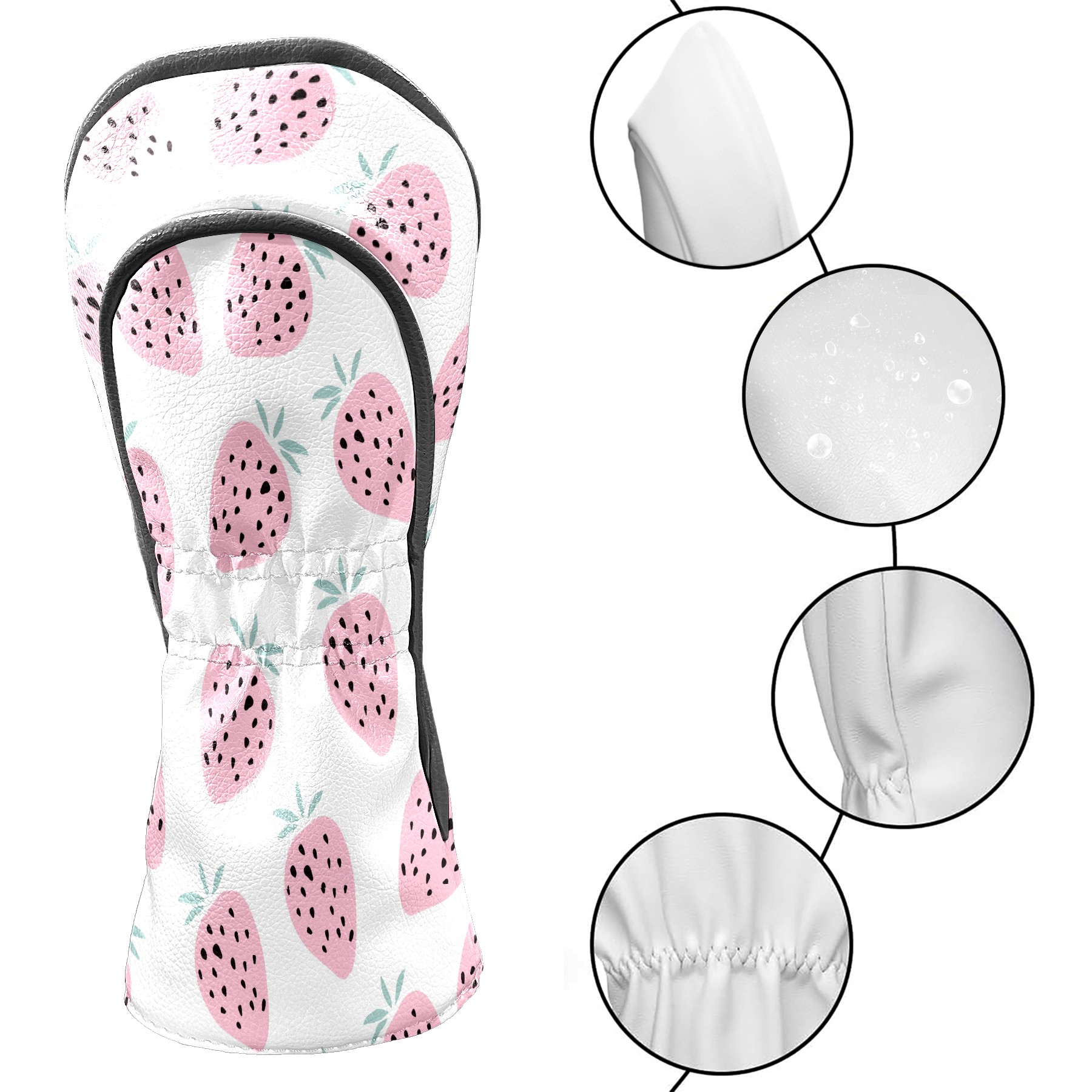 PU Leather Golf Head Covers Set – Fits Drivers/Fairway Woods/Hybrids, Ideal Gifts for Male & Female Golfers Strawberry (1)