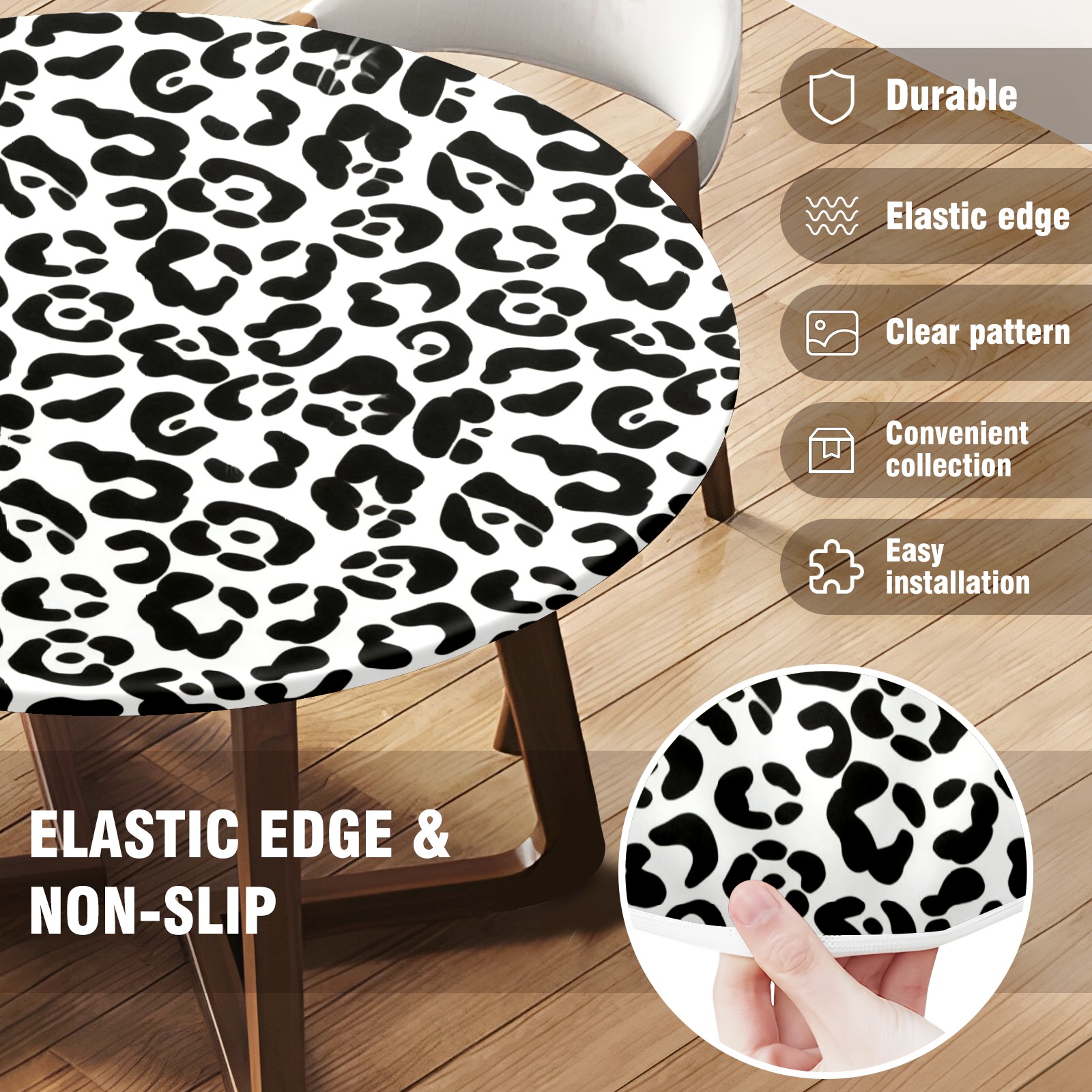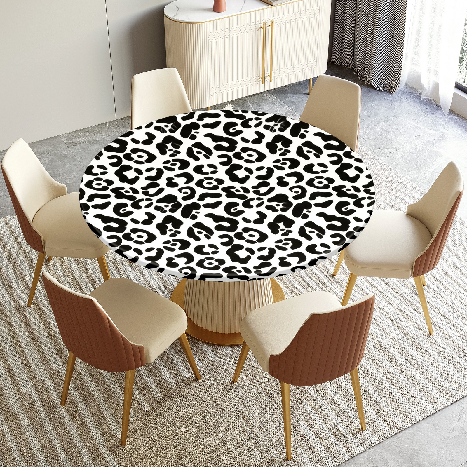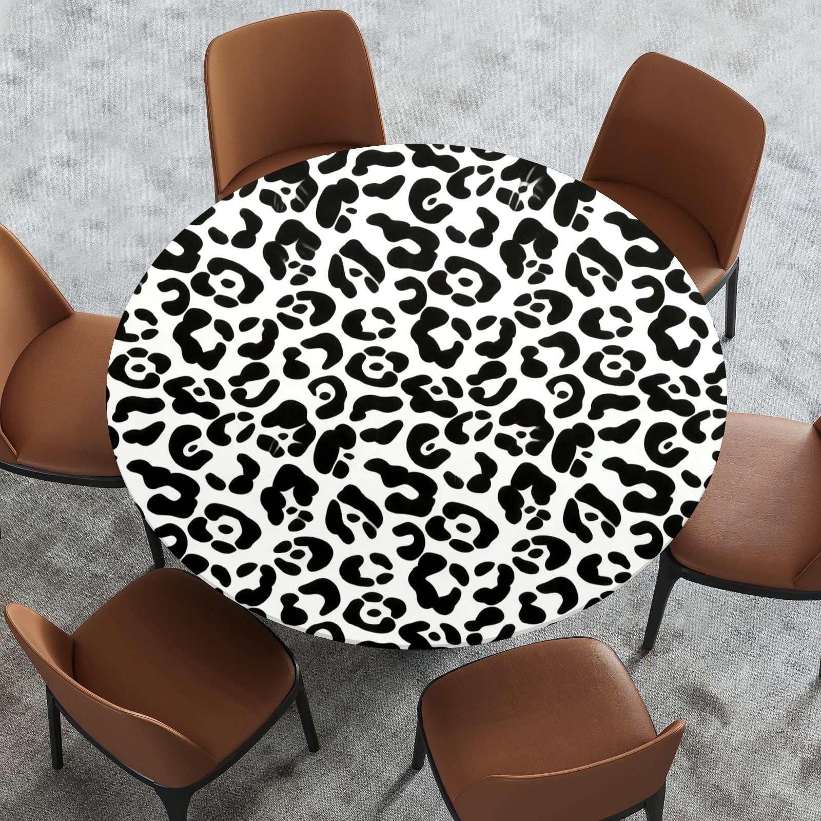 HELVOON Fitted Round Tablecloth - Stretch Vinyl Fabric, Single-Sided Printed, Wrinkle-Resistant & Dur able, Perfect for Dining/Party/Wedding Leopard Print