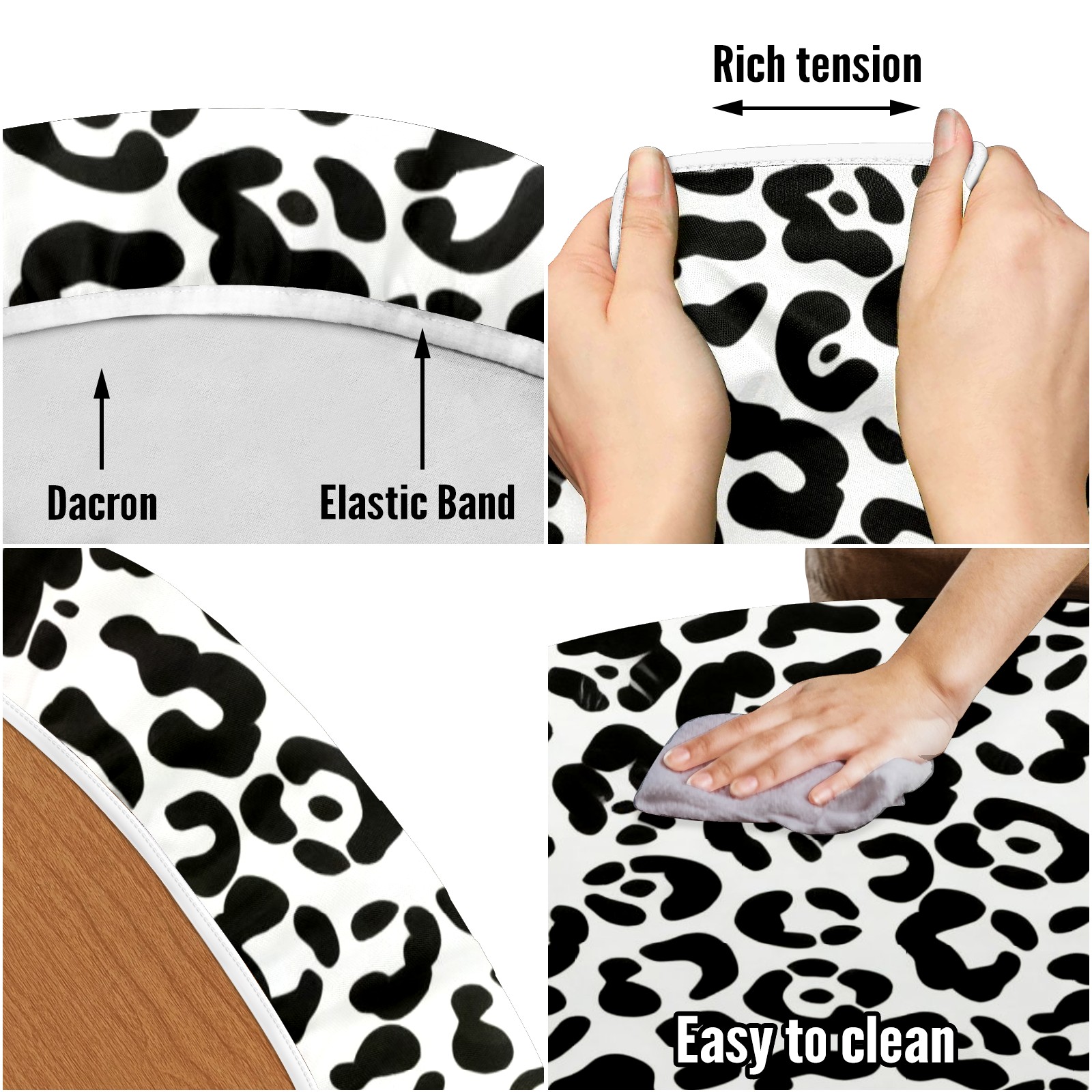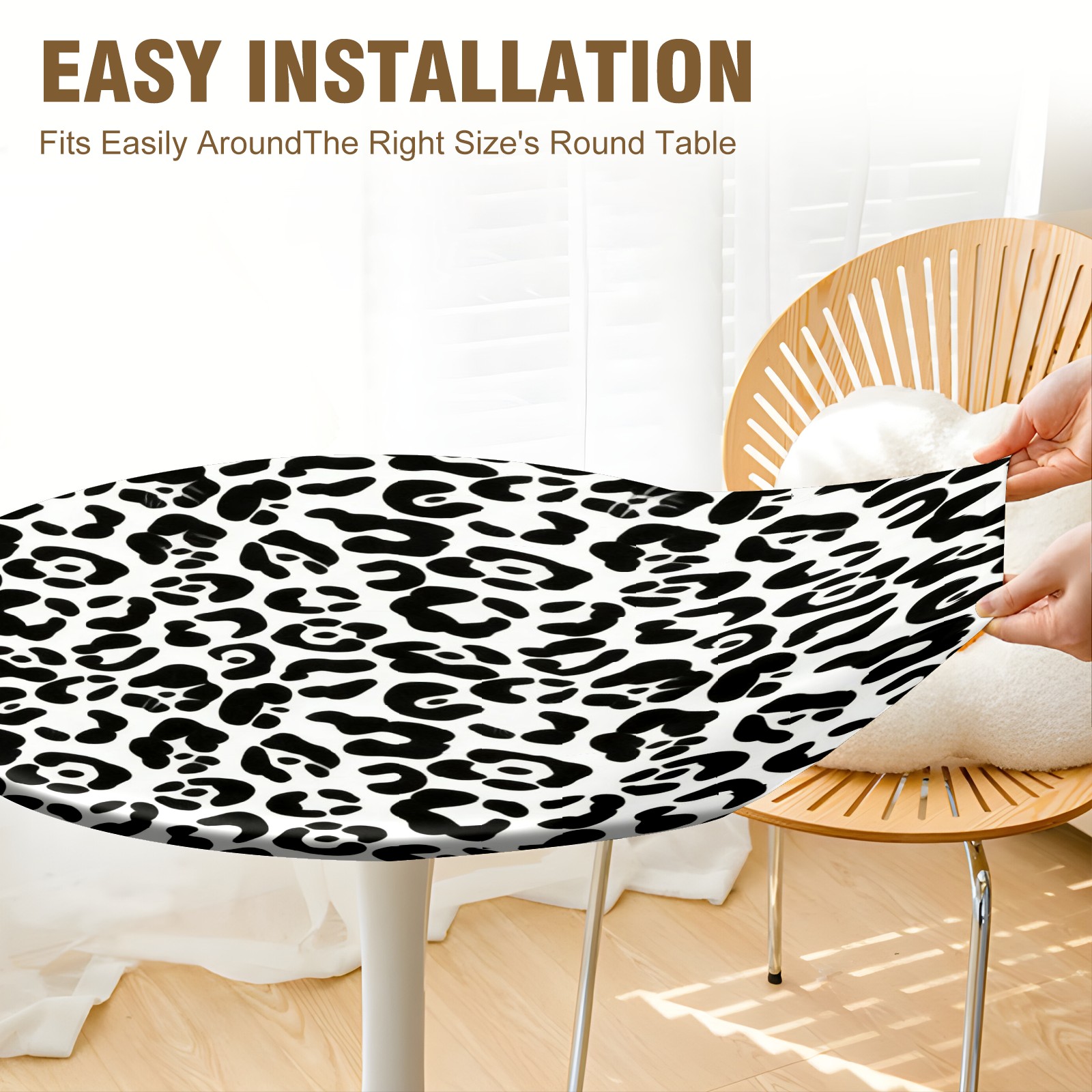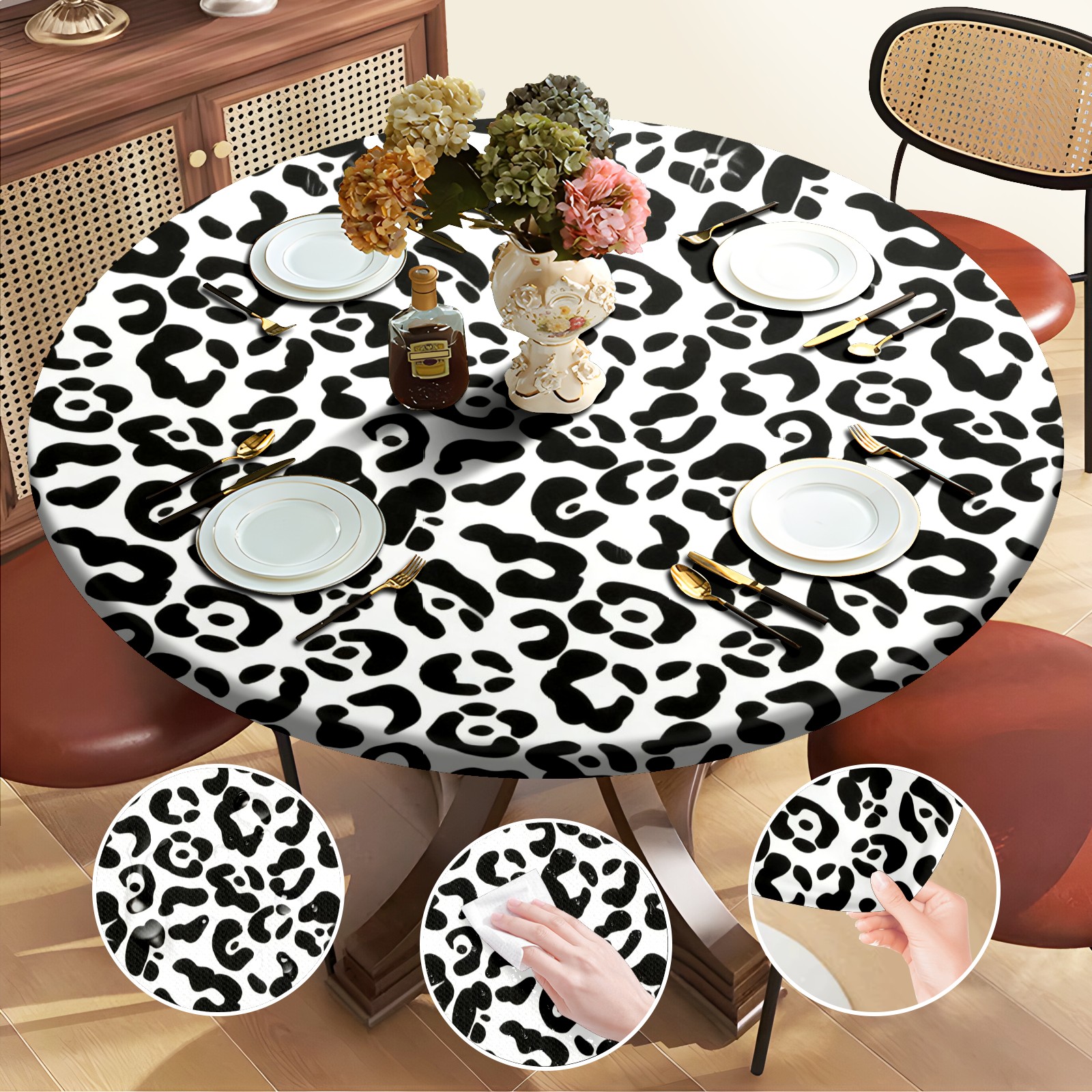 HELVOON Fitted Round Tablecloth - Stretch Vinyl Fabric, Single-Sided Printed, Wrinkle-Resistant & Dur able, Perfect for Dining/Party/Wedding Leopard Print