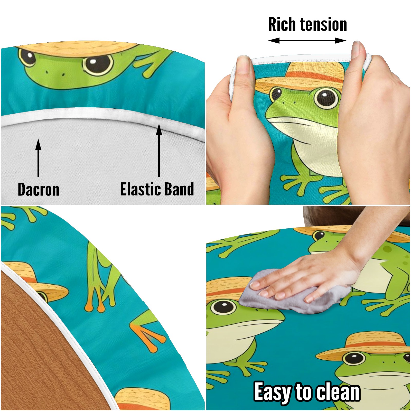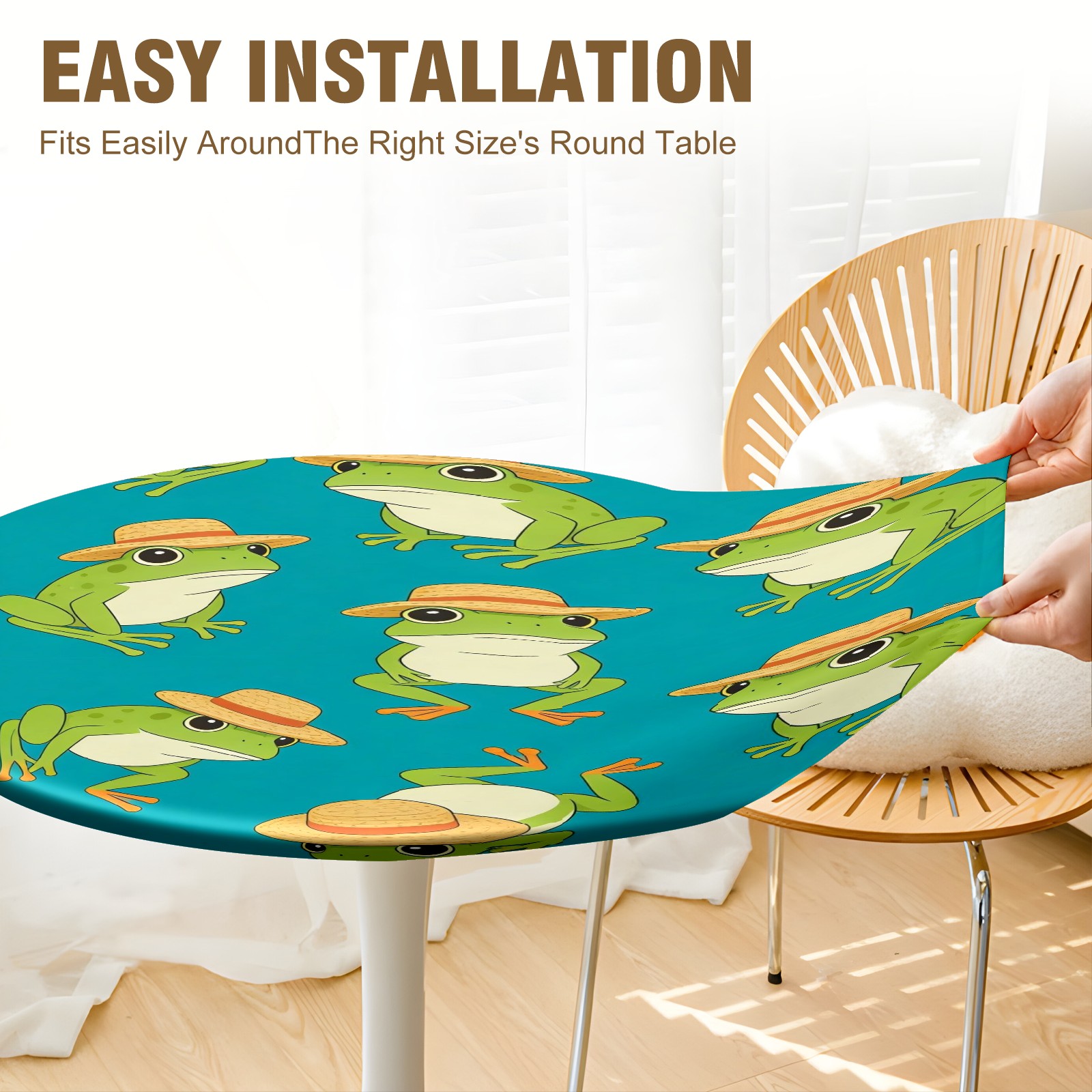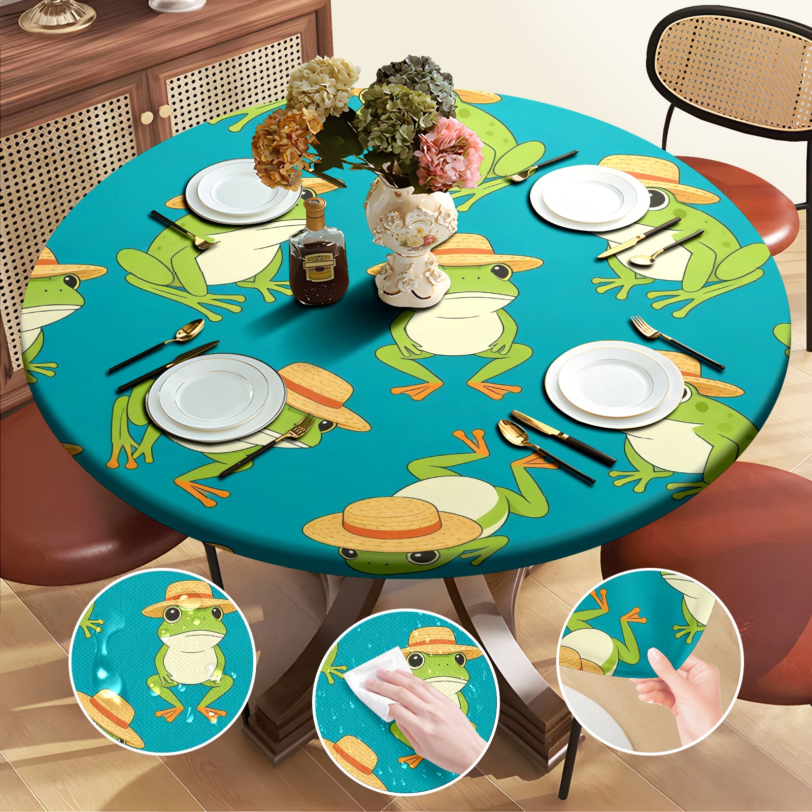 HELVOON Fitted Round Tablecloth - Stretch Vinyl Fabric, Single-Sided Printed, Wrinkle-Resistant & Dur able, Perfect for Dining/Party/Wedding Frogs