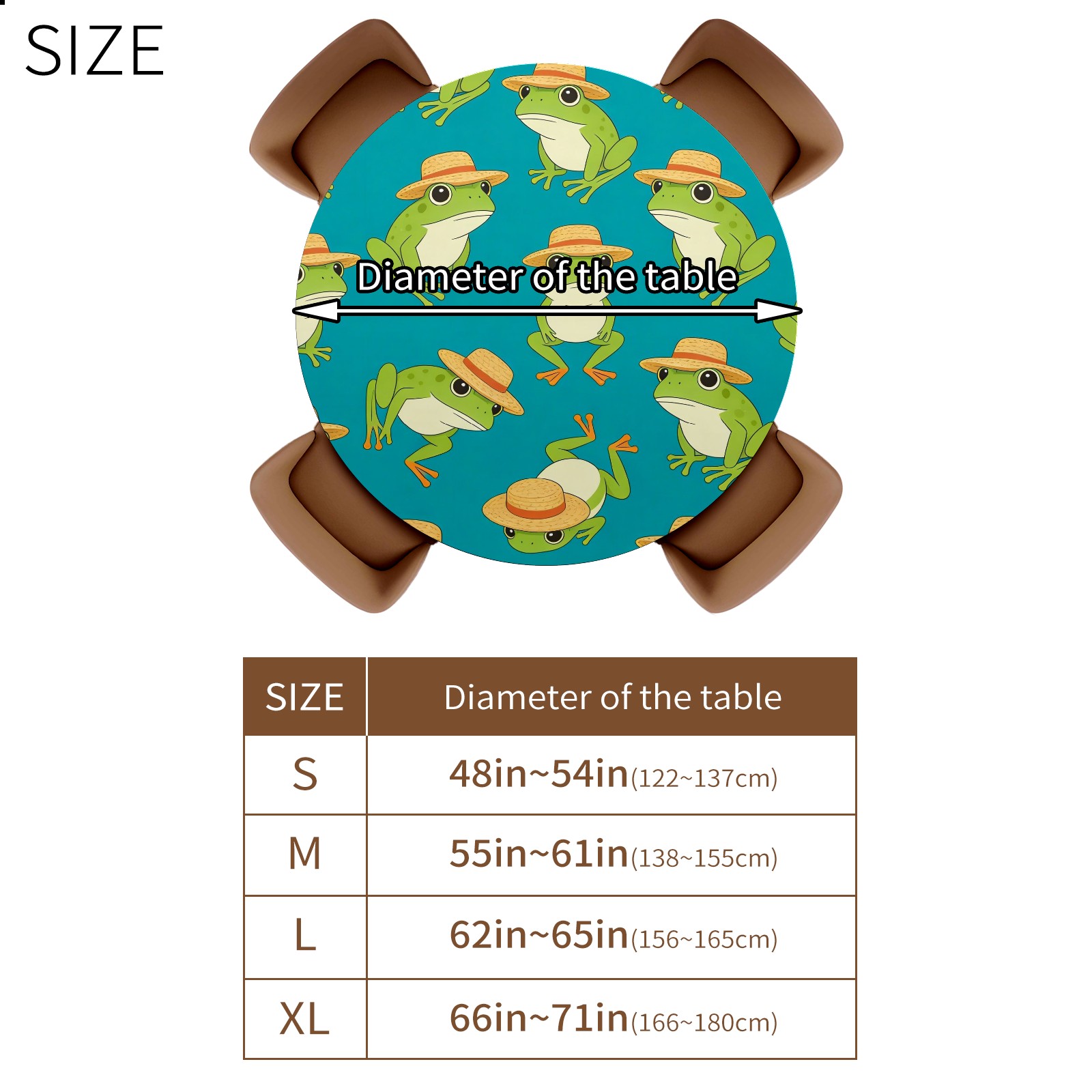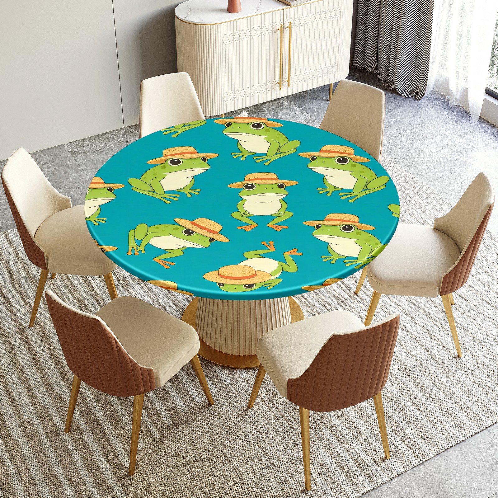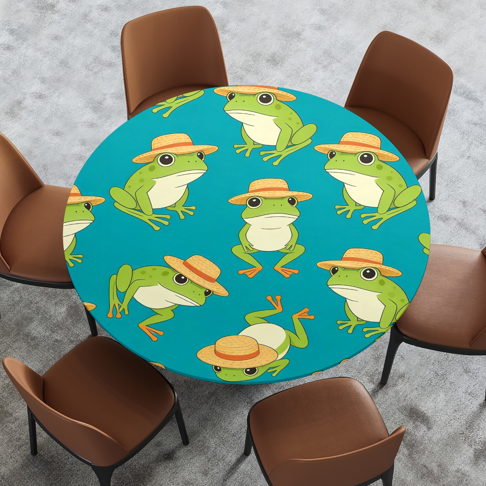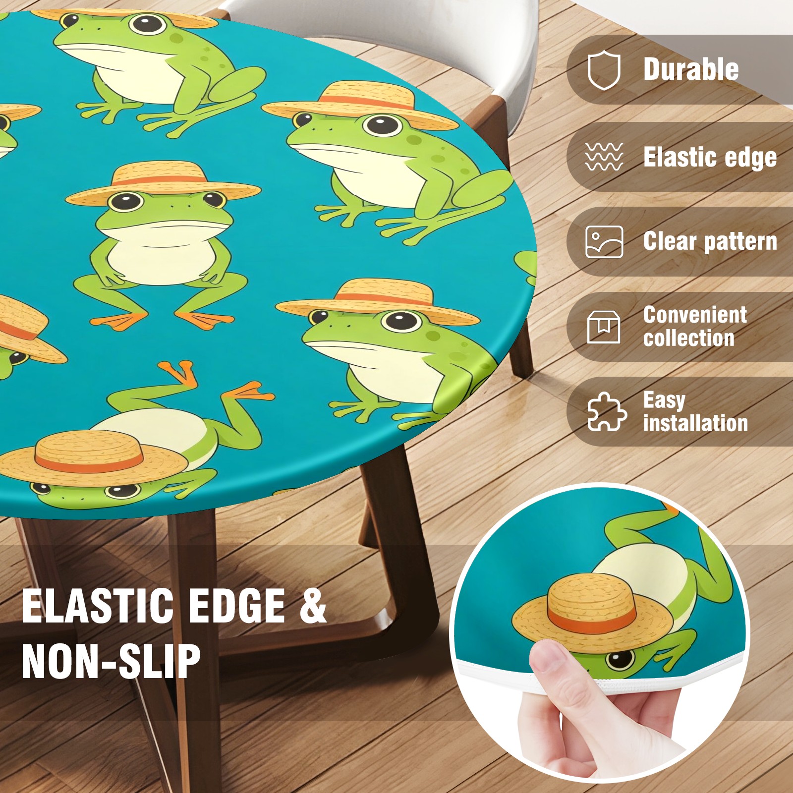 HELVOON Fitted Round Tablecloth - Stretch Vinyl Fabric, Single-Sided Printed, Wrinkle-Resistant & Dur able, Perfect for Dining/Party/Wedding Frogs