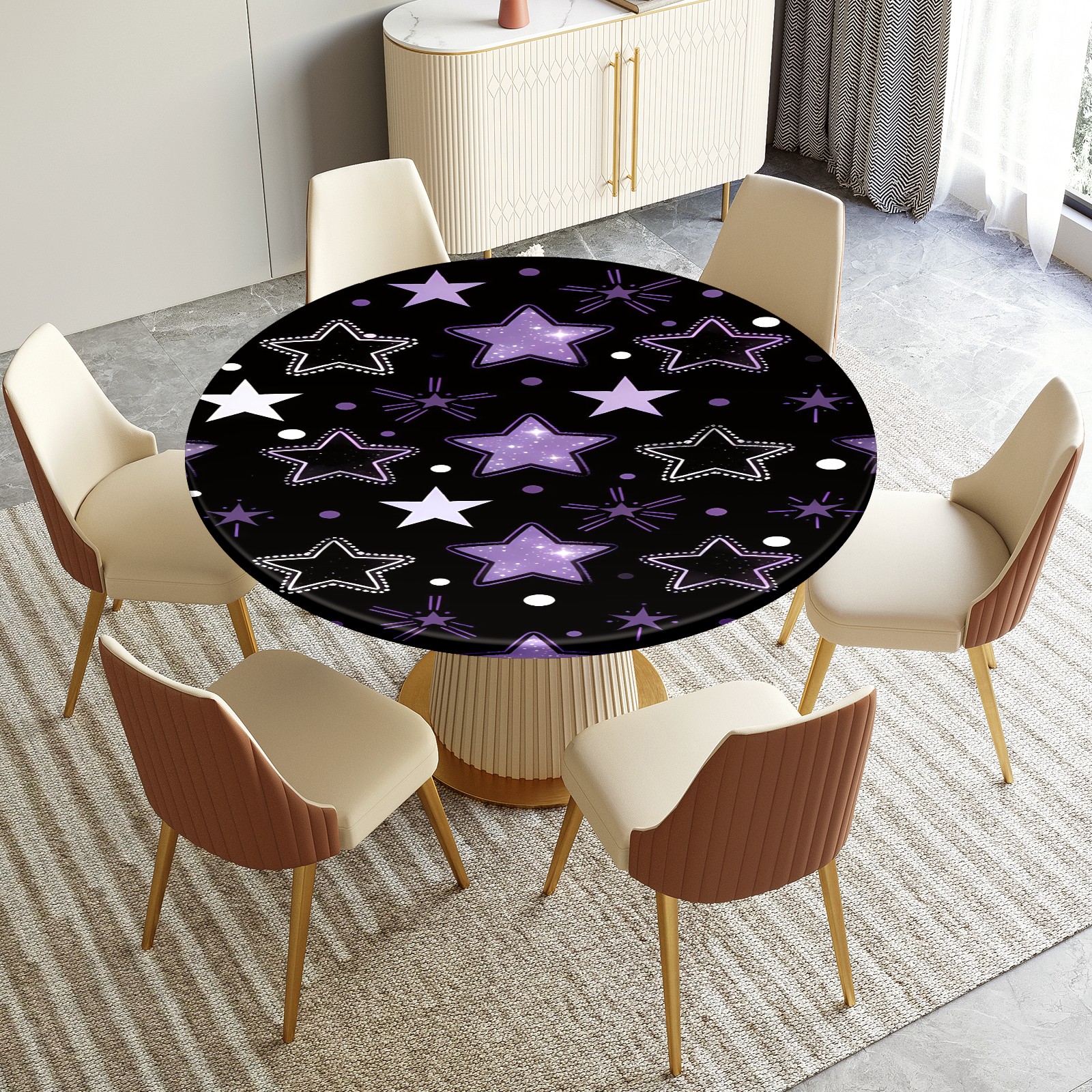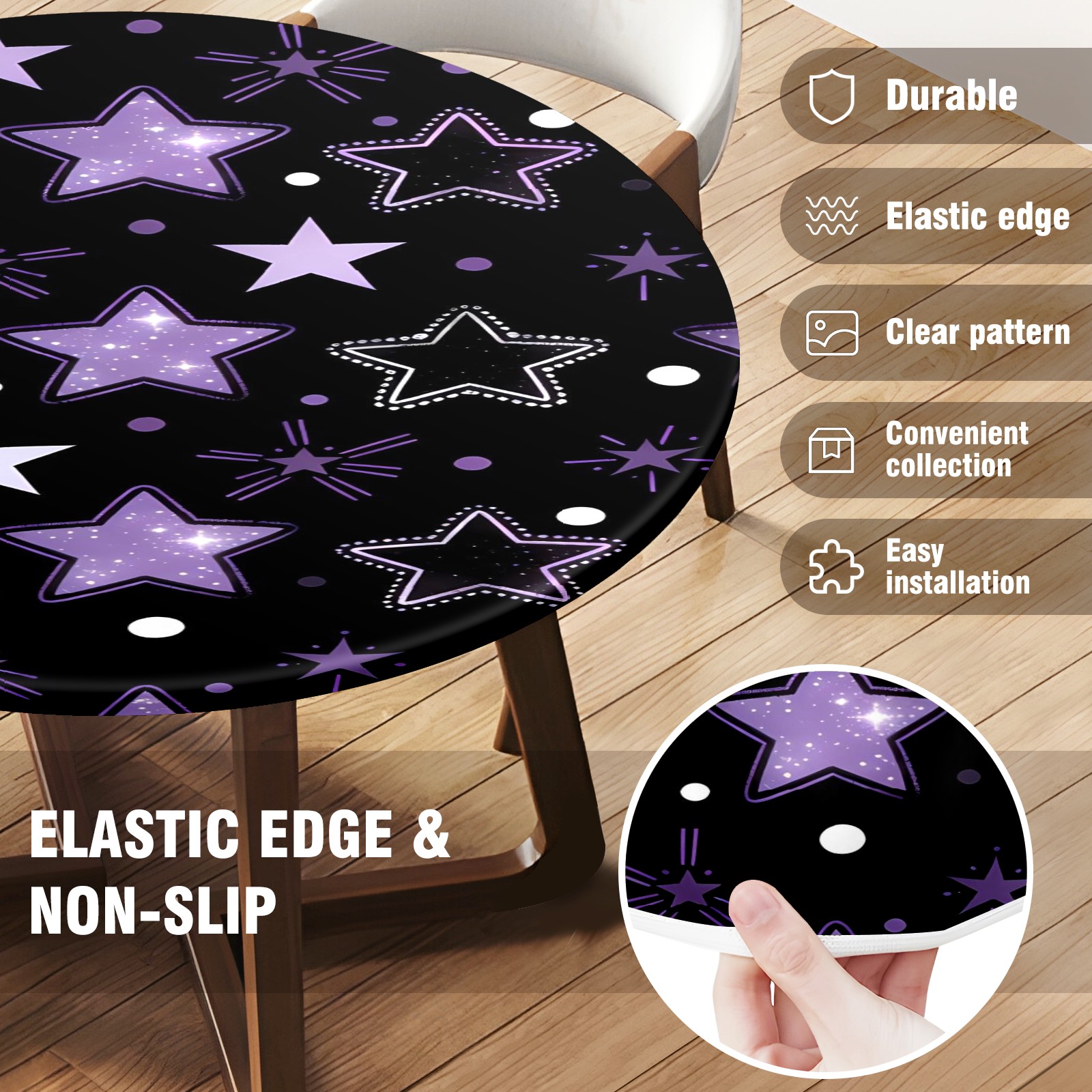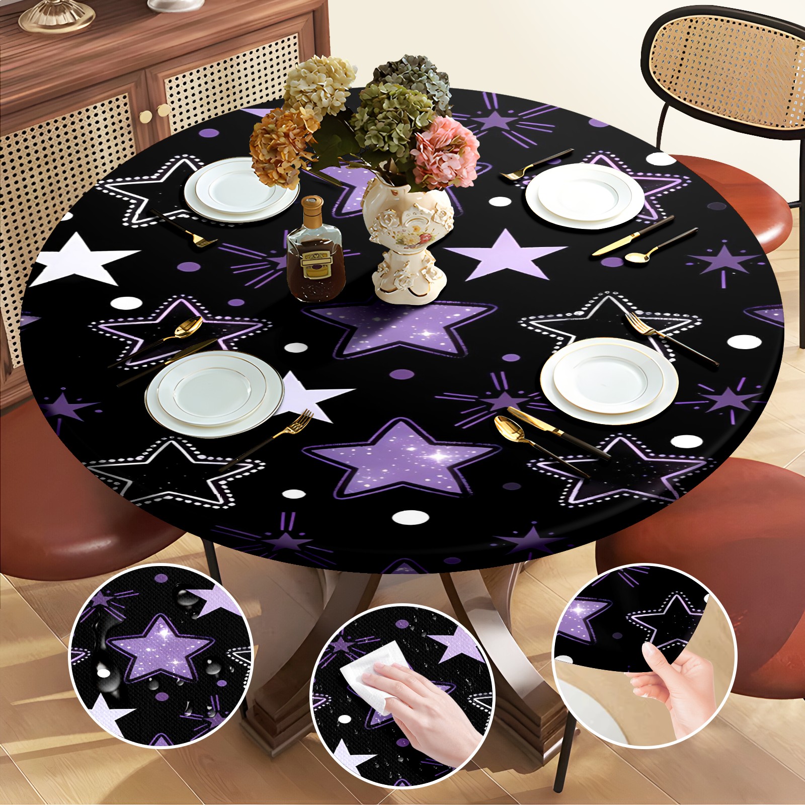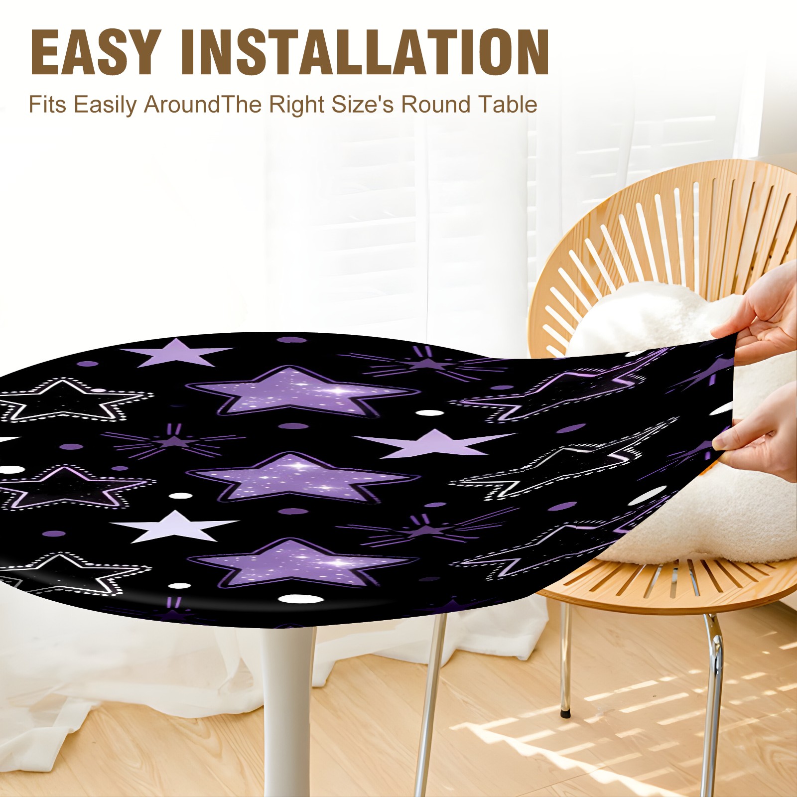 <p>Elevate your table setup with the HELVOON Fitted Round Tablecloth. Crafted from stretch vinyl fabric, it hugs round tables snugly (no slipping) and boasts a durable, wrinkle-resistant build—thick enough to resist tears, yet easy to wipe clean. Its vibrant single-sided print adds a decorative flair, perfect for daily meals, family parties, weddings, or catering events. Support DIY pattern customization to match your unique style. Ideal for kitchens, dining rooms, or outdoor patios—practical, stylish, and low-maintenance.</p>