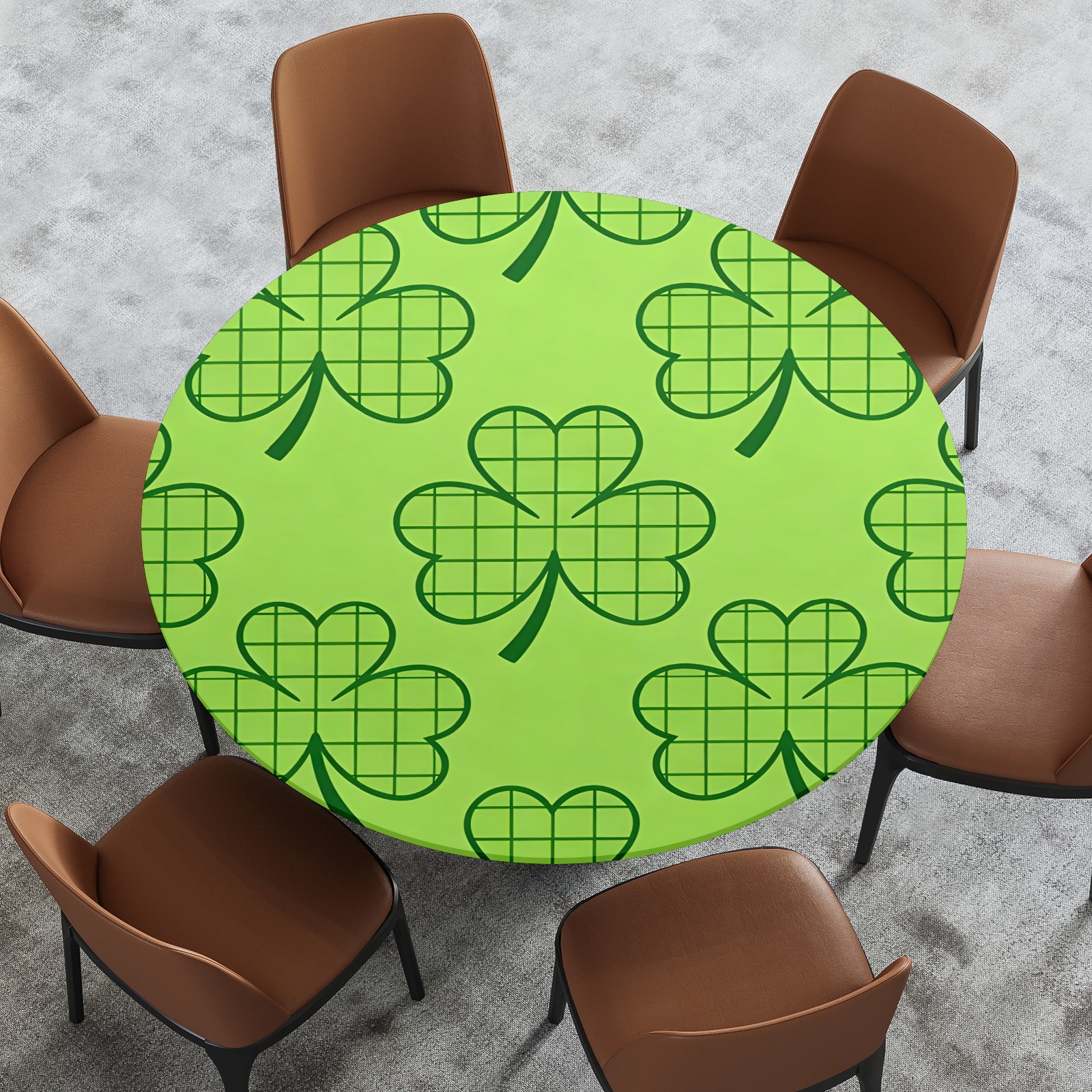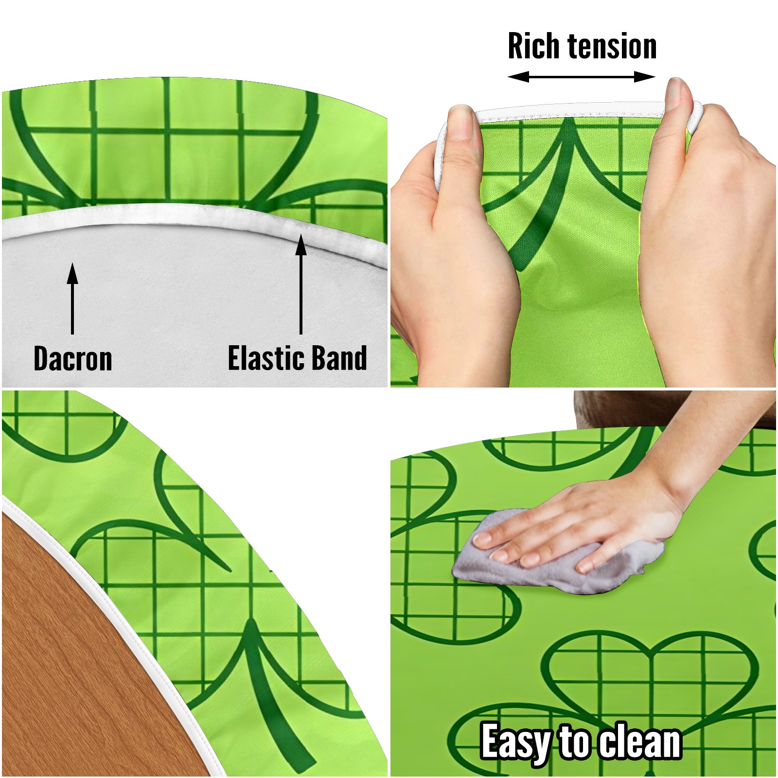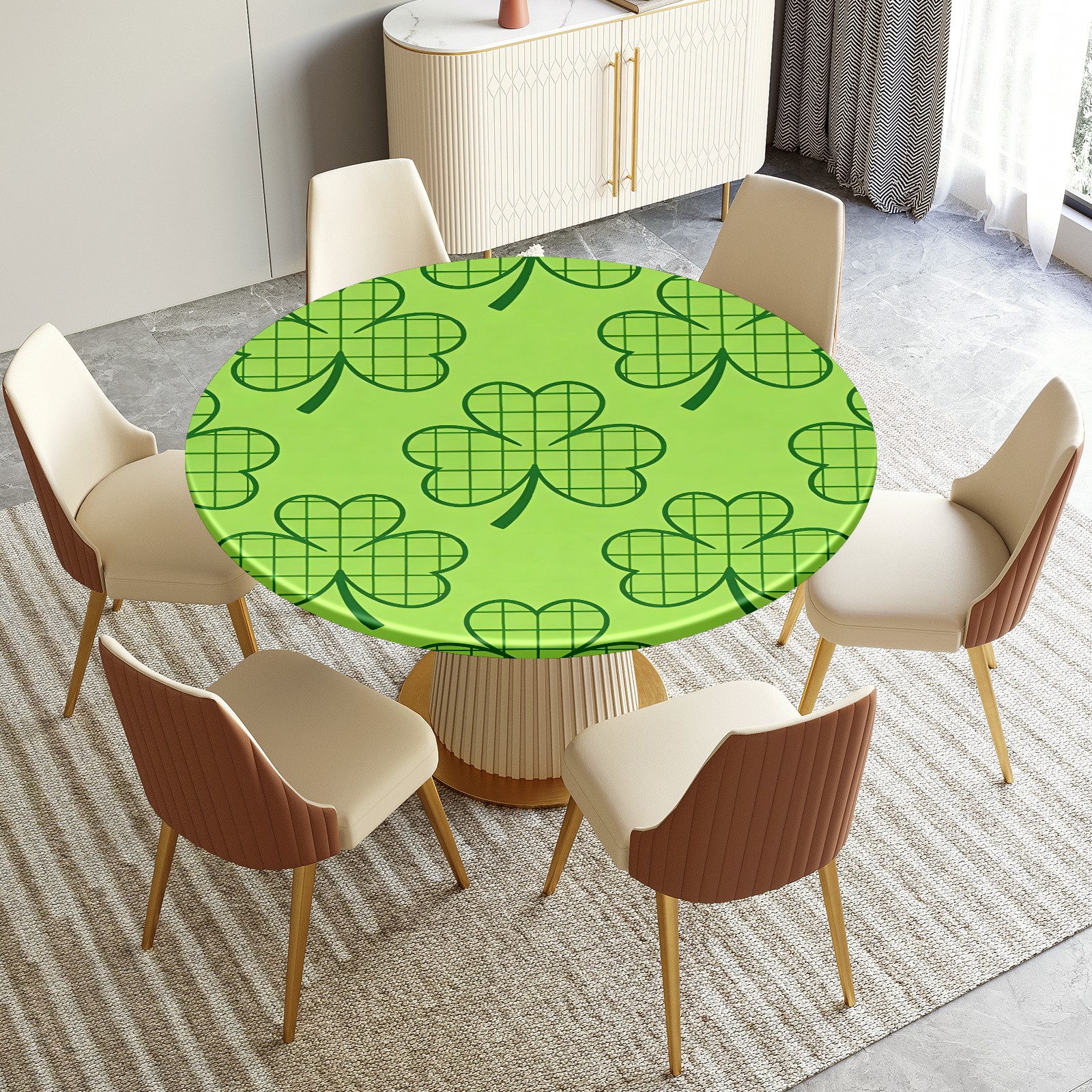 HELVOON Fitted Round Tablecloth - Stretch Vinyl Fabric, Single-Sided Printed, Wrinkle-Resistant & Dur able, Perfect for Dining/Party/Wedding Trifolium 5