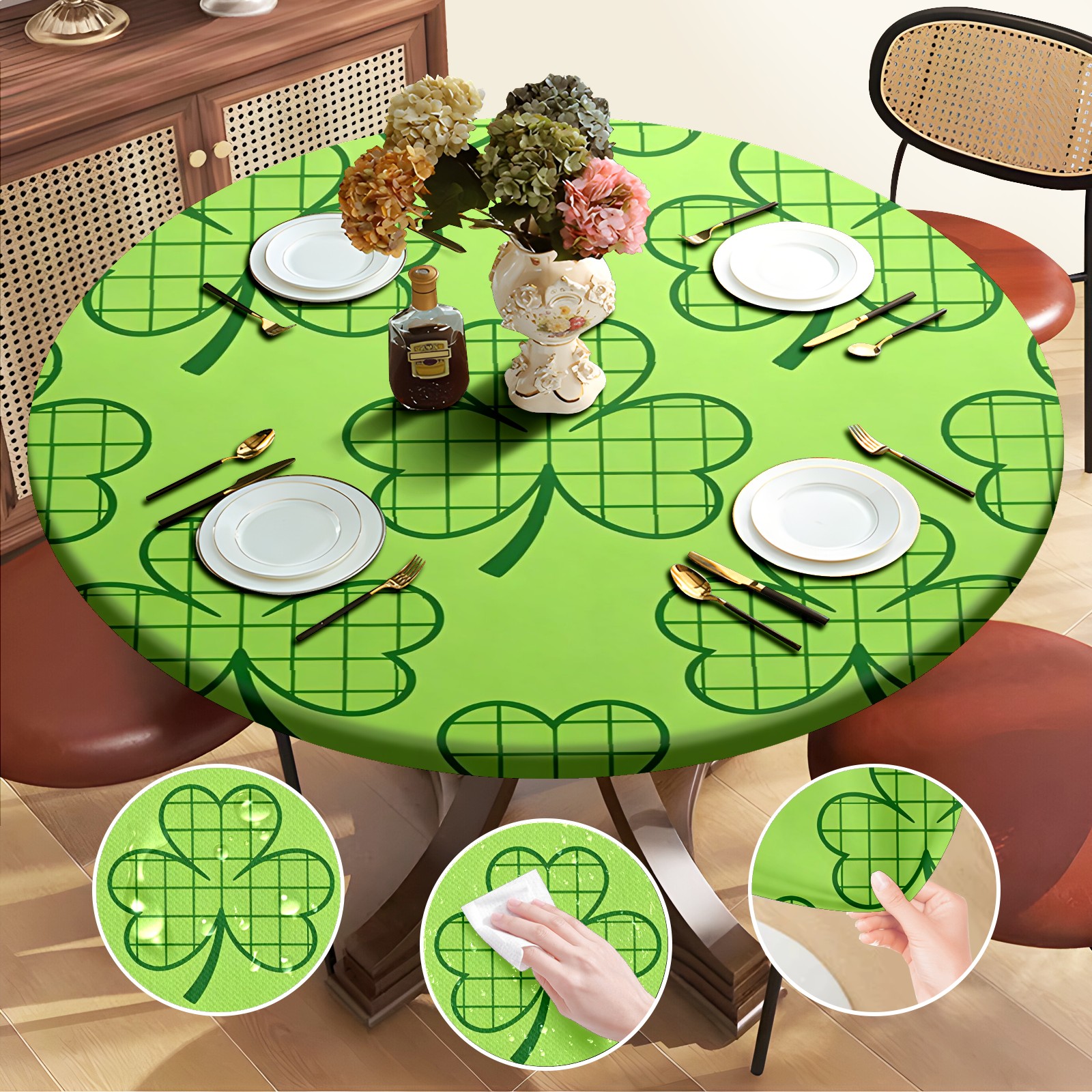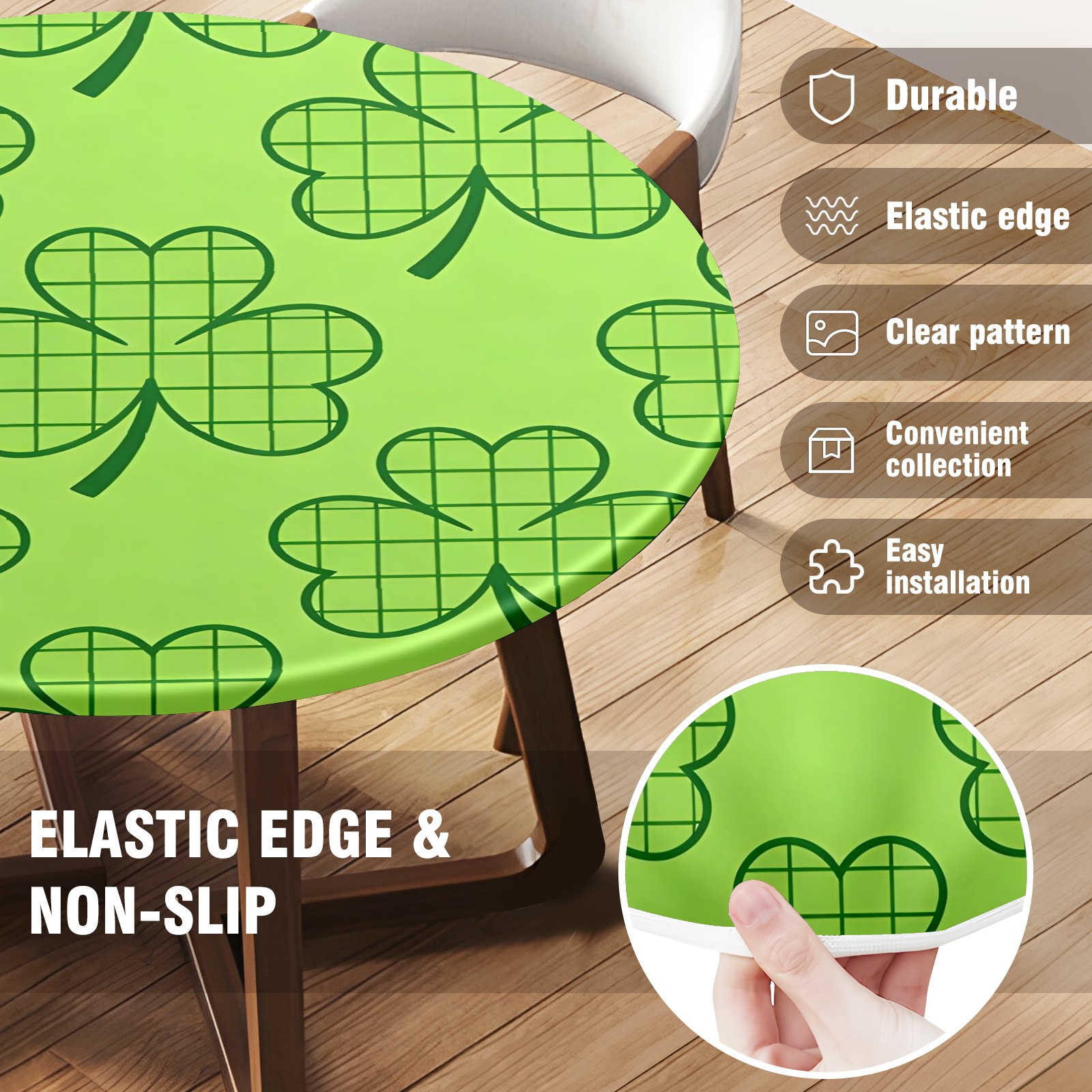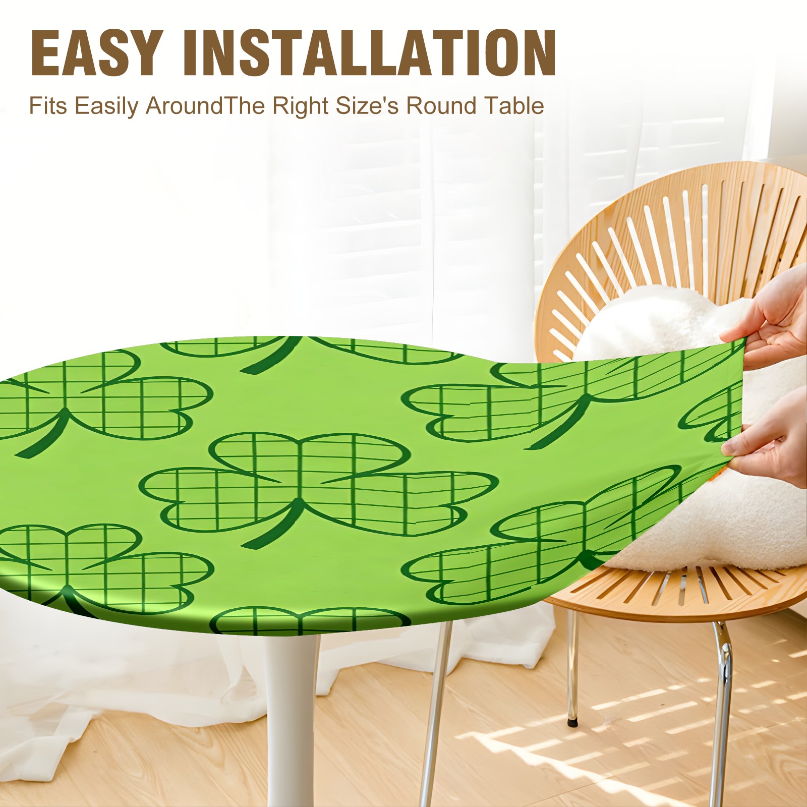 HELVOON Fitted Round Tablecloth - Stretch Vinyl Fabric, Single-Sided Printed, Wrinkle-Resistant & Dur able, Perfect for Dining/Party/Wedding Trifolium 5