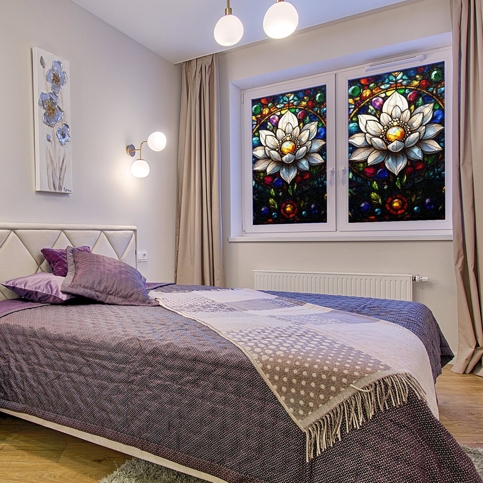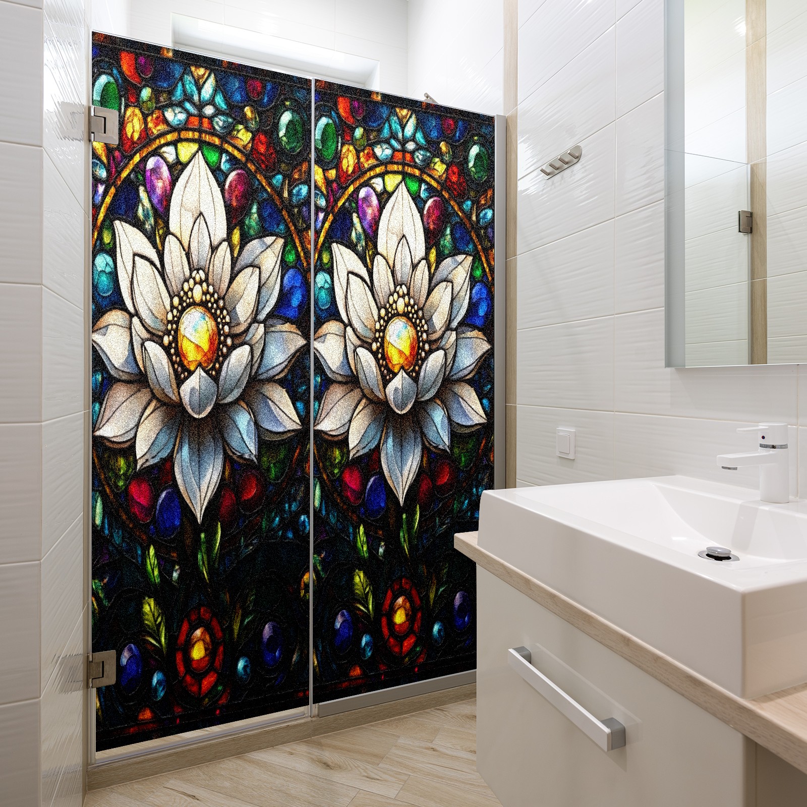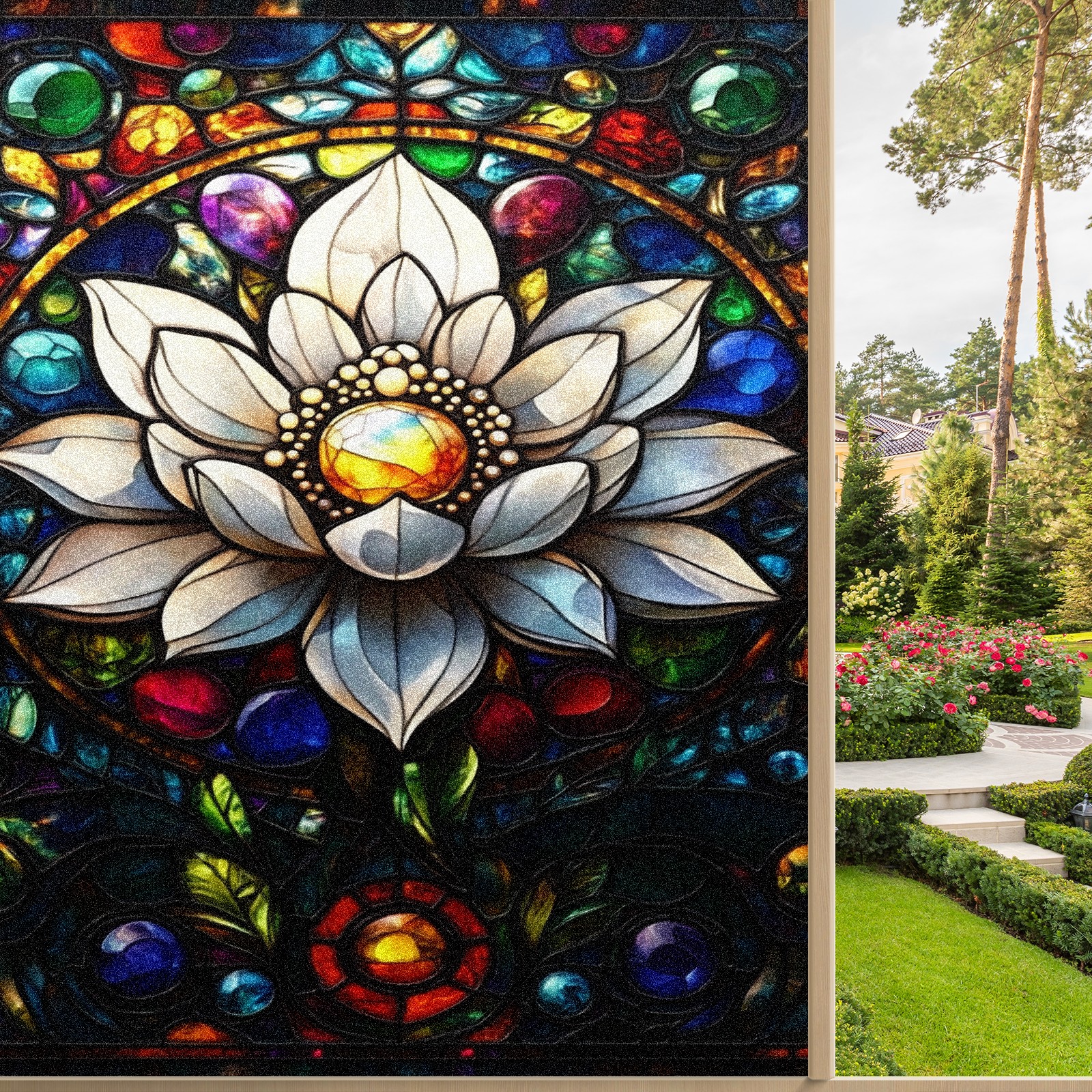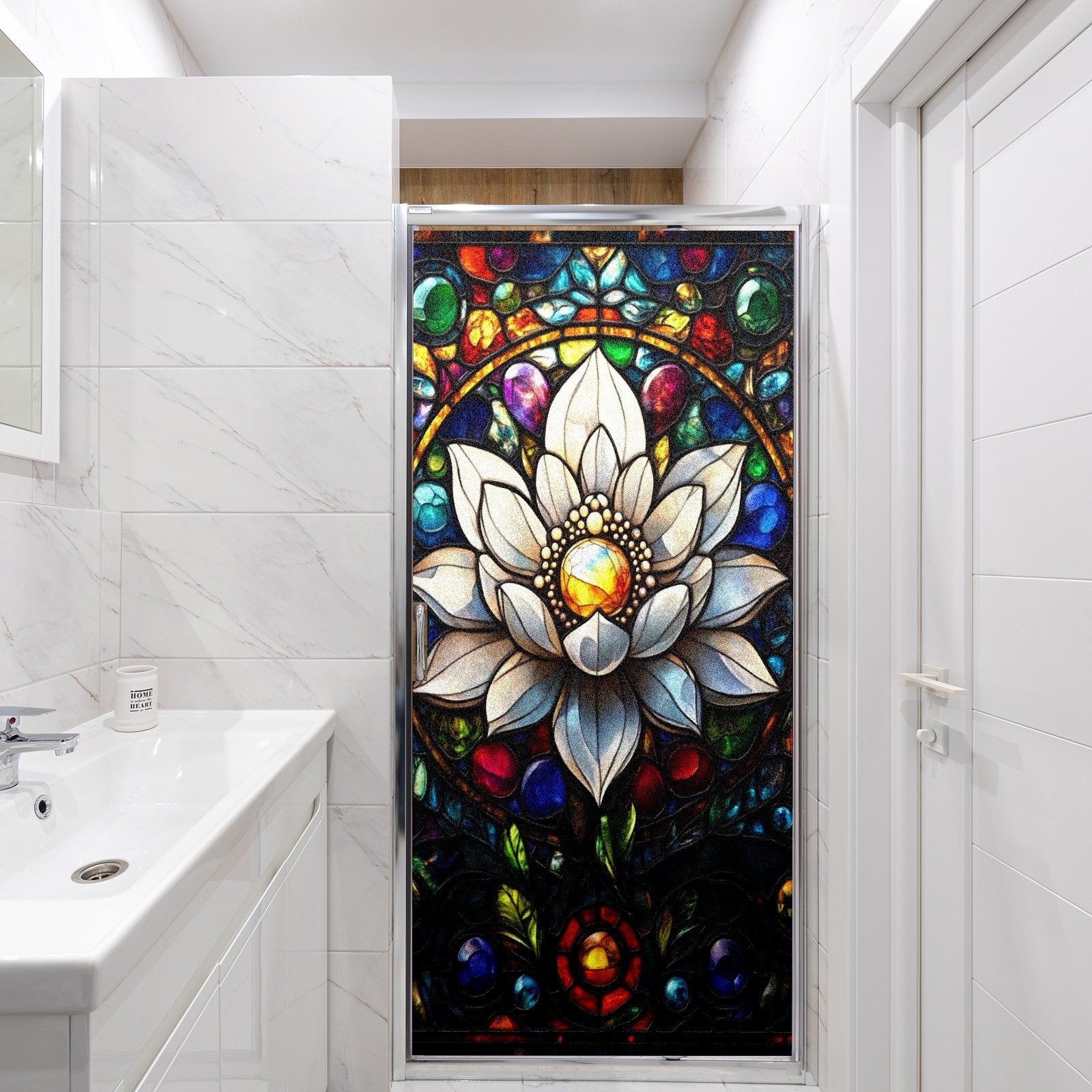 Stained Glass Window Film - Decorative Privacy Film for Windows, Peel and Stick Window Film for Bathroom/Office/Shower, Reusable and Easy to Cut 17.7"x23.6" (White Flower)