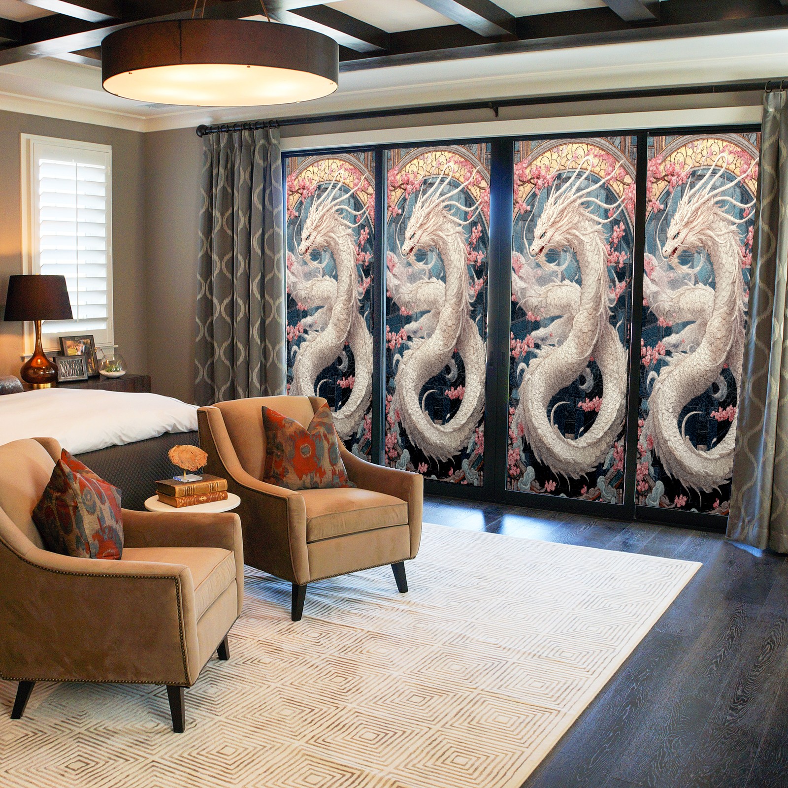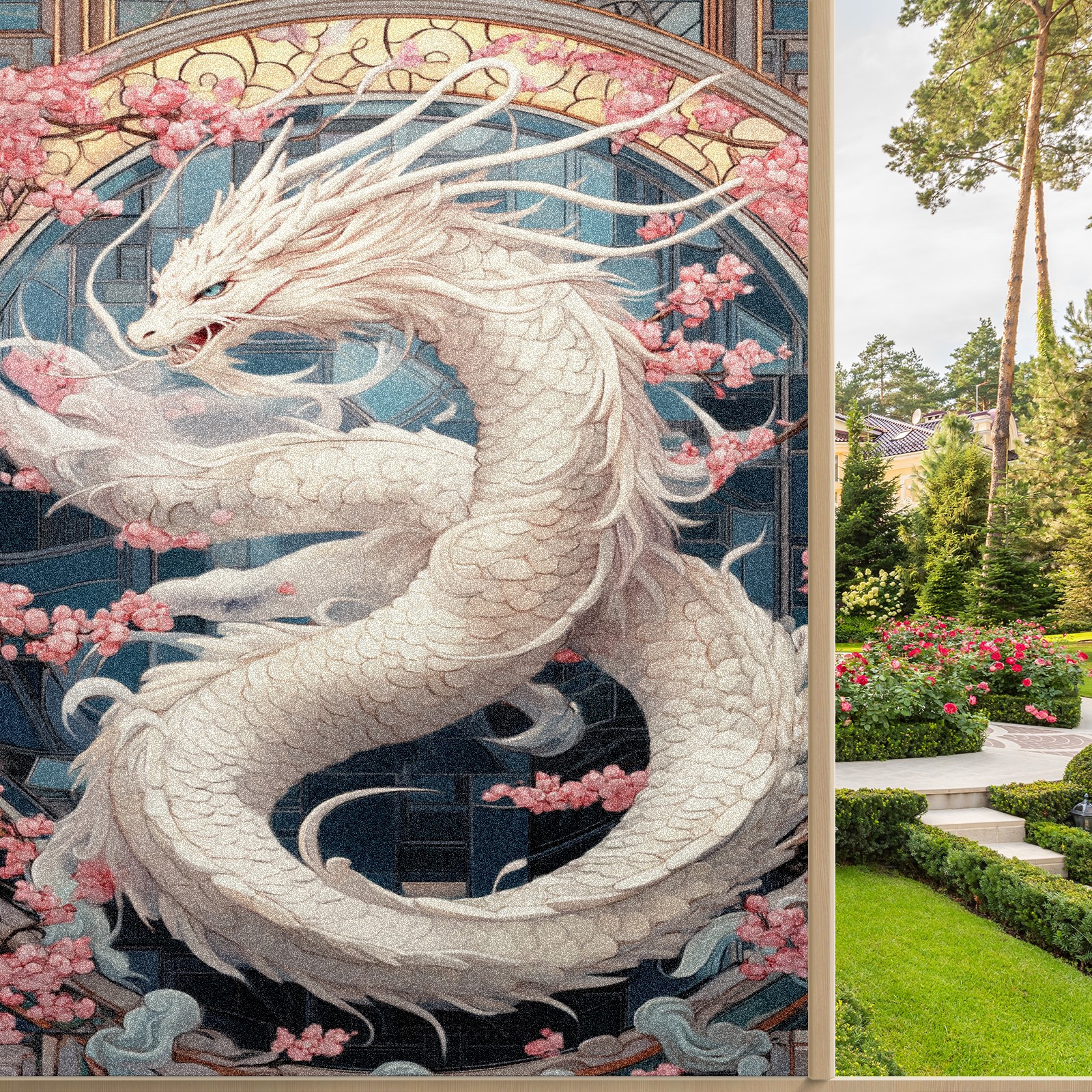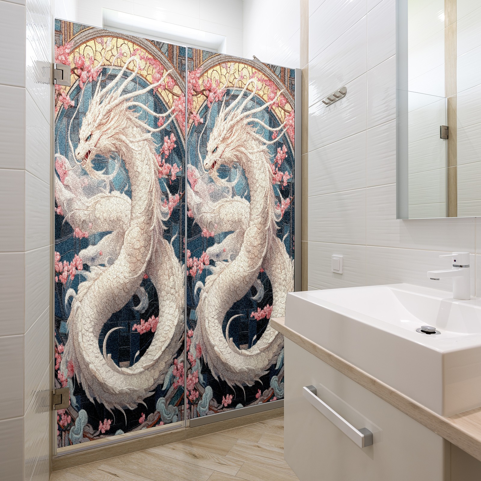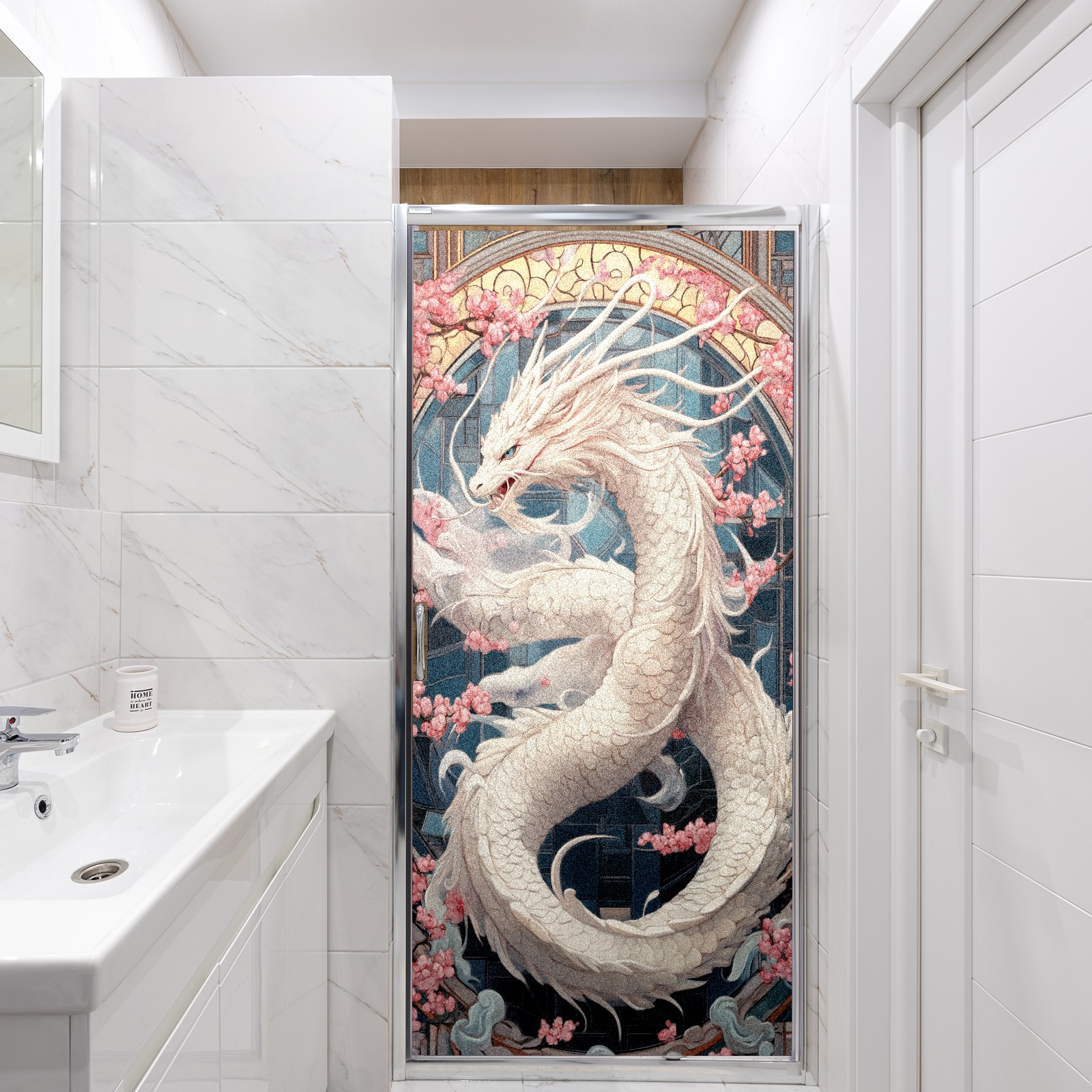 Stained Glass Window Film - Decorative Privacy Film for Windows, Peel and Stick Window Film for Bathroom/Office/Shower, Reusable and Easy to Cut 17.7"x23.6" (White Dragon)
