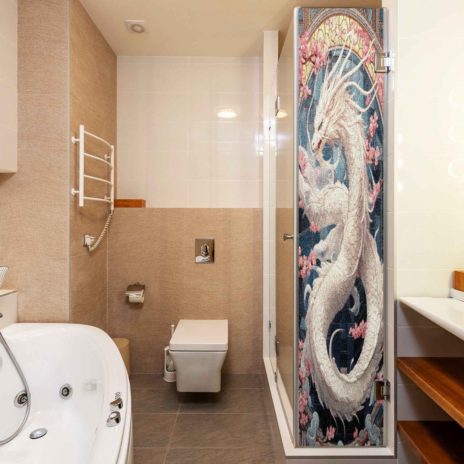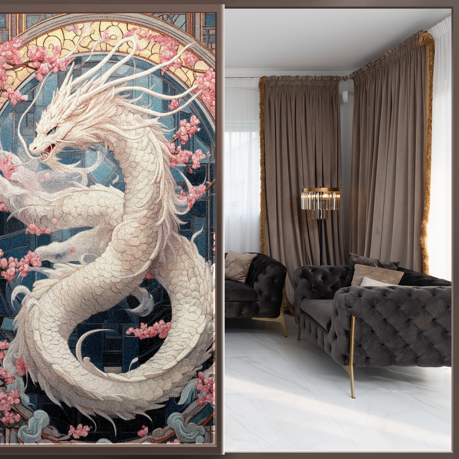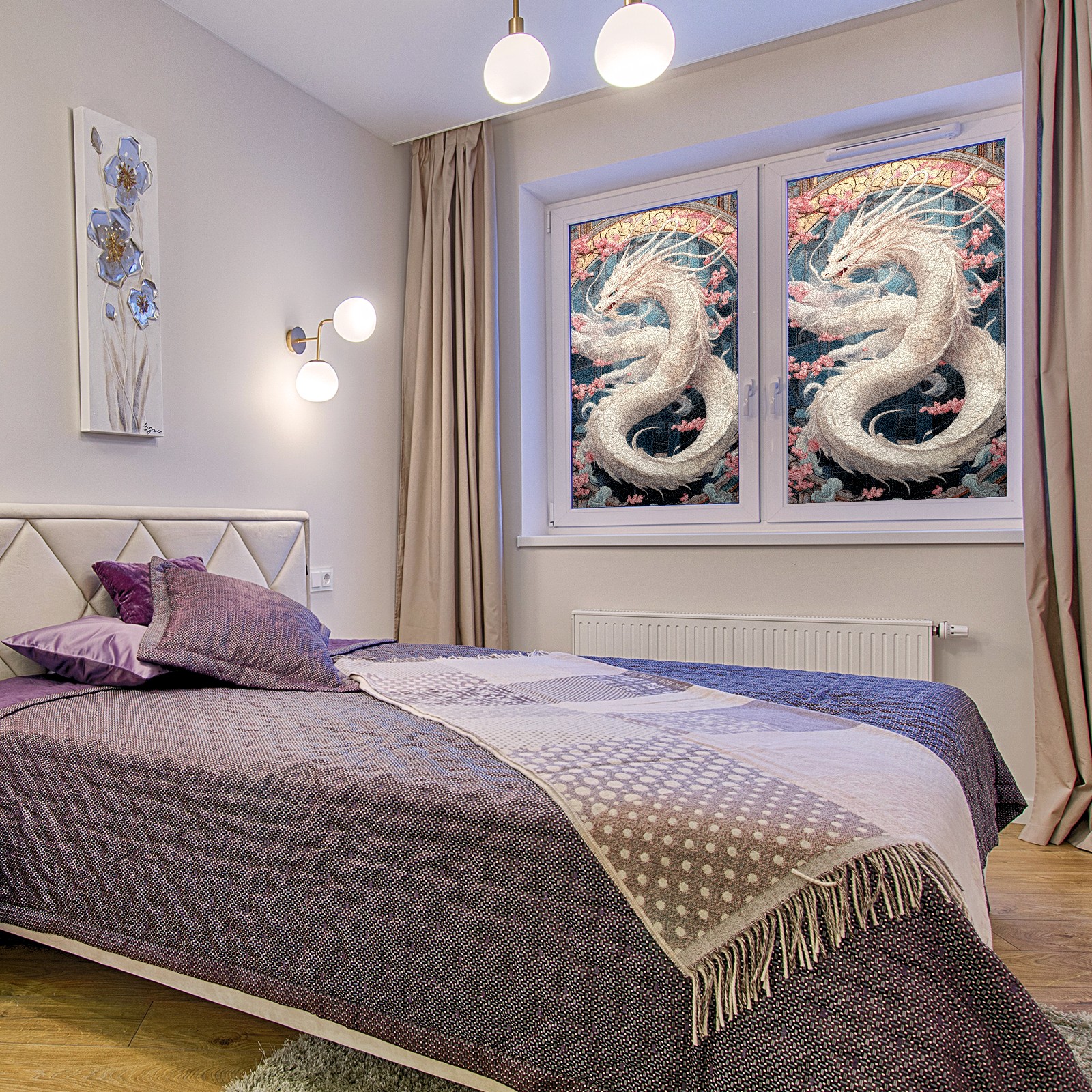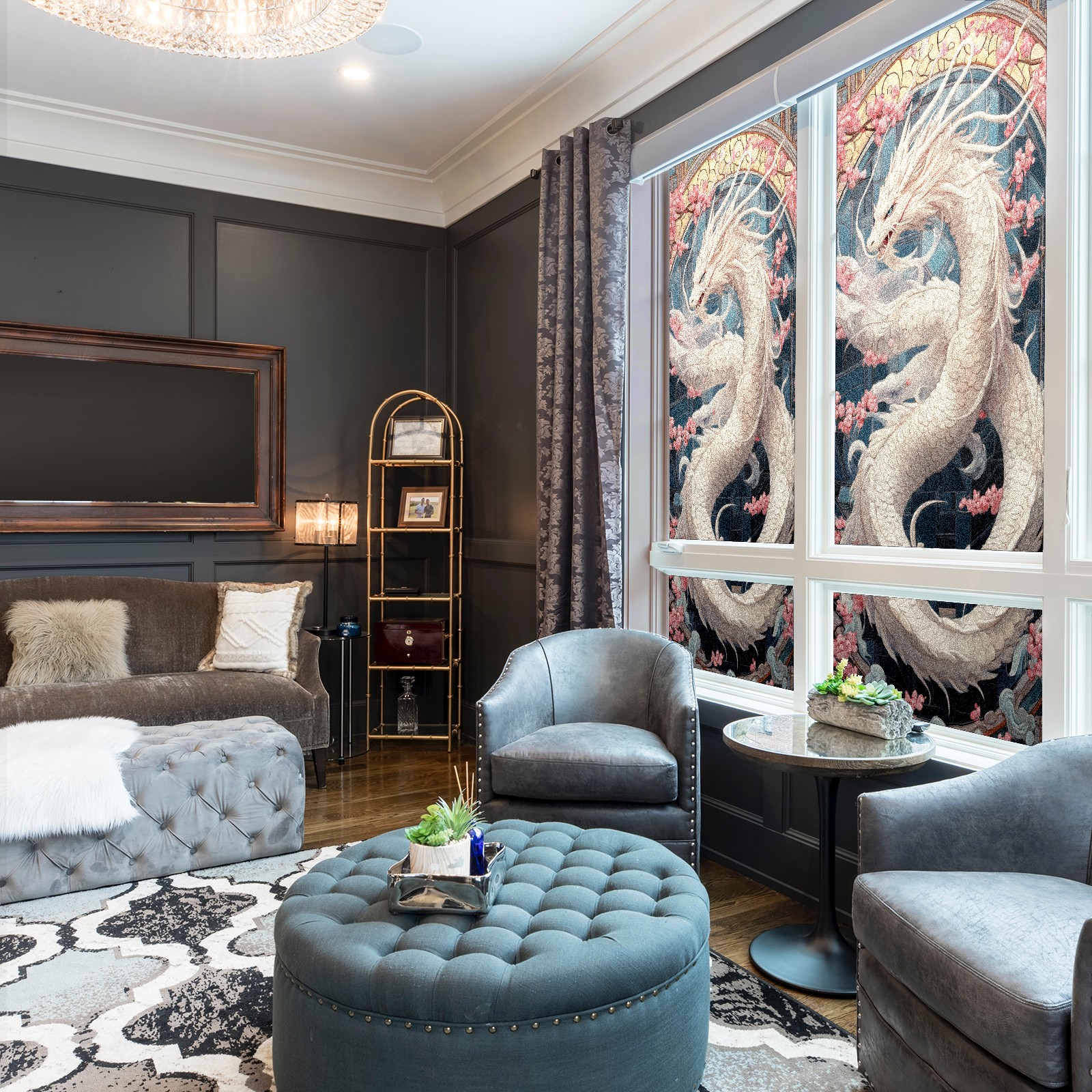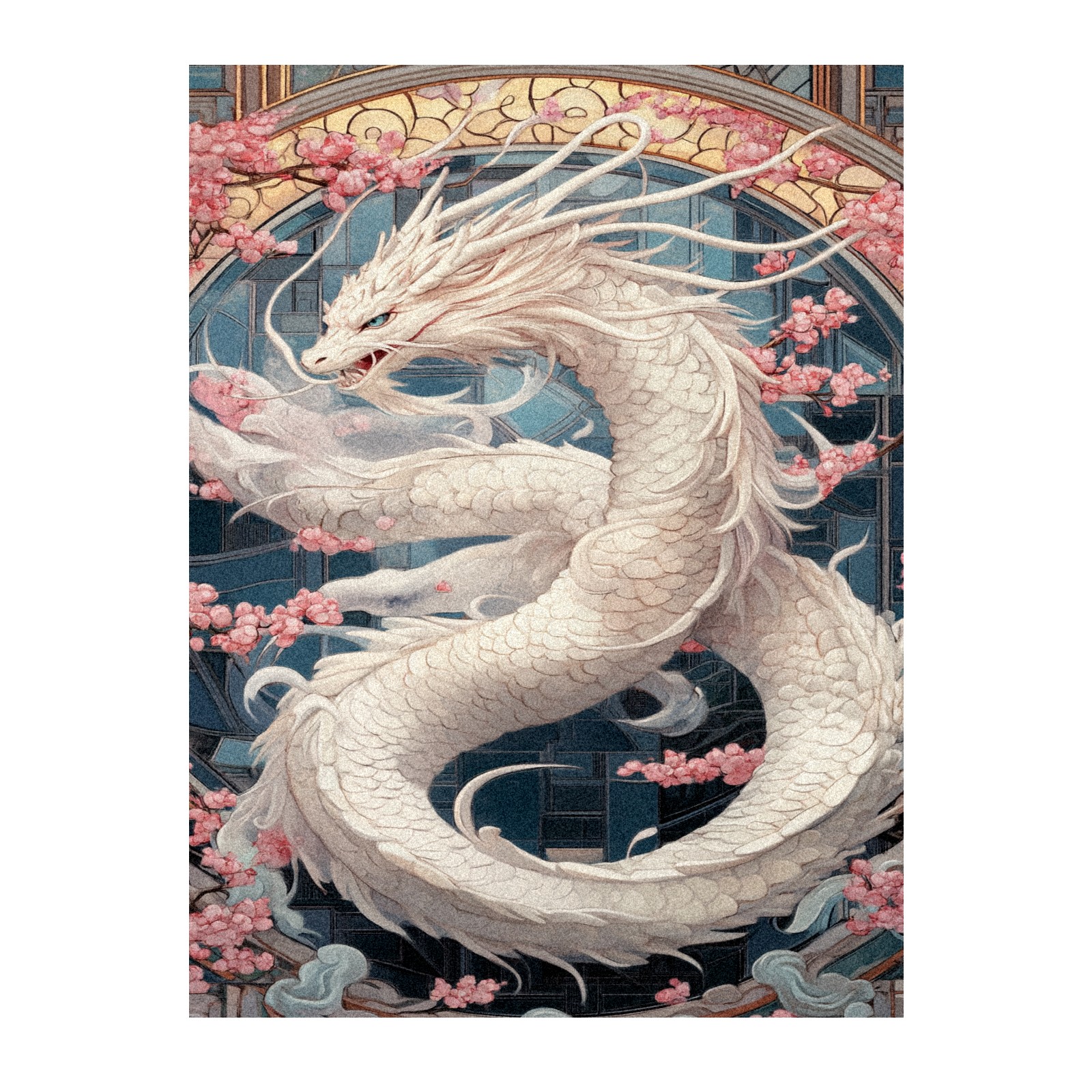 Stained Glass Window Film - Decorative Privacy Film for Windows, Peel and Stick Window Film for Bathroom/Office/Shower, Reusable and Easy to Cut 17.7"x23.6" (White Dragon)