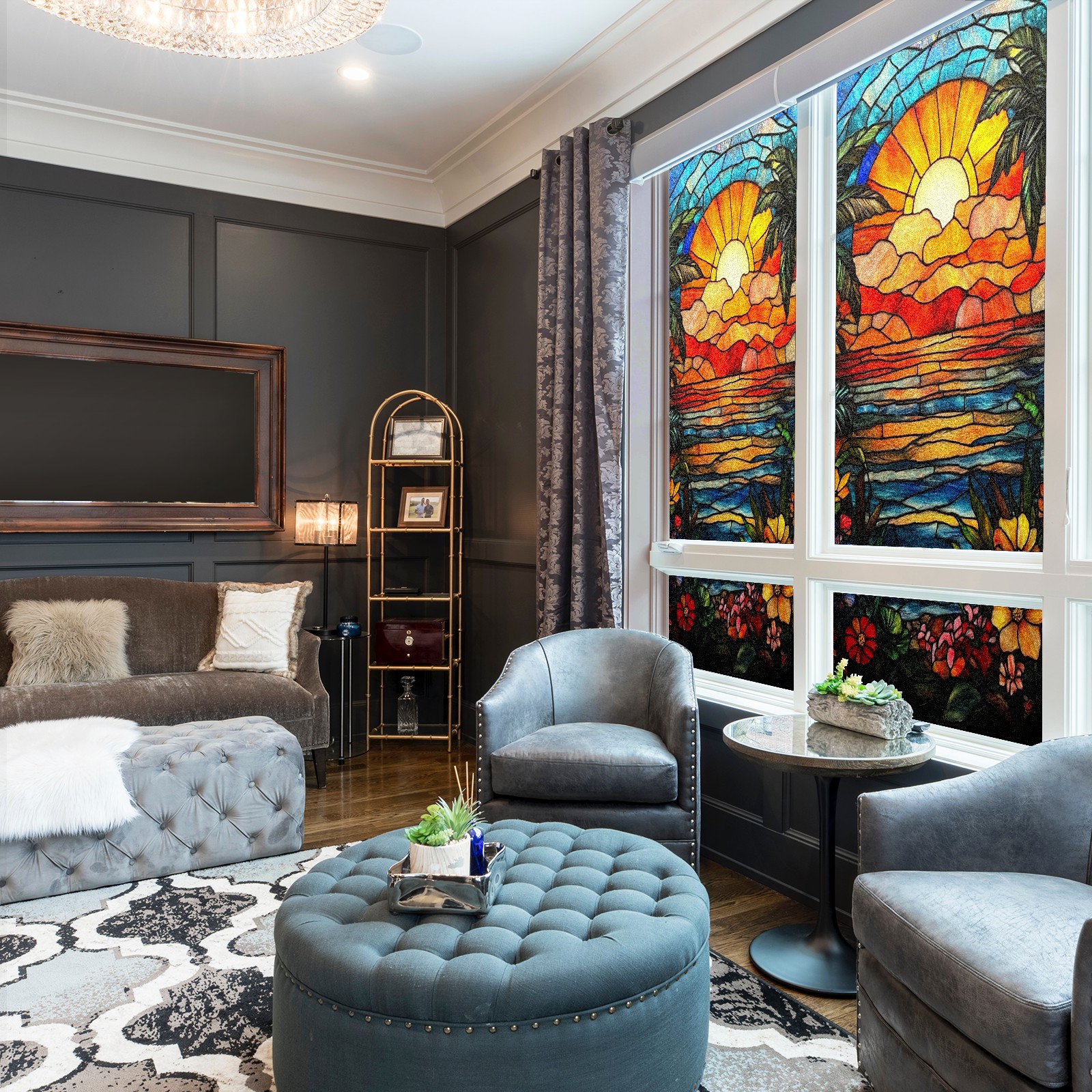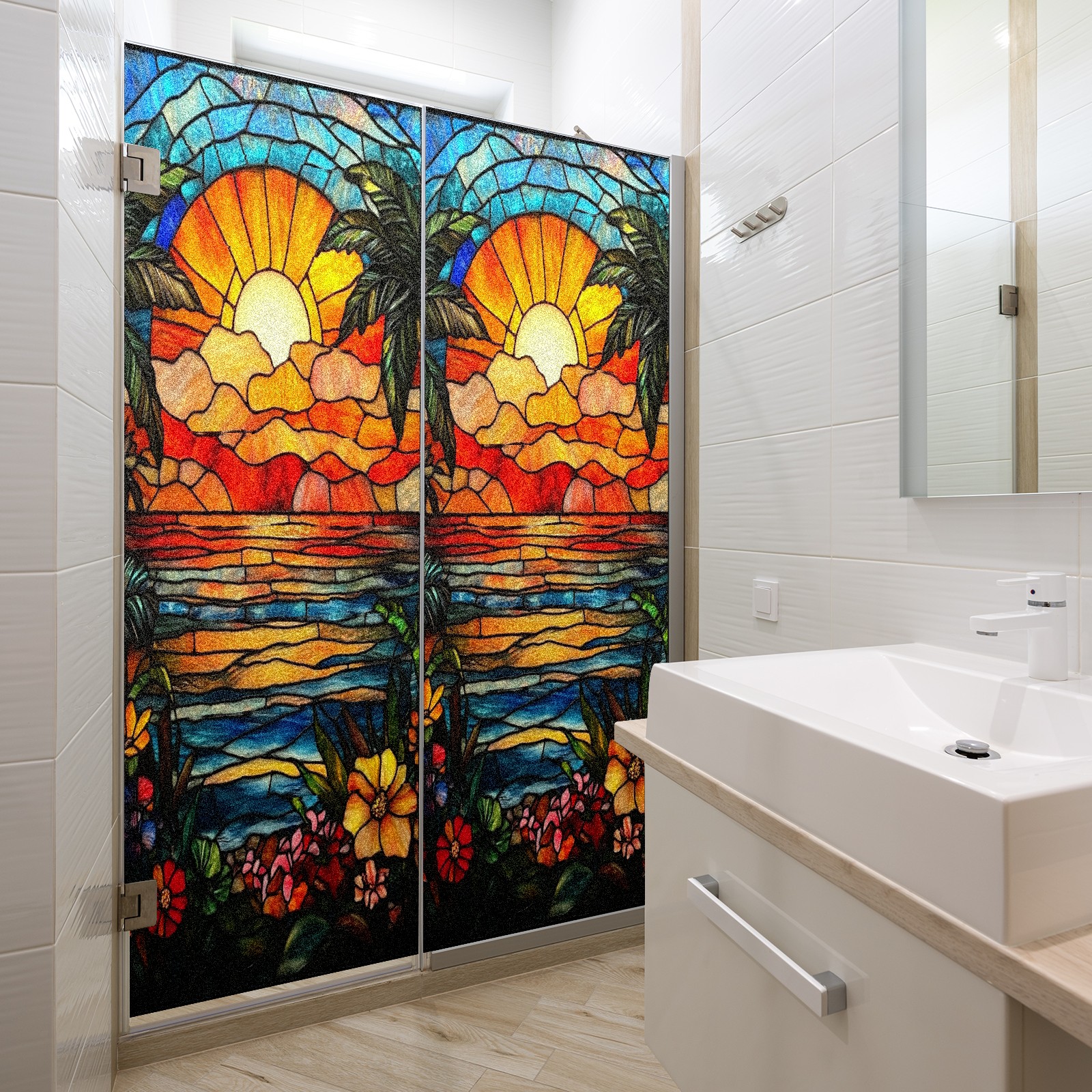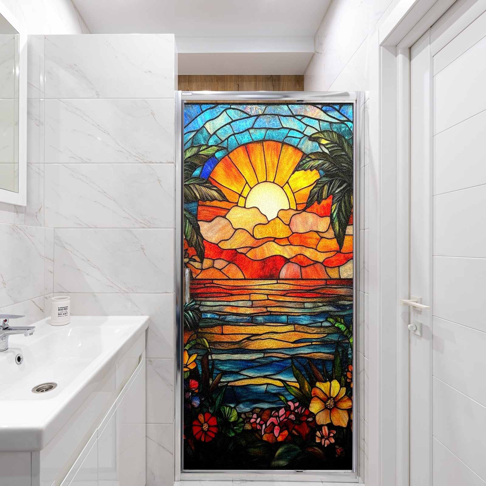 Stained Glass Window Film - Decorative Privacy Film for Windows, Peel and Stick Window Film for Bathroom/Office/Shower, Reusable and Easy to Cut 17.7"x23.6" (Sunset)