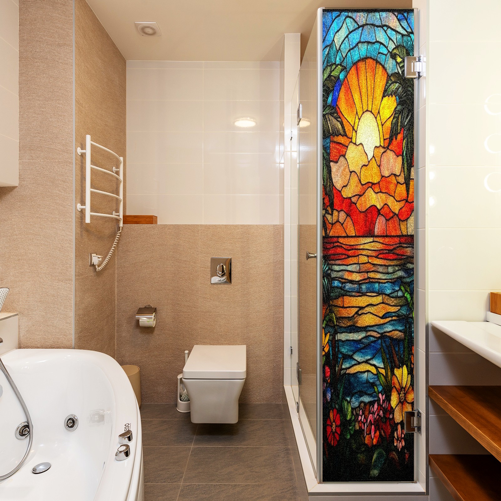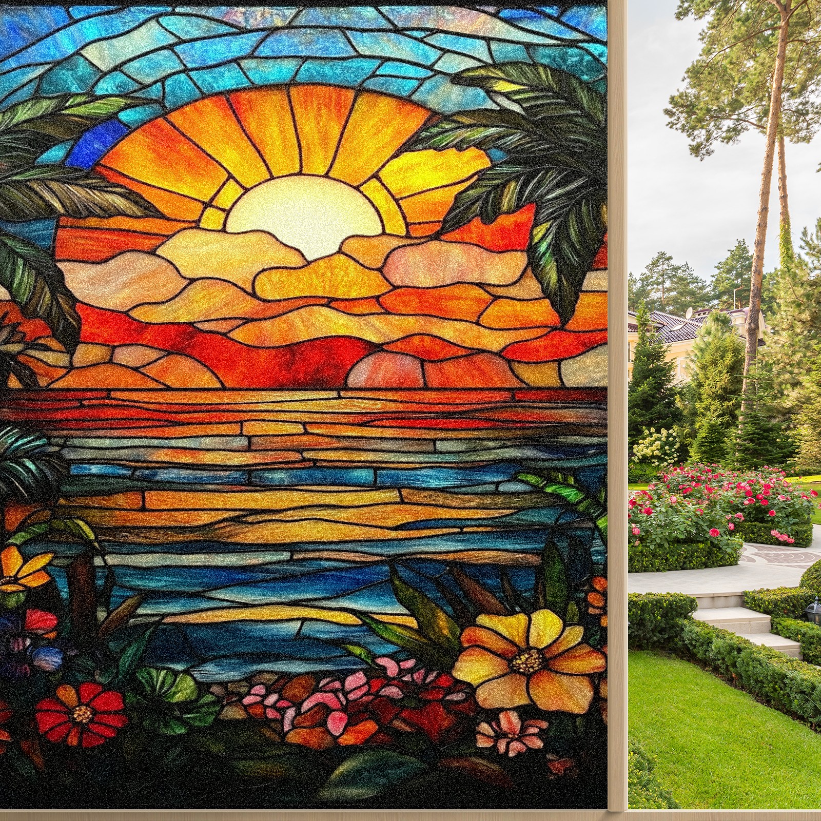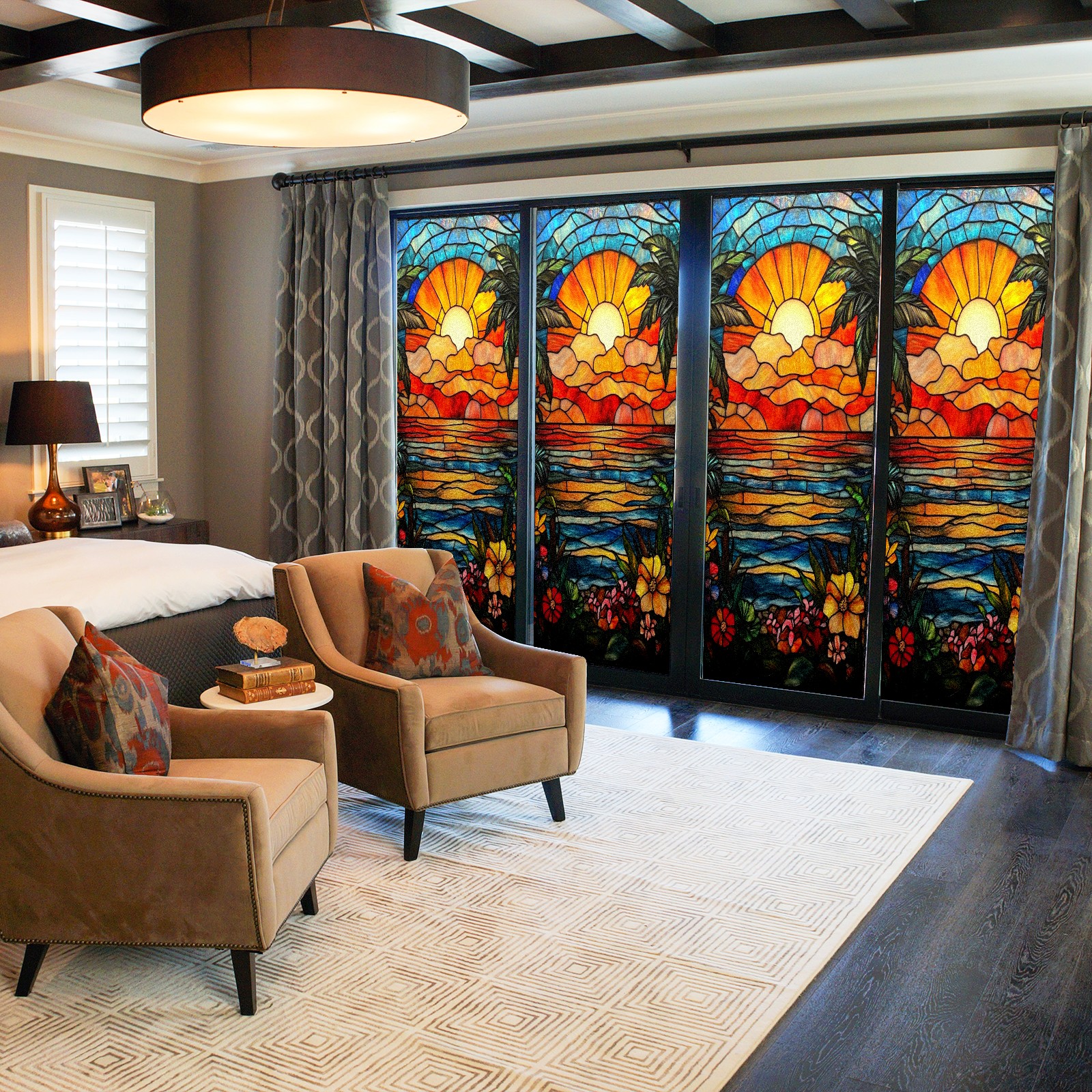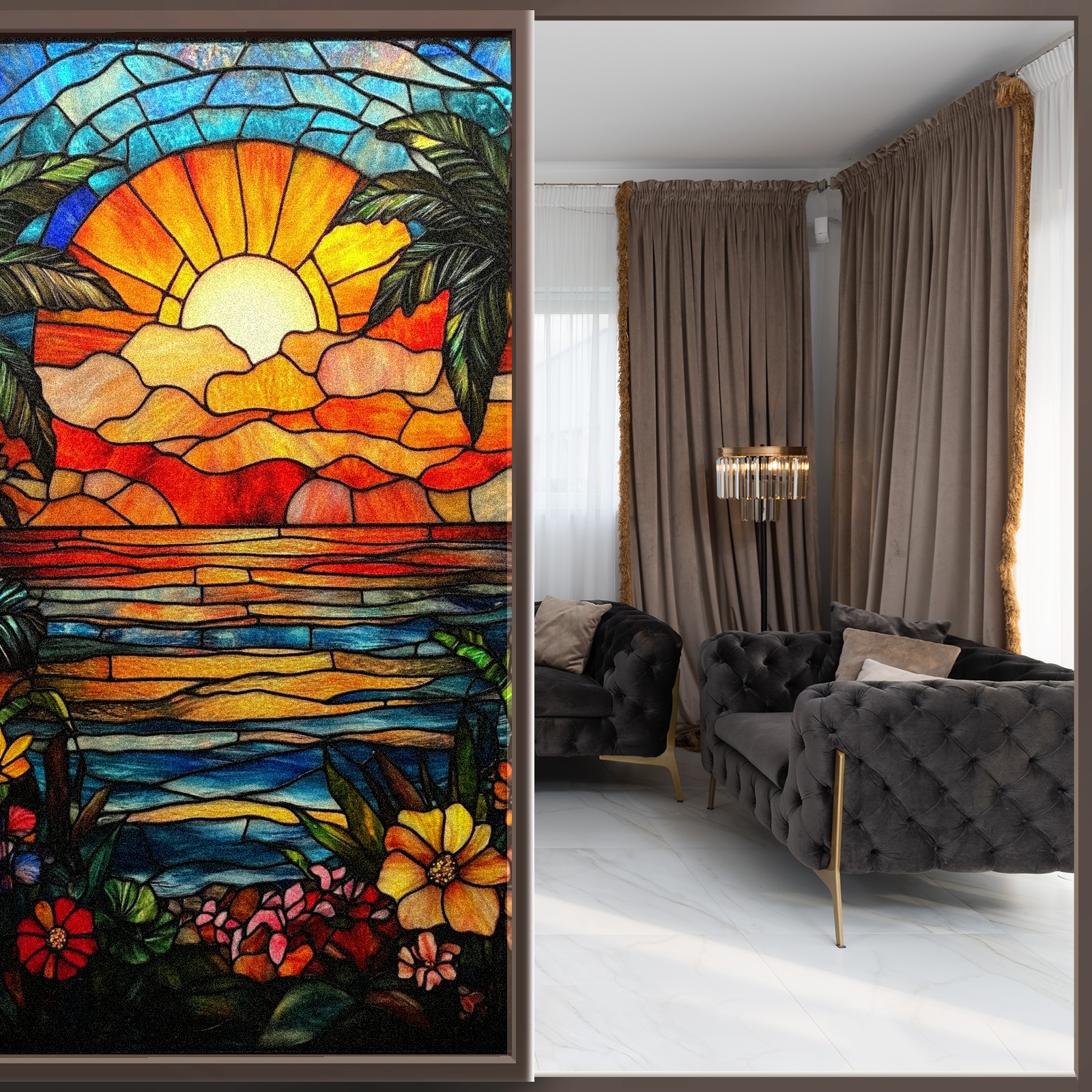 Stained Glass Window Film - Decorative Privacy Film for Windows, Peel and Stick Window Film for Bathroom/Office/Shower, Reusable and Easy to Cut 17.7"x23.6" (Sunset)