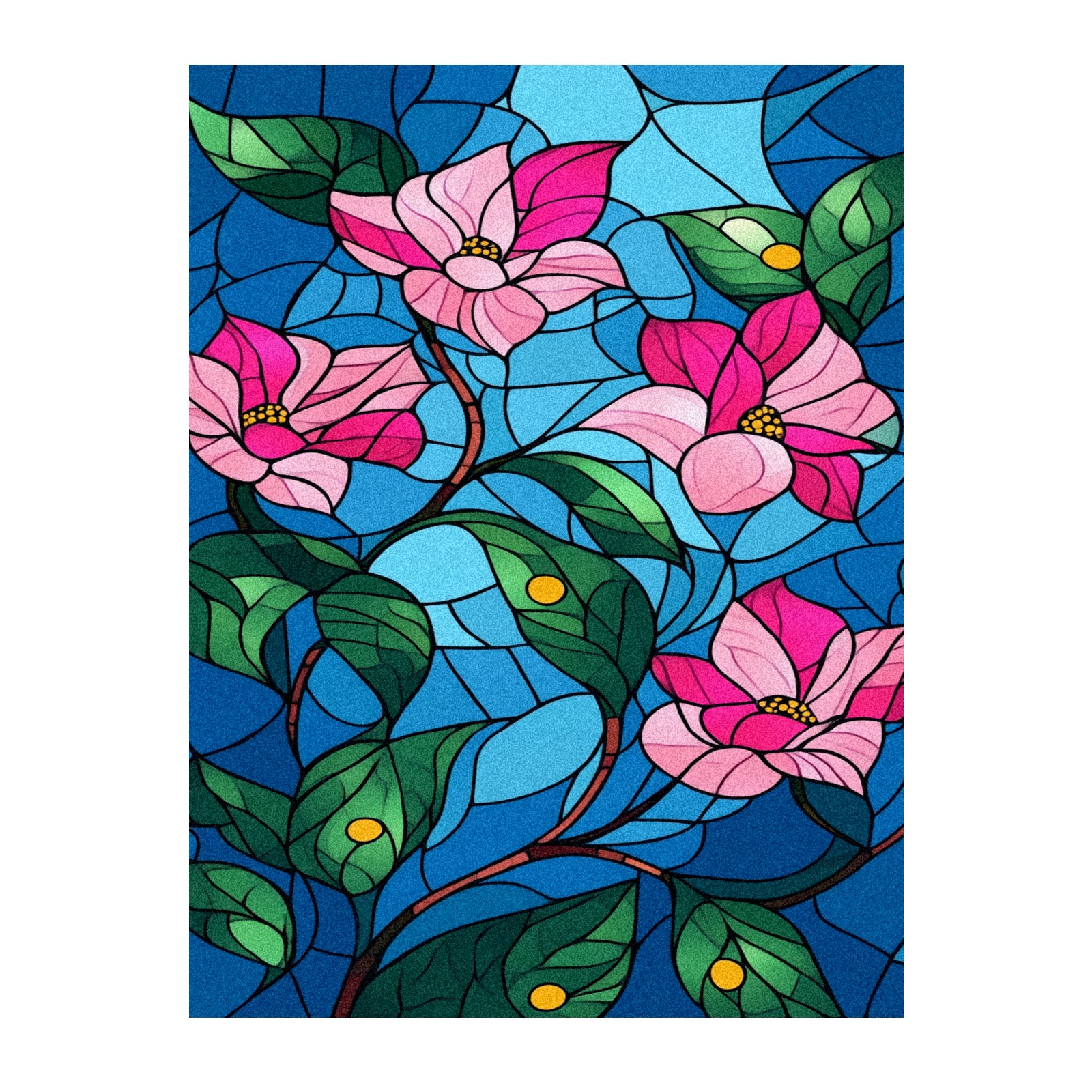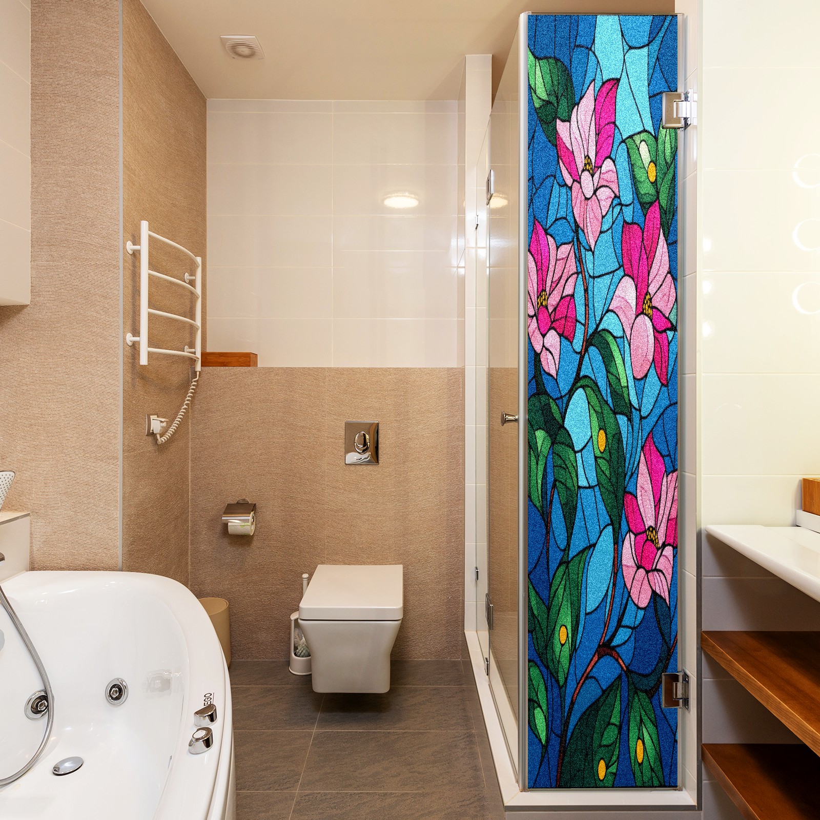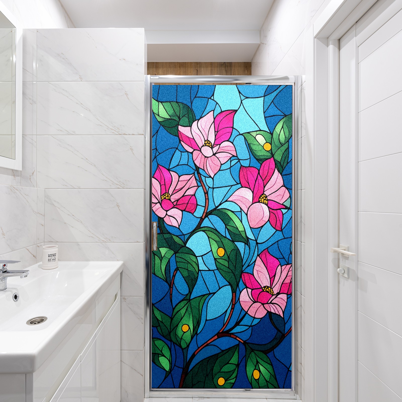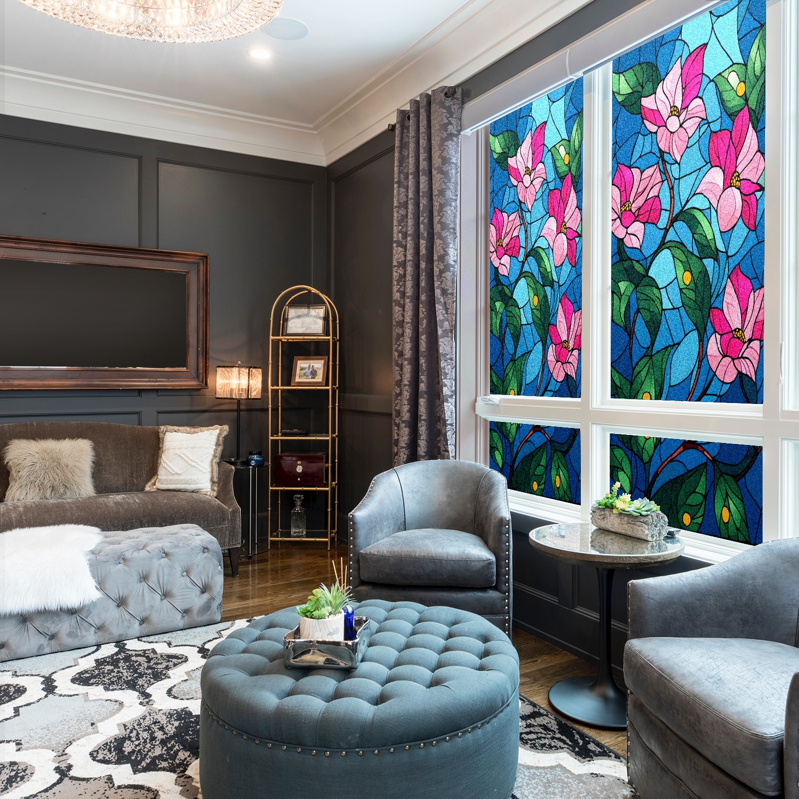 Stained Glass Window Film - Decorative Privacy Film for Windows, Peel and Stick Window Film for Bathroom/Office/Shower, Reusable and Easy to Cut 17.7"x23.6" (Pink Flowers)