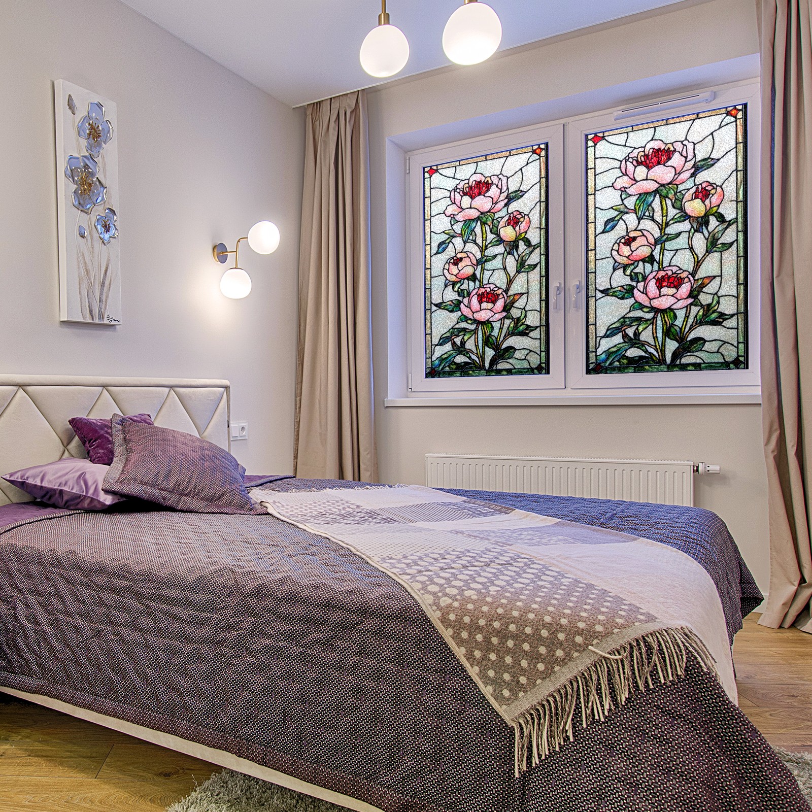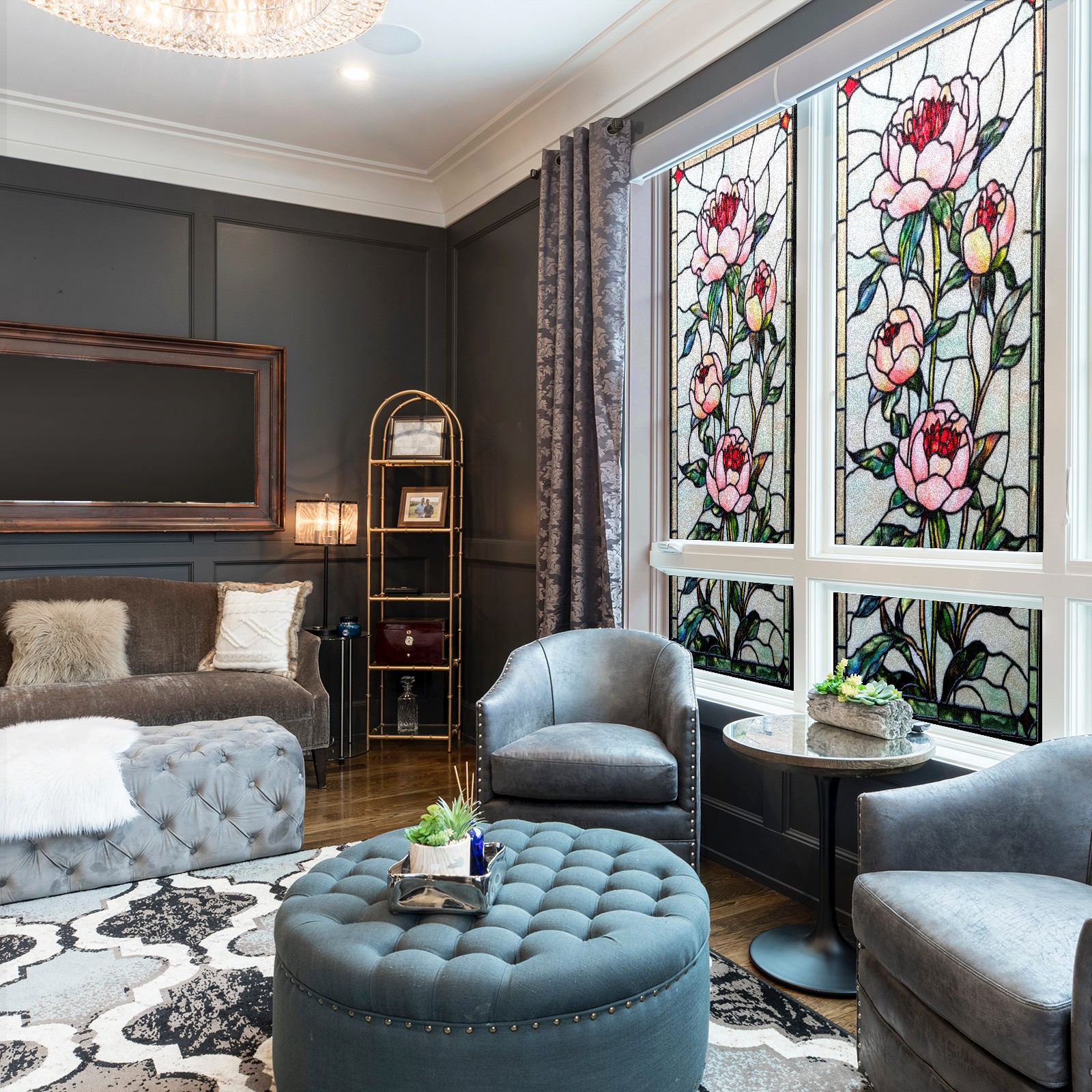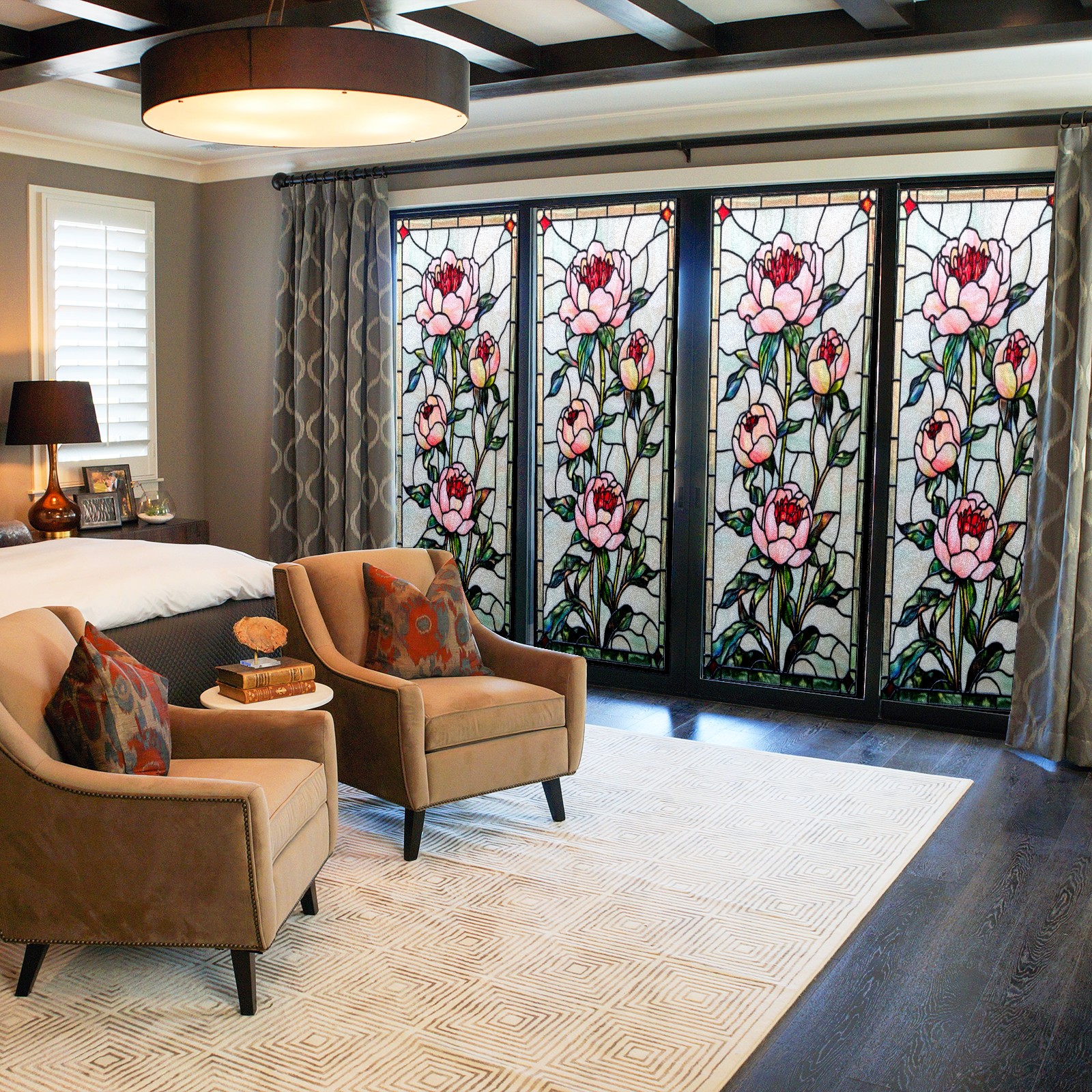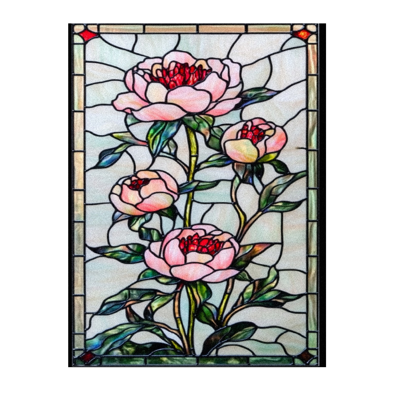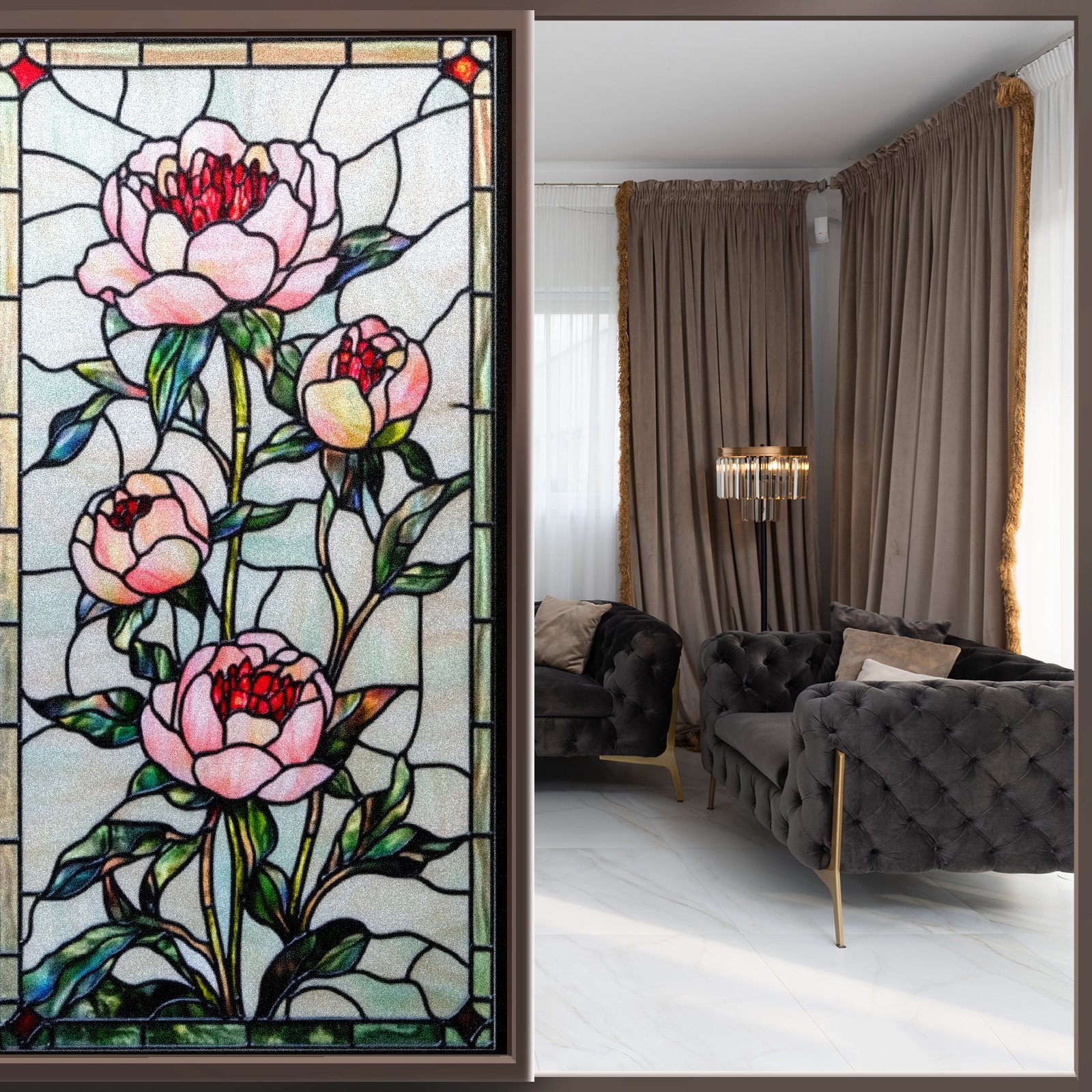 Stained Glass Window Film - Decorative Privacy Film for Windows, Peel and Stick Window Film for Bathroom/Office/Shower, Reusable and Easy to Cut 17.7"x23.6" (Pink And Green Flowers)