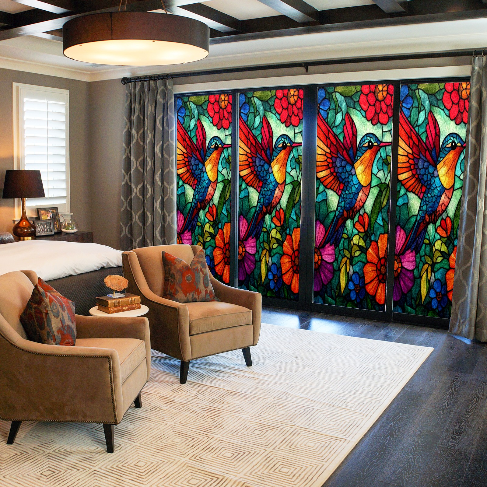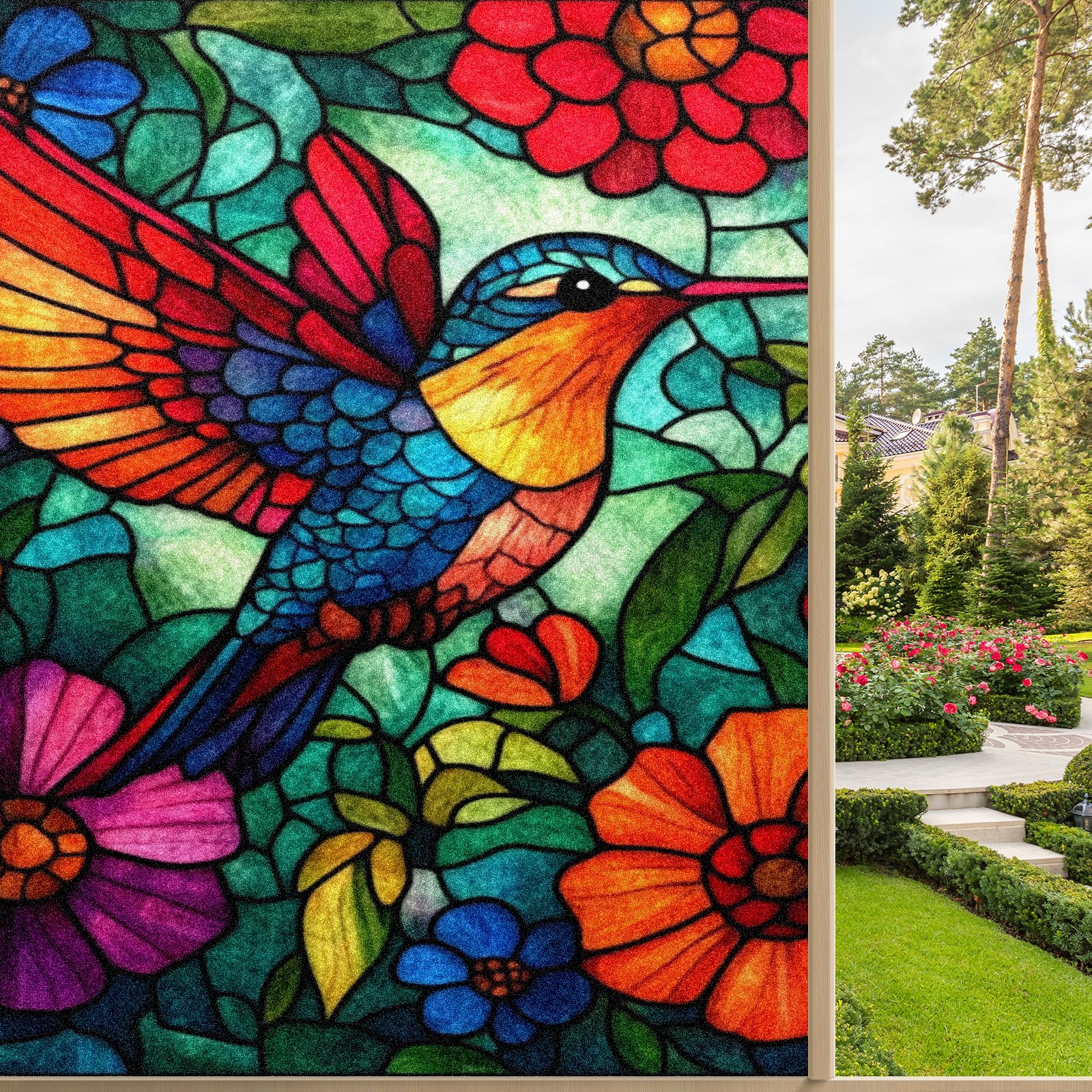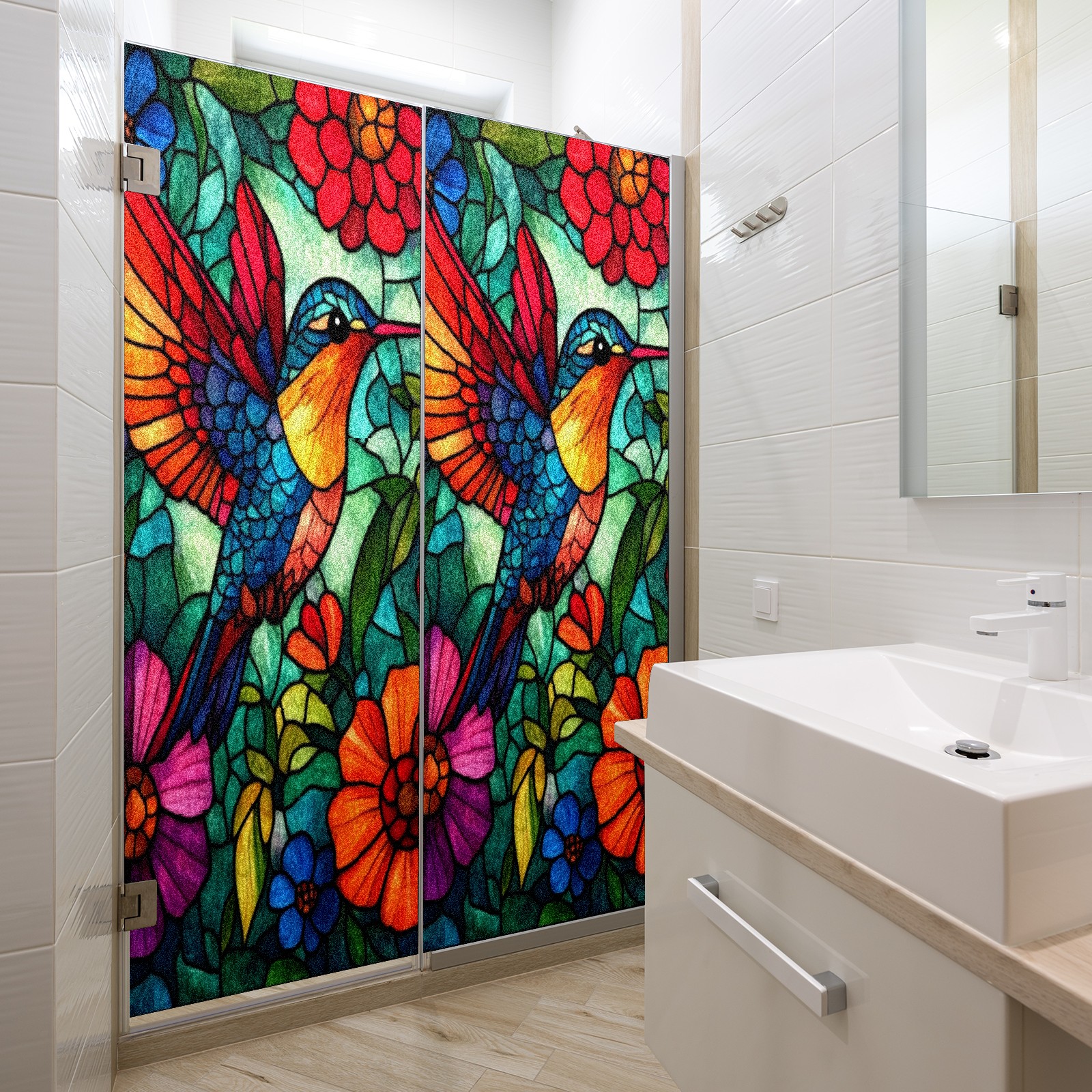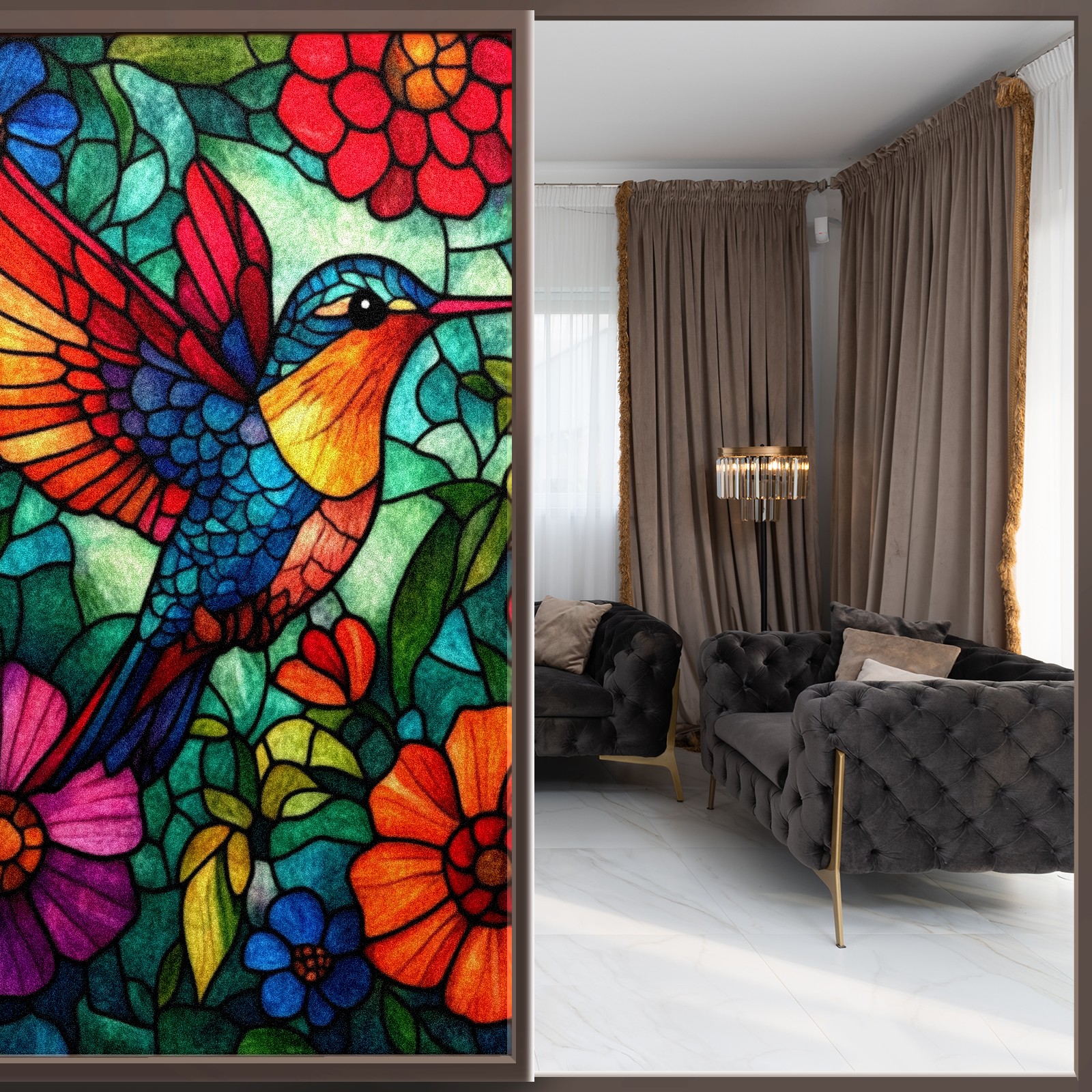 Stained Glass Window Film - Decorative Privacy Film for Windows, Peel and Stick Window Film for Bathroom/Office/Shower, Reusable and Easy to Cut 17.7"x23.6" (Hummingbird)