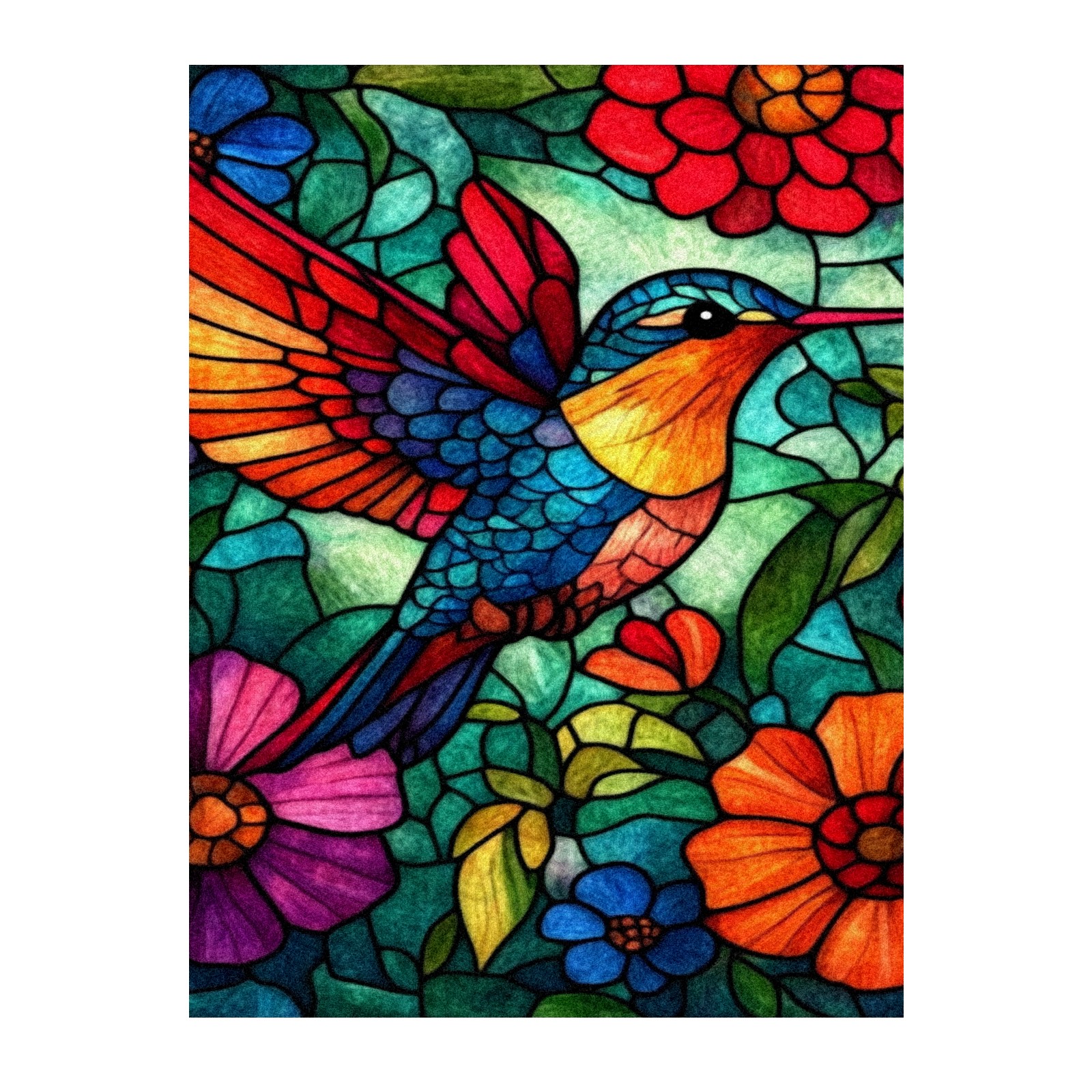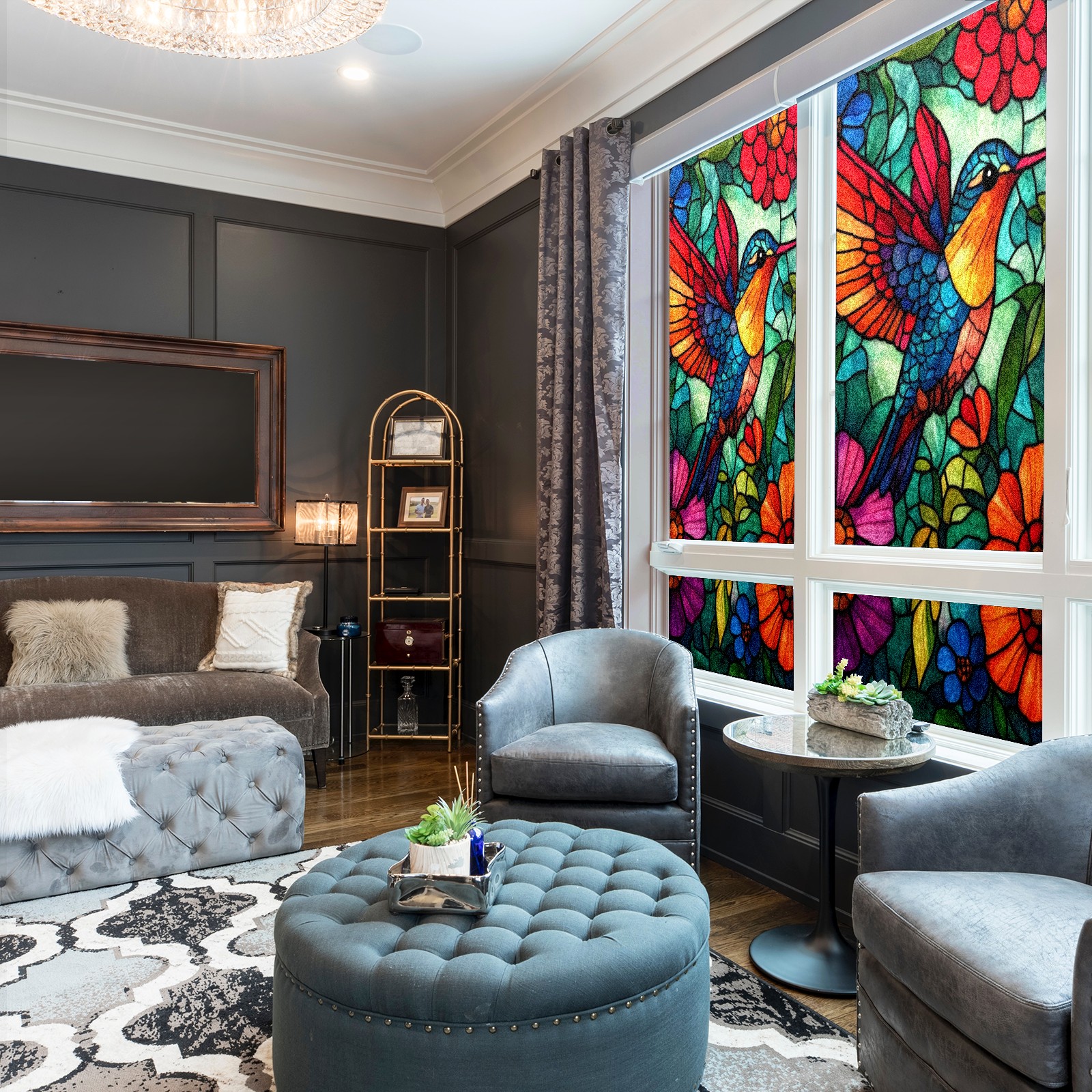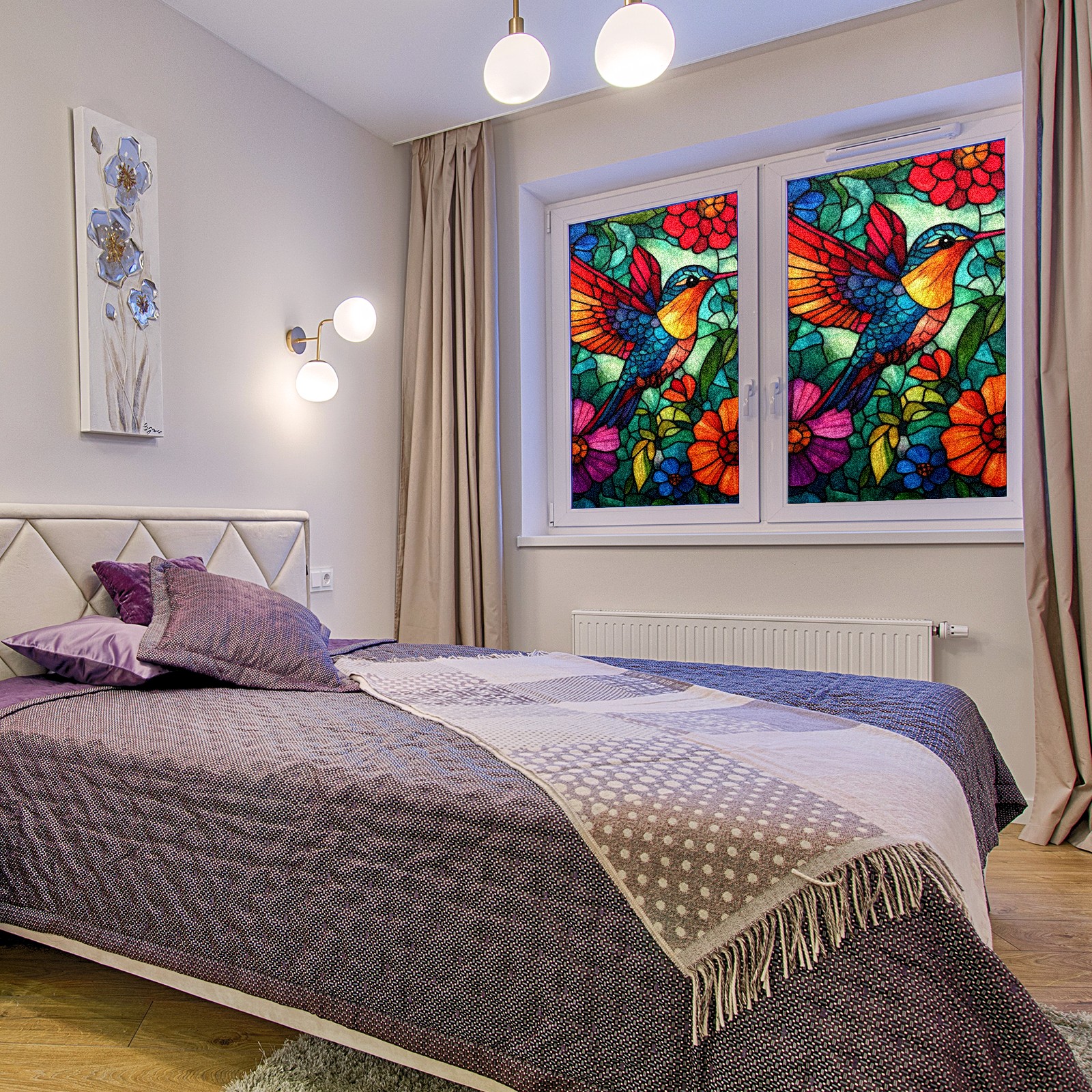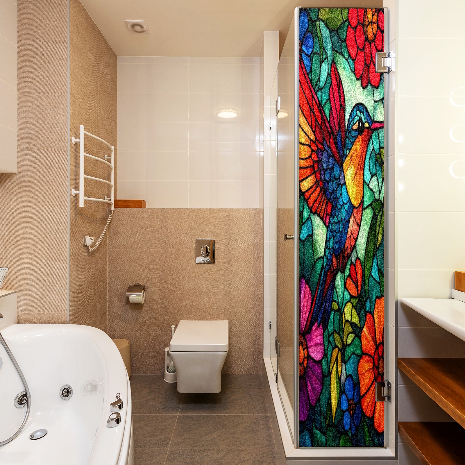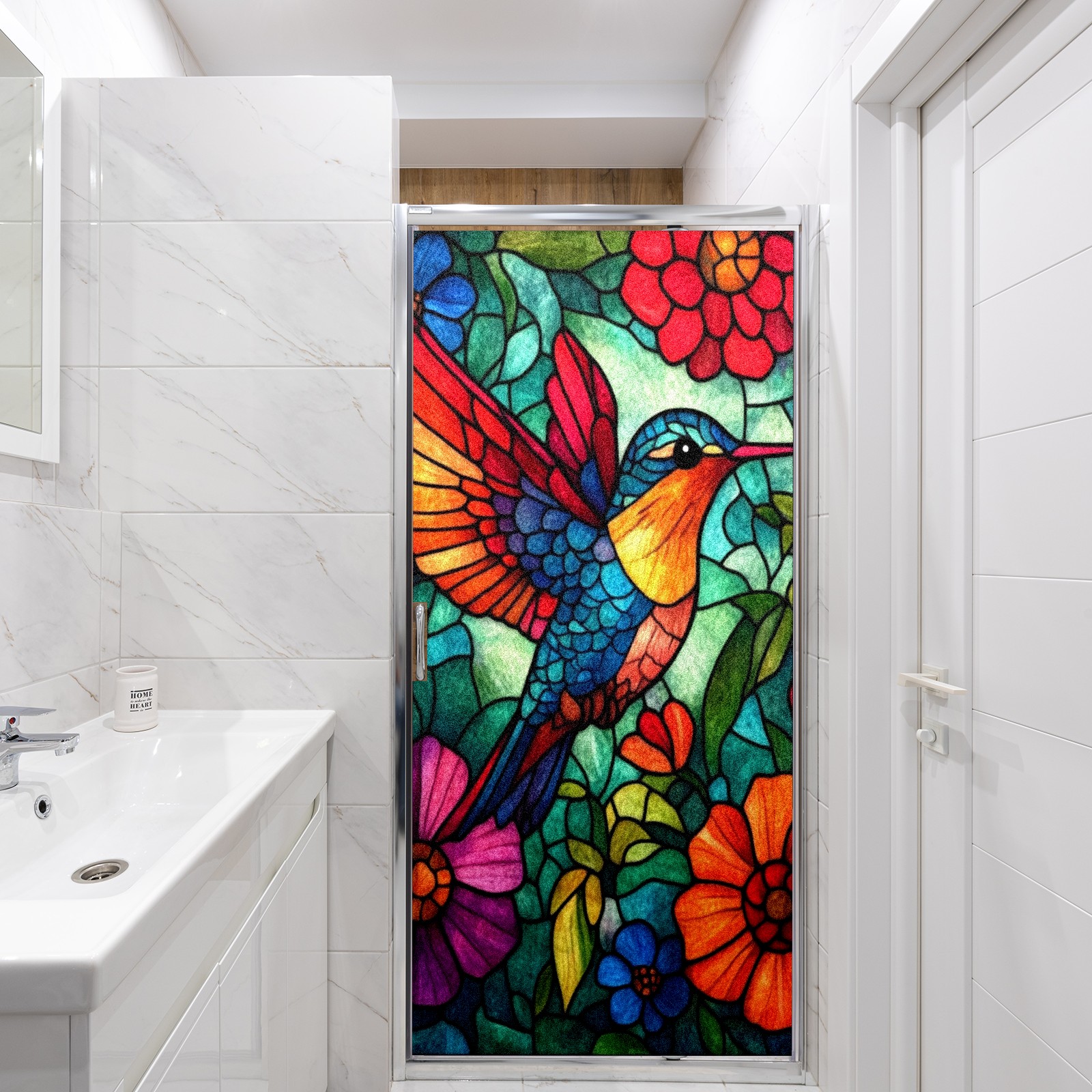 Stained Glass Window Film - Decorative Privacy Film for Windows, Peel and Stick Window Film for Bathroom/Office/Shower, Reusable and Easy to Cut 17.7"x23.6" (Hummingbird)