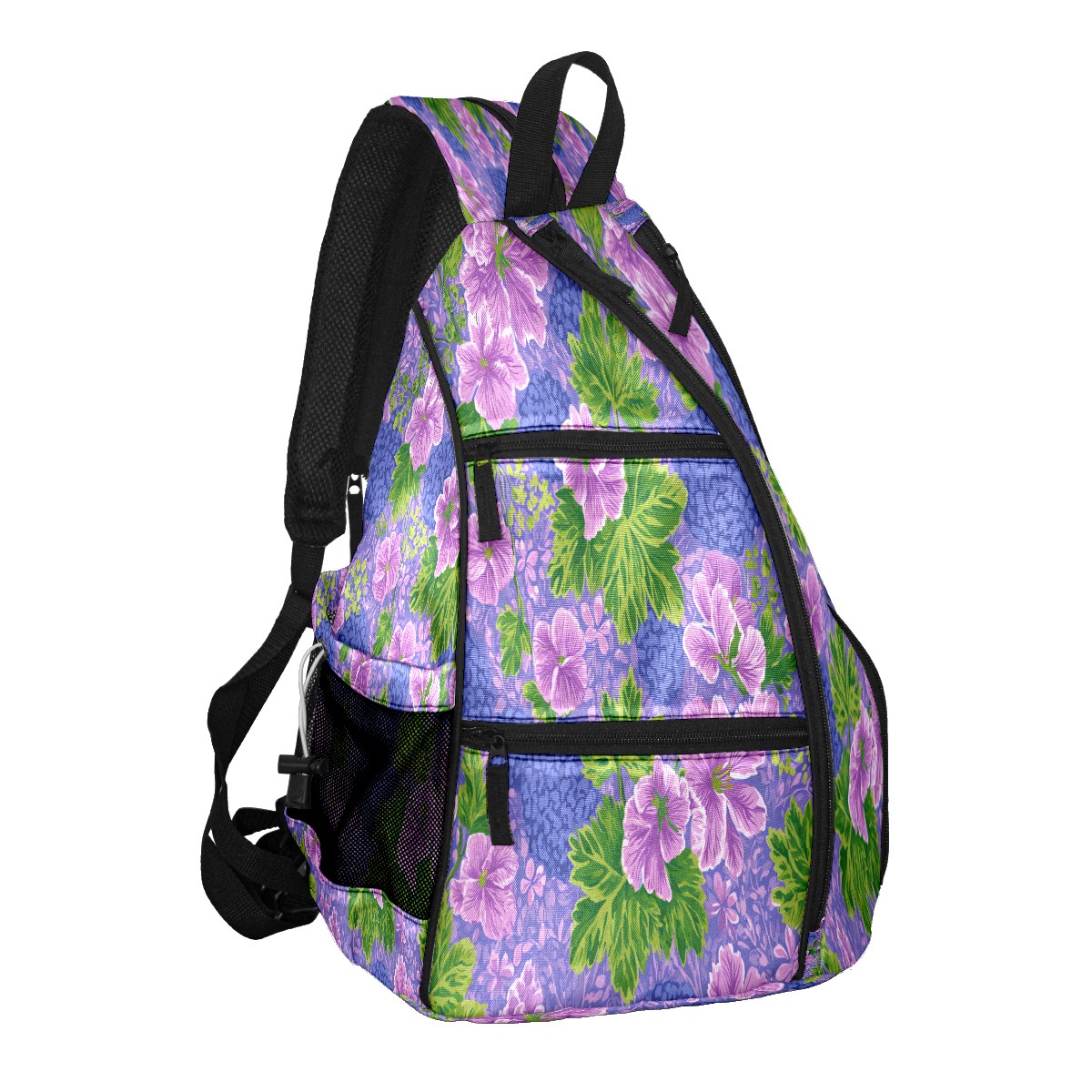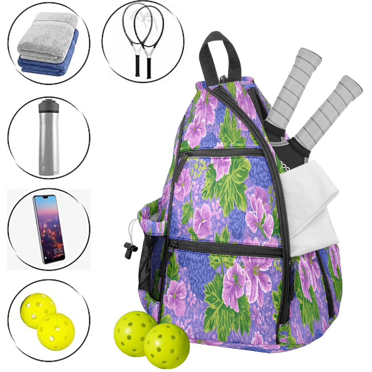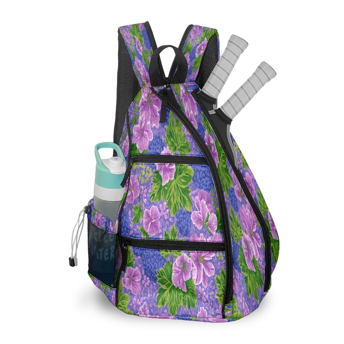 Tennis & Pickleball Backpack for Women Men | Padded 2-3 Paddle Compartment | Multi-Pocket Gym Backpack with Water Bottle Holder | Floral PurplePink