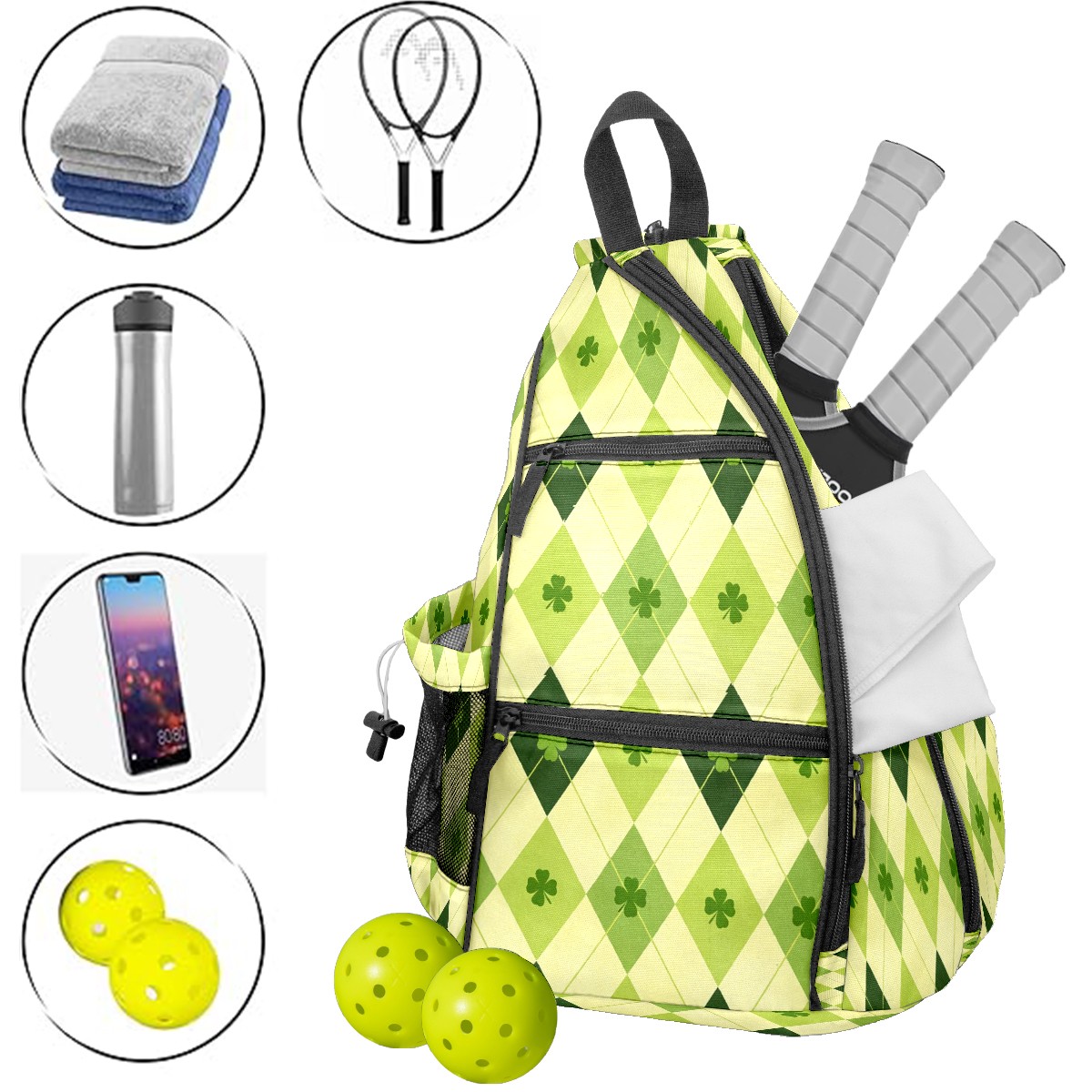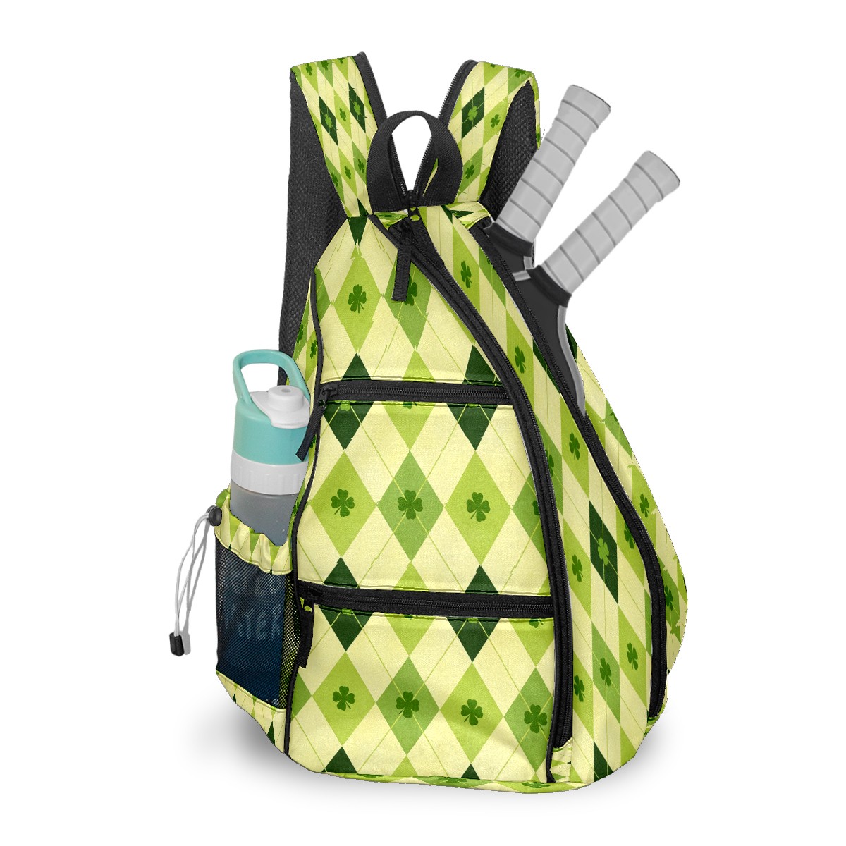 Tennis & Pickleball Backpack for Women Men | Padded 2-3 Paddle Compartment | Multi-Pocket Gym Backpack with Water Bottle Holder | Diamond Clover Yellow