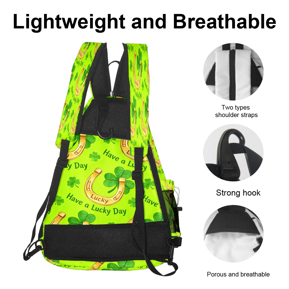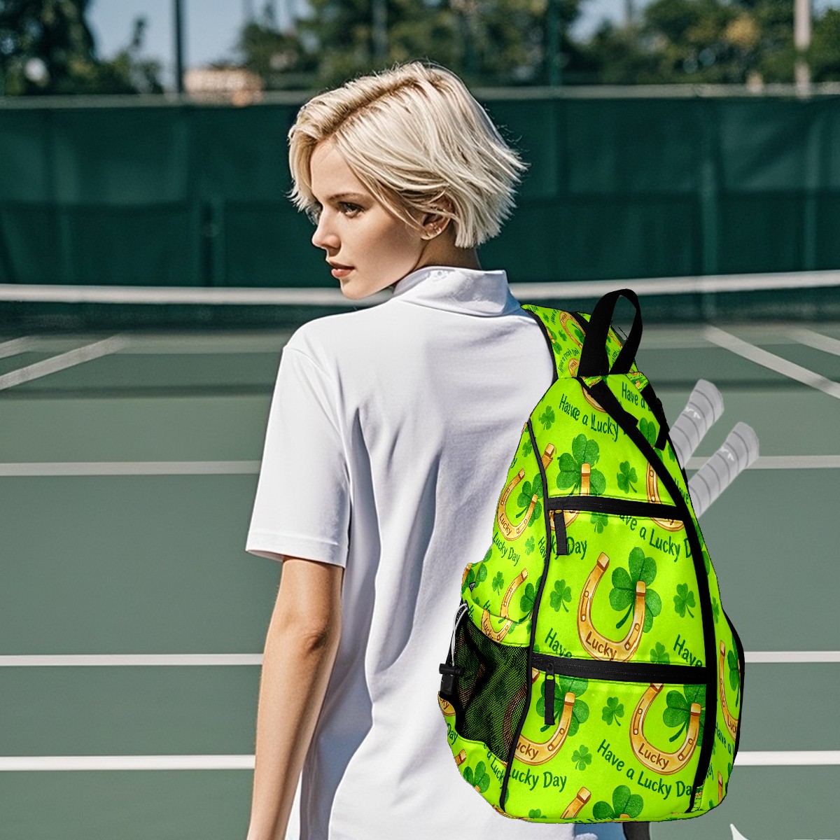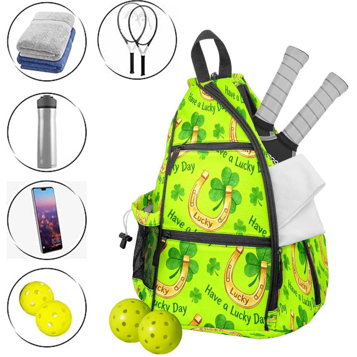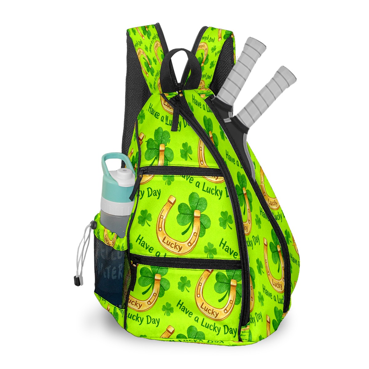 Tennis & Pickleball Backpack for Women Men | Padded 2-3 Paddle Compartment | Multi-Pocket Gym Backpack with Water Bottle Holder | Horseshoe Clover Yellow