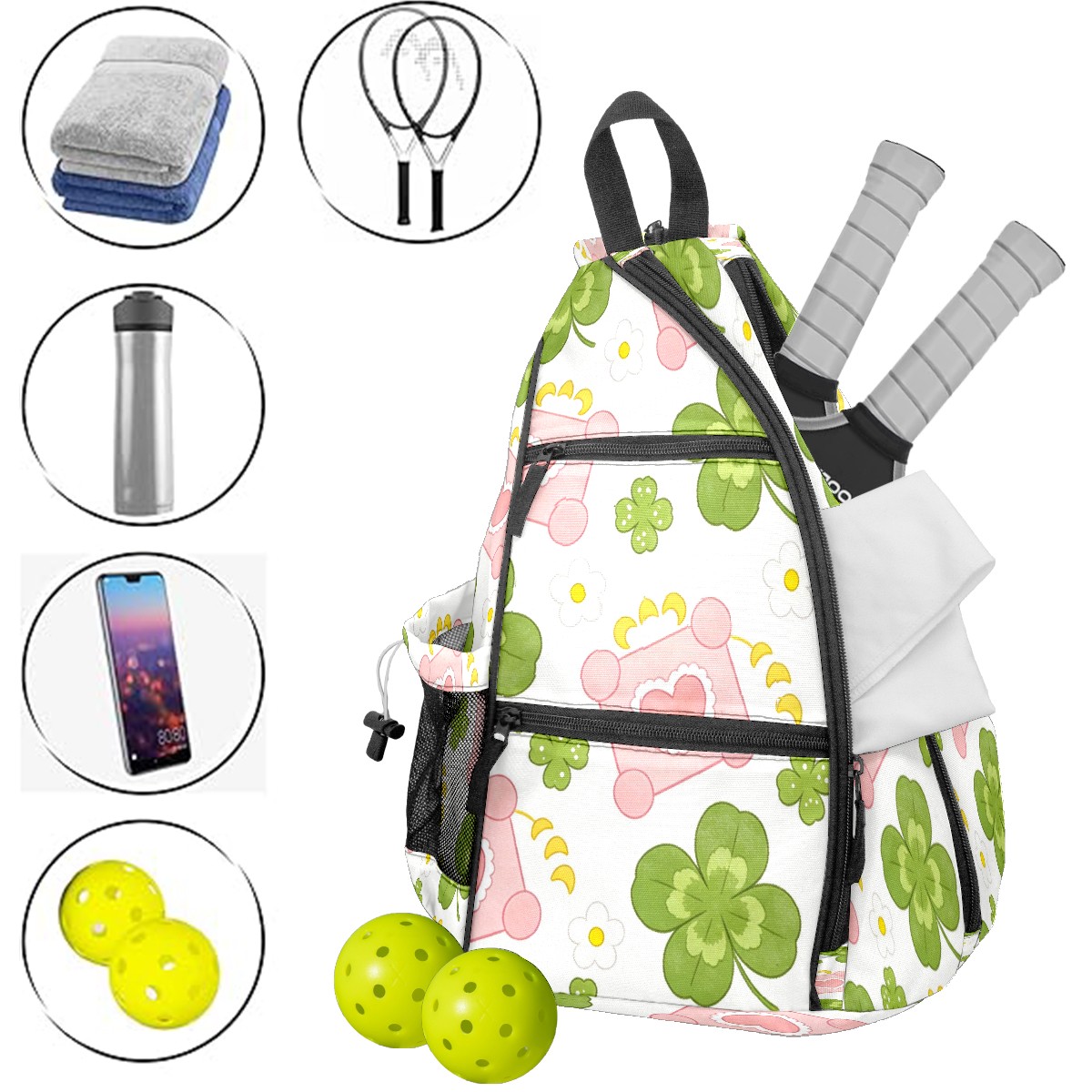 Tennis & Pickleball Backpack for Women Men | Padded 2-3 Paddle Compartment | Multi-Pocket Gym Backpack with Water Bottle Holder | Clover Green