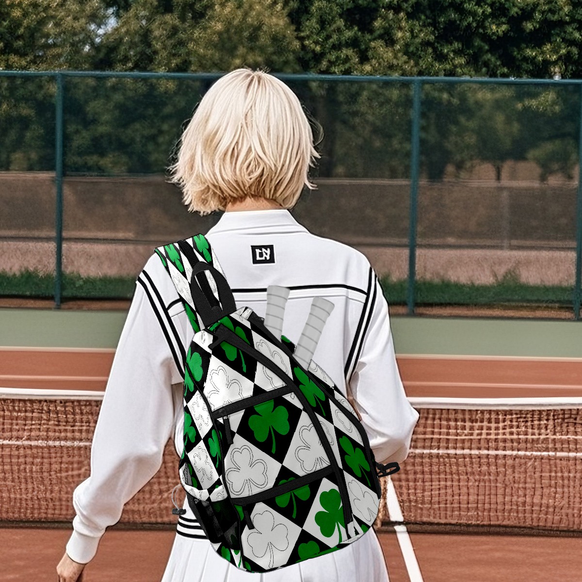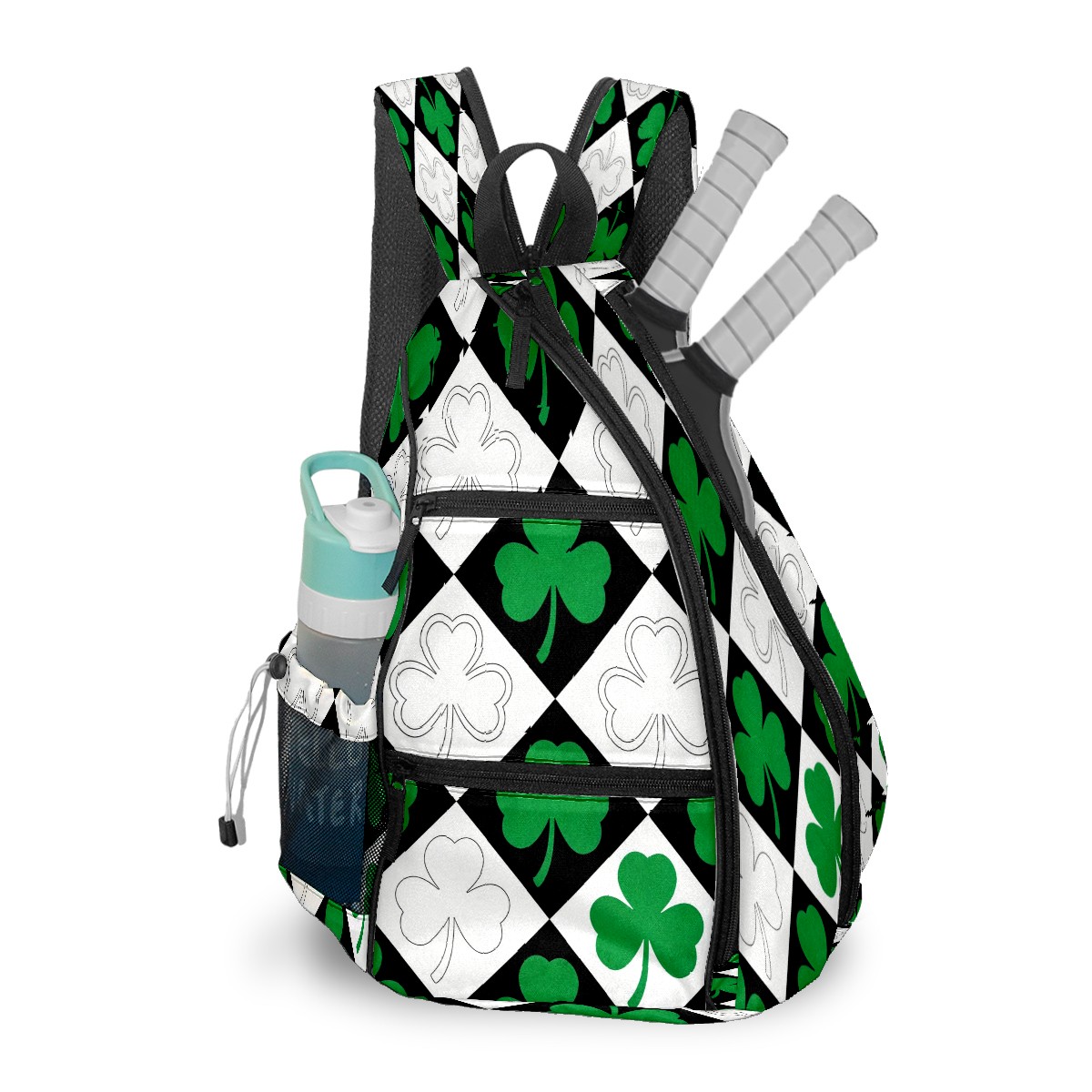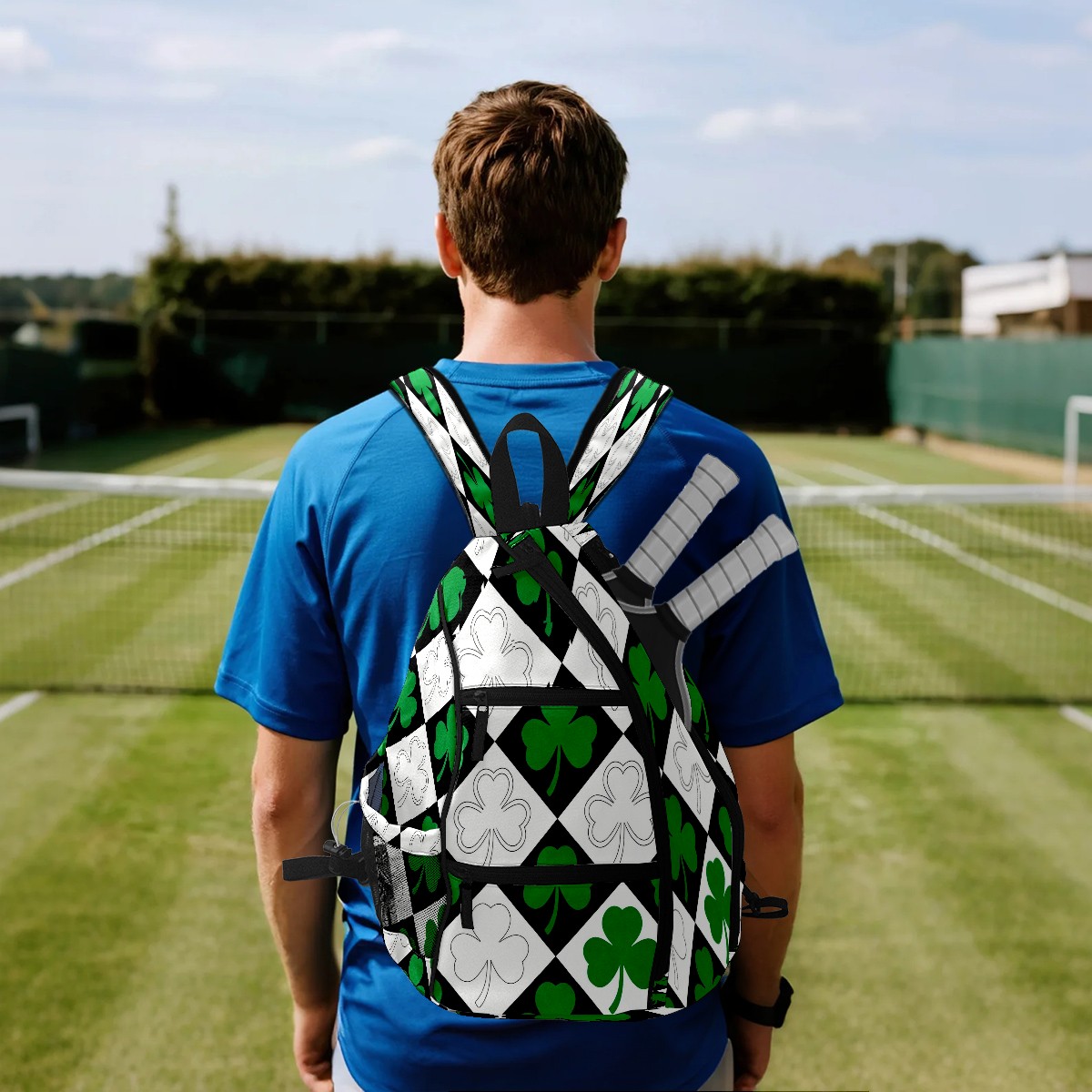Tennis & Pickleball Backpack for Women Men | Padded 2-3 Paddle Compartment | Multi-Pocket Gym Backpack with Water Bottle Holder | Diamond Clover Green
