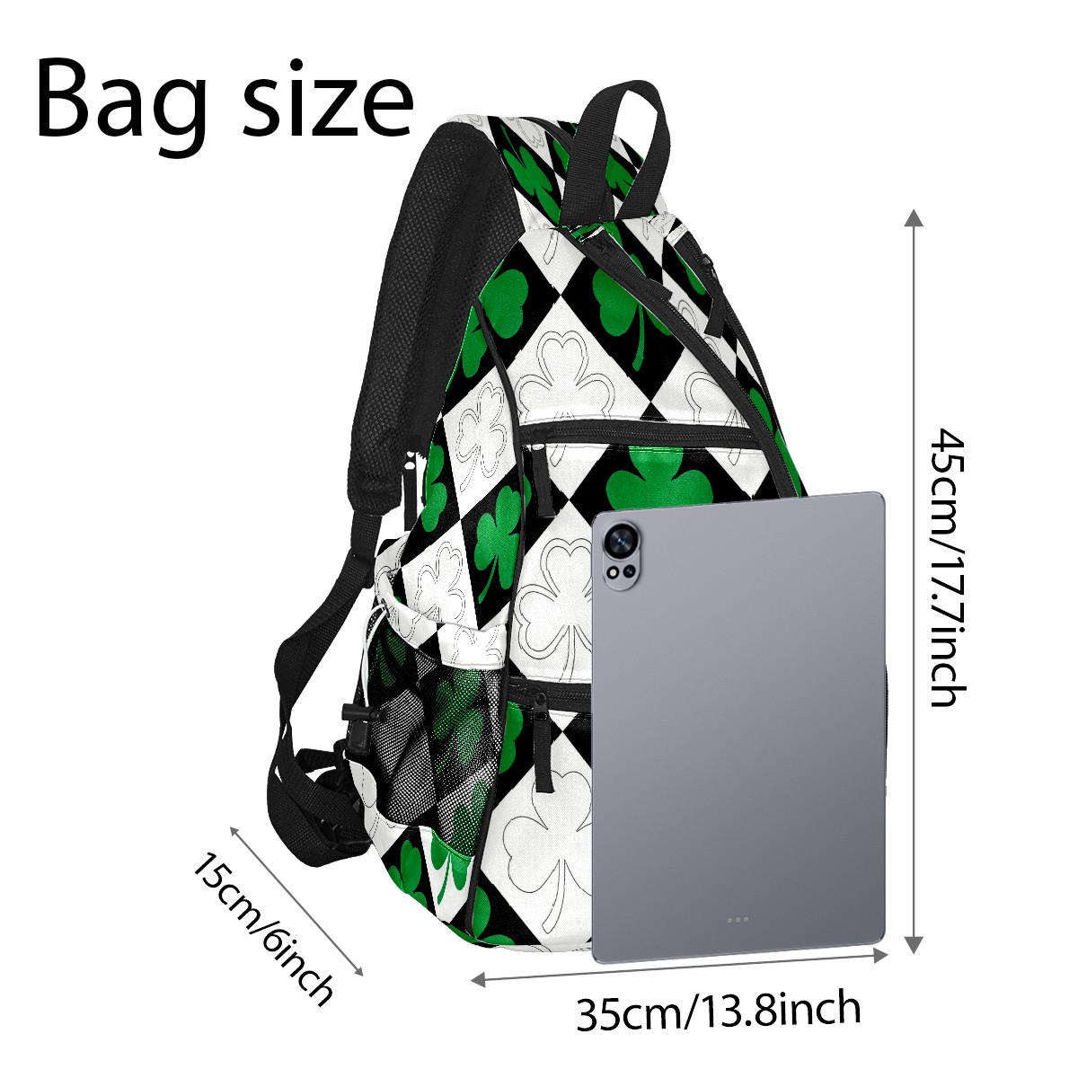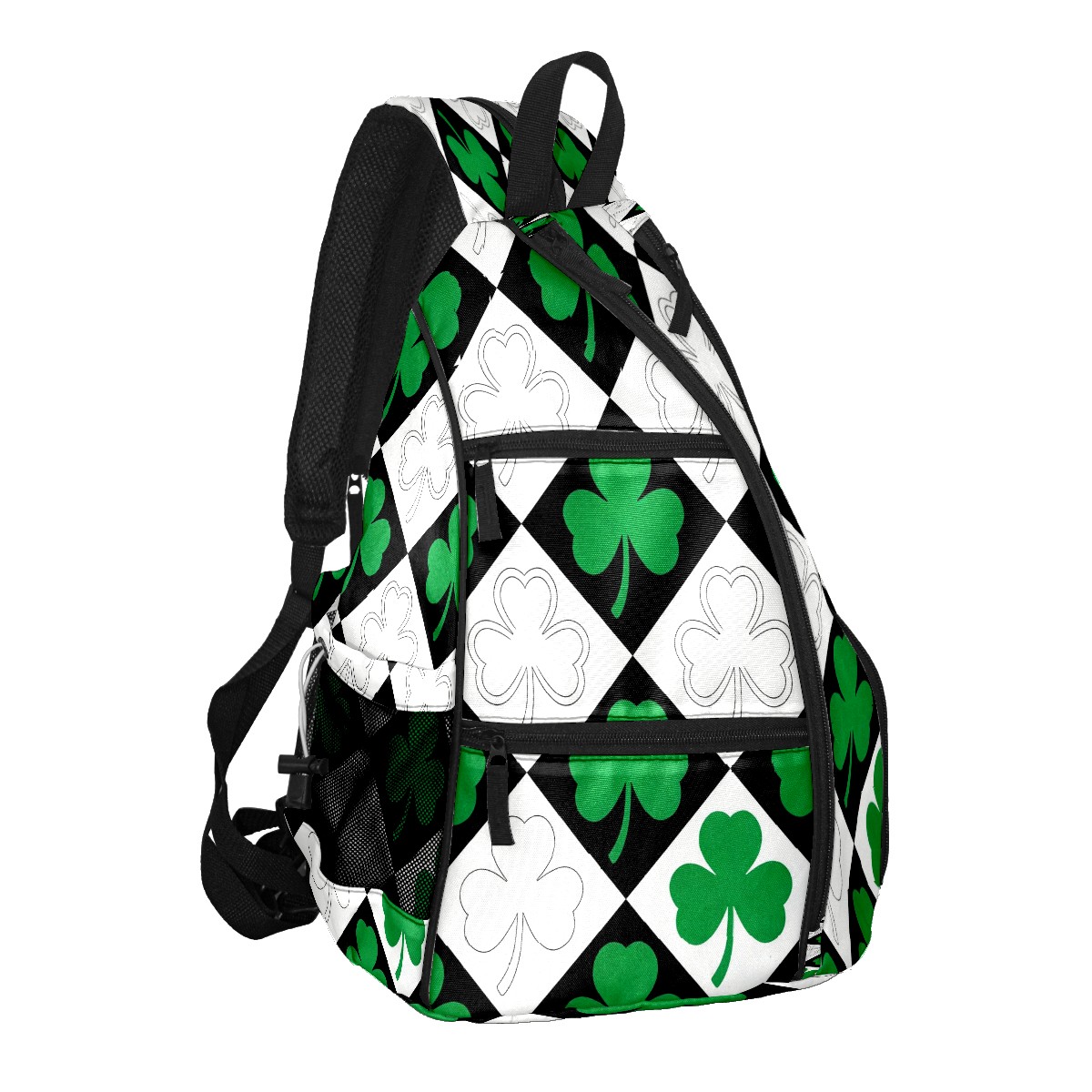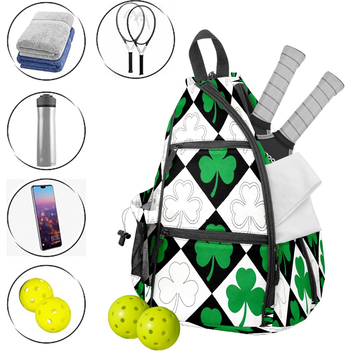 Tennis & Pickleball Backpack for Women Men | Padded 2-3 Paddle Compartment | Multi-Pocket Gym Backpack with Water Bottle Holder | Diamond Clover Green
