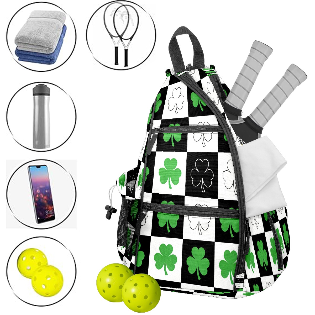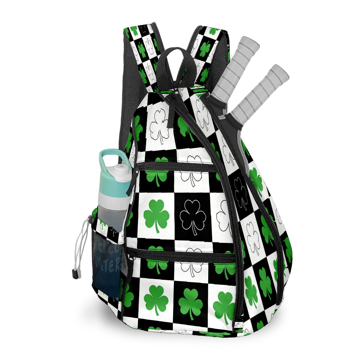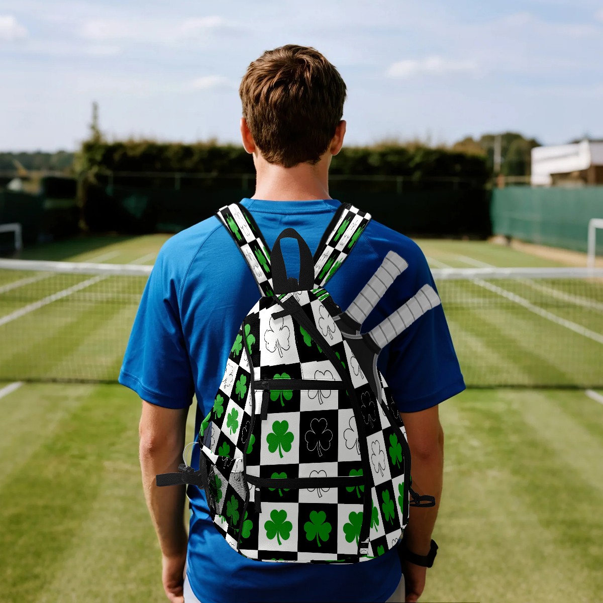 Tennis & Pickleball Backpack for Women Men | Padded 2-3 Paddle Compartment | Multi-Pocket Gym Backpack with Water Bottle Holder | Clover Checkerboard Green