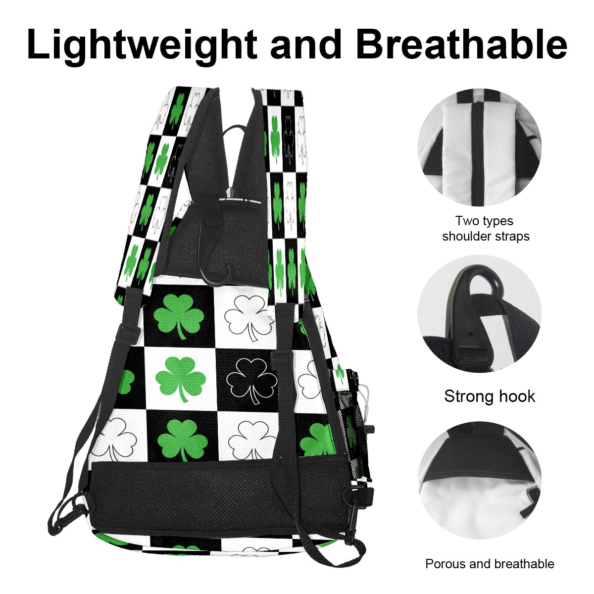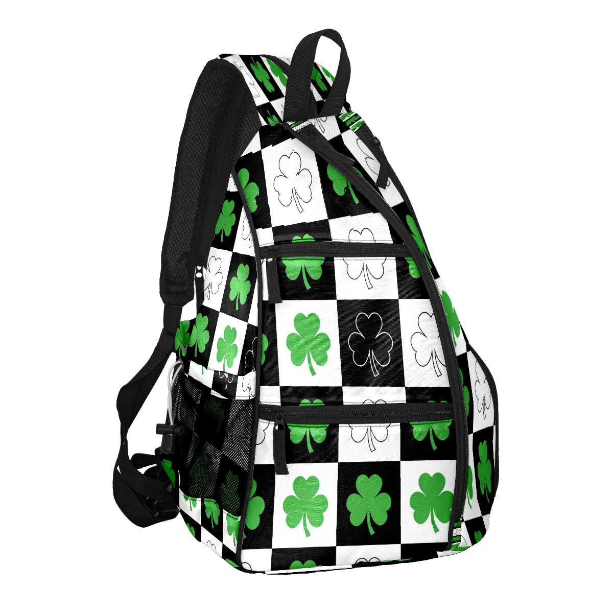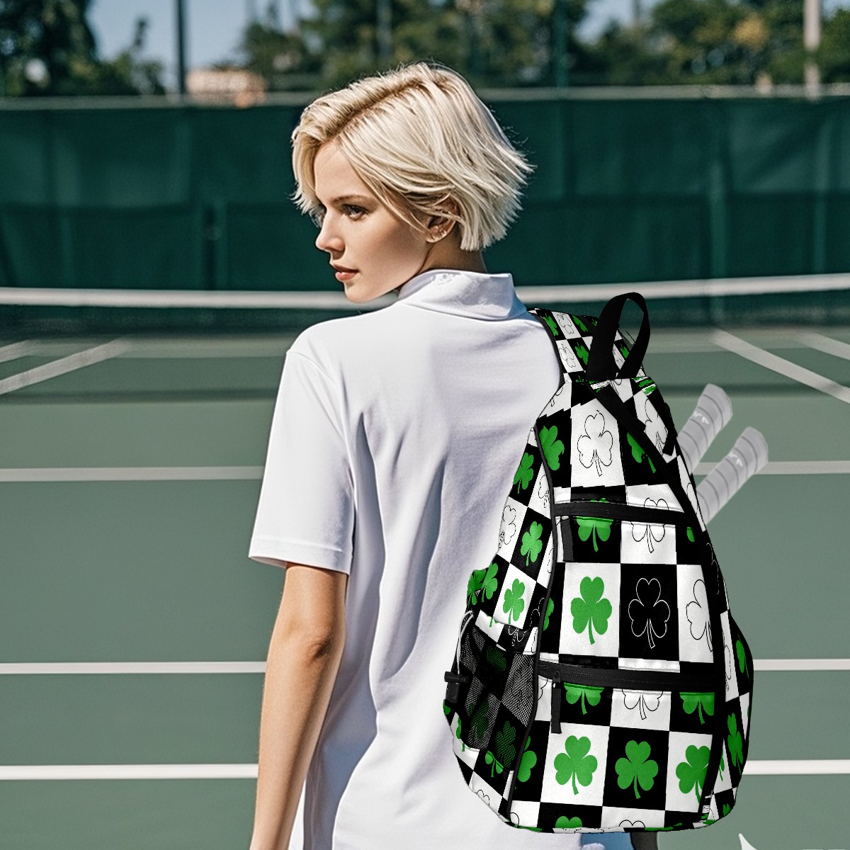 Tennis & Pickleball Backpack for Women Men | Padded 2-3 Paddle Compartment | Multi-Pocket Gym Backpack with Water Bottle Holder | Clover Checkerboard Green
