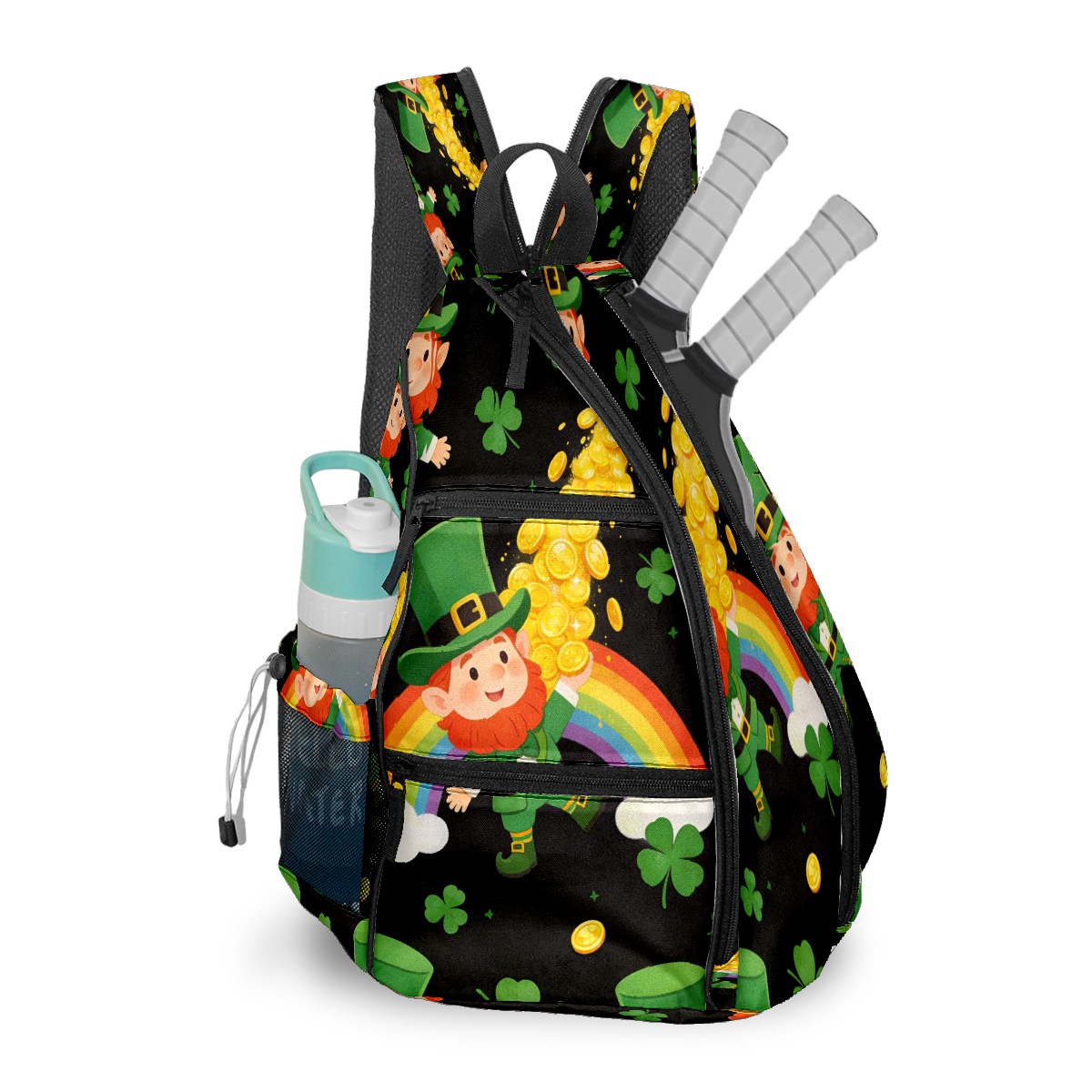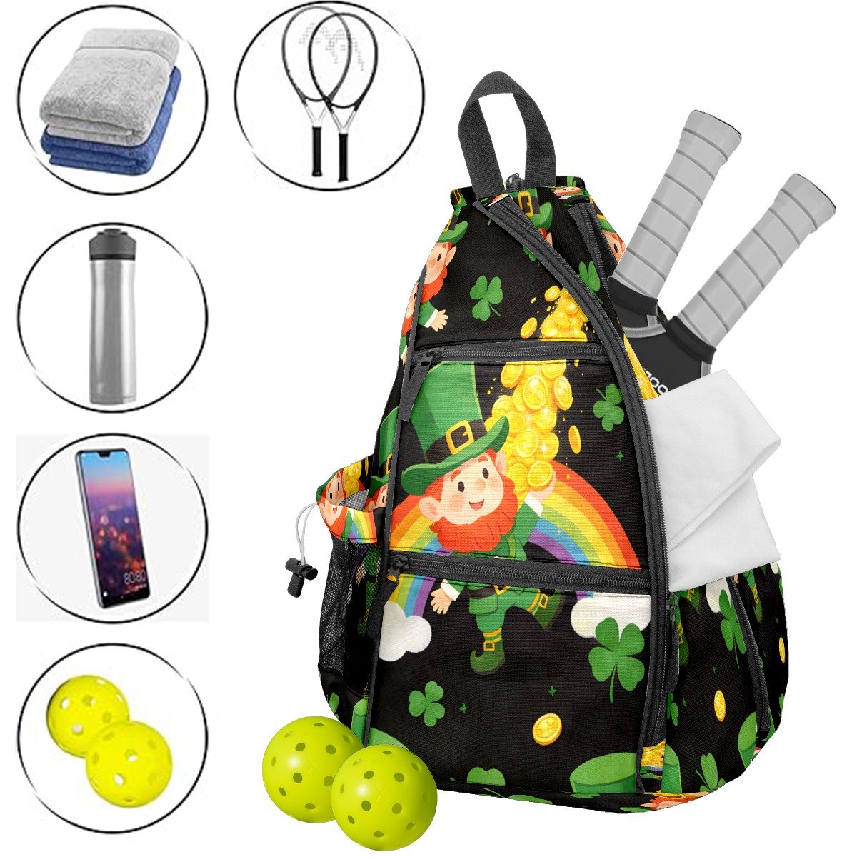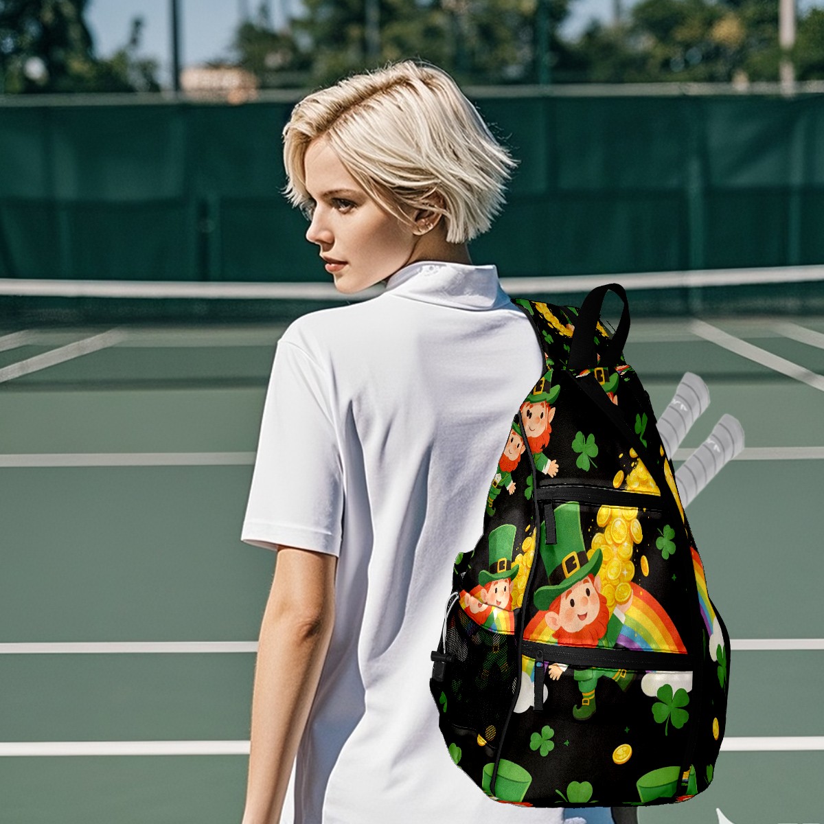 Tennis & Pickleball Backpack for Women Men | Padded 2-3 Paddle Compartment | Multi-Pocket Gym Backpack with Water Bottle Holder | Dwarf Coin Green