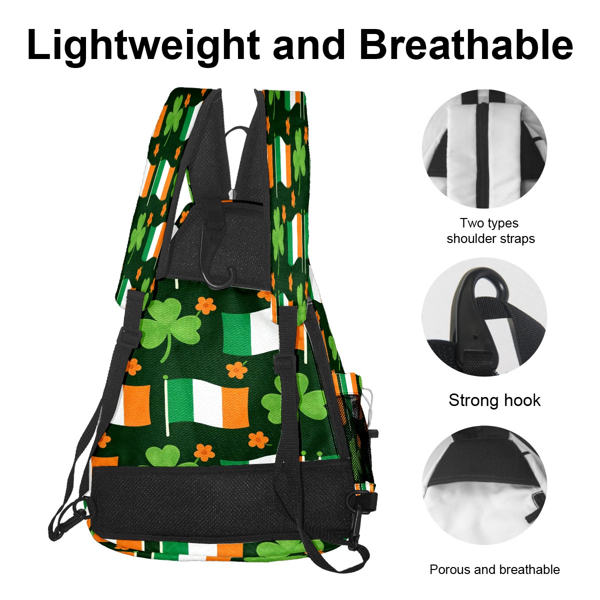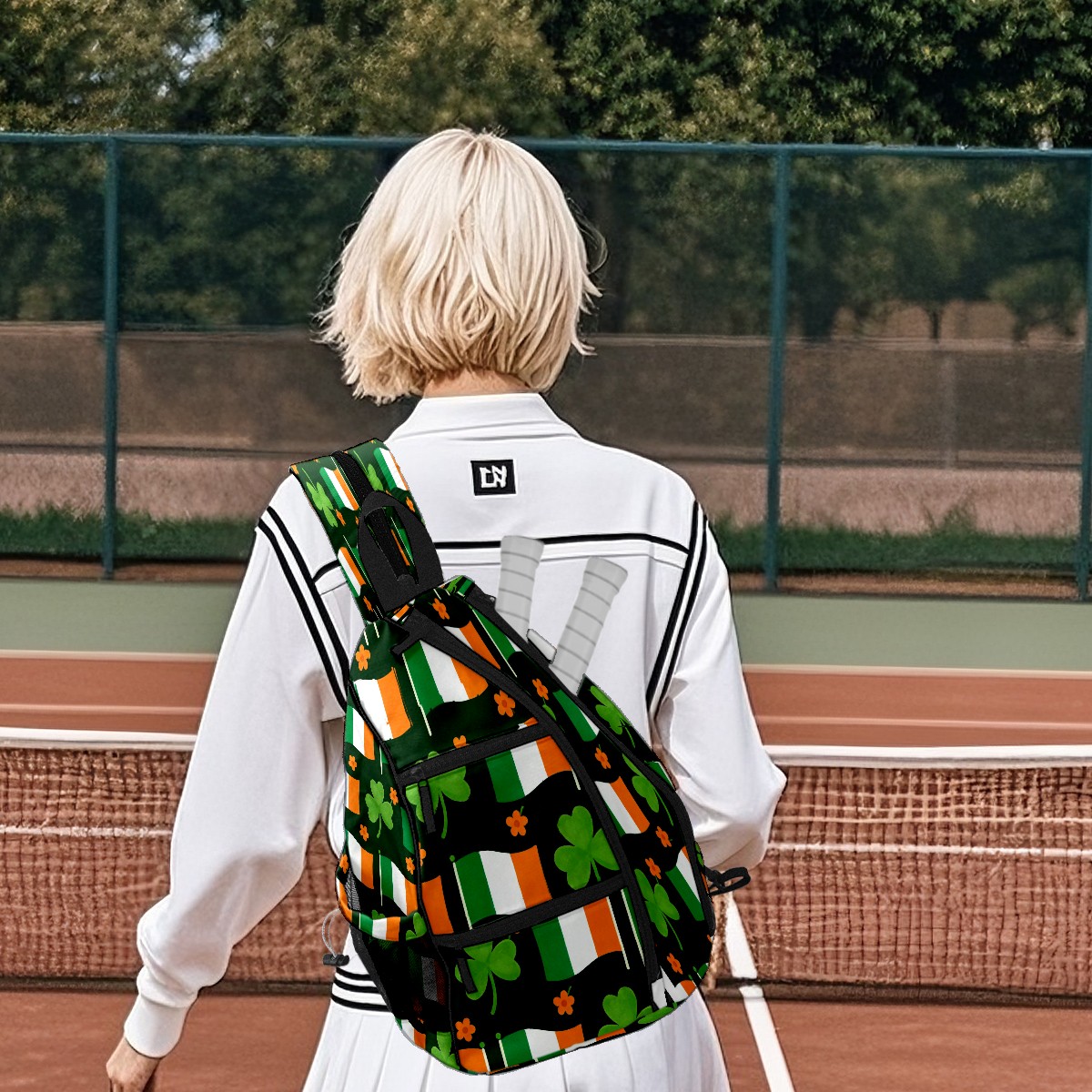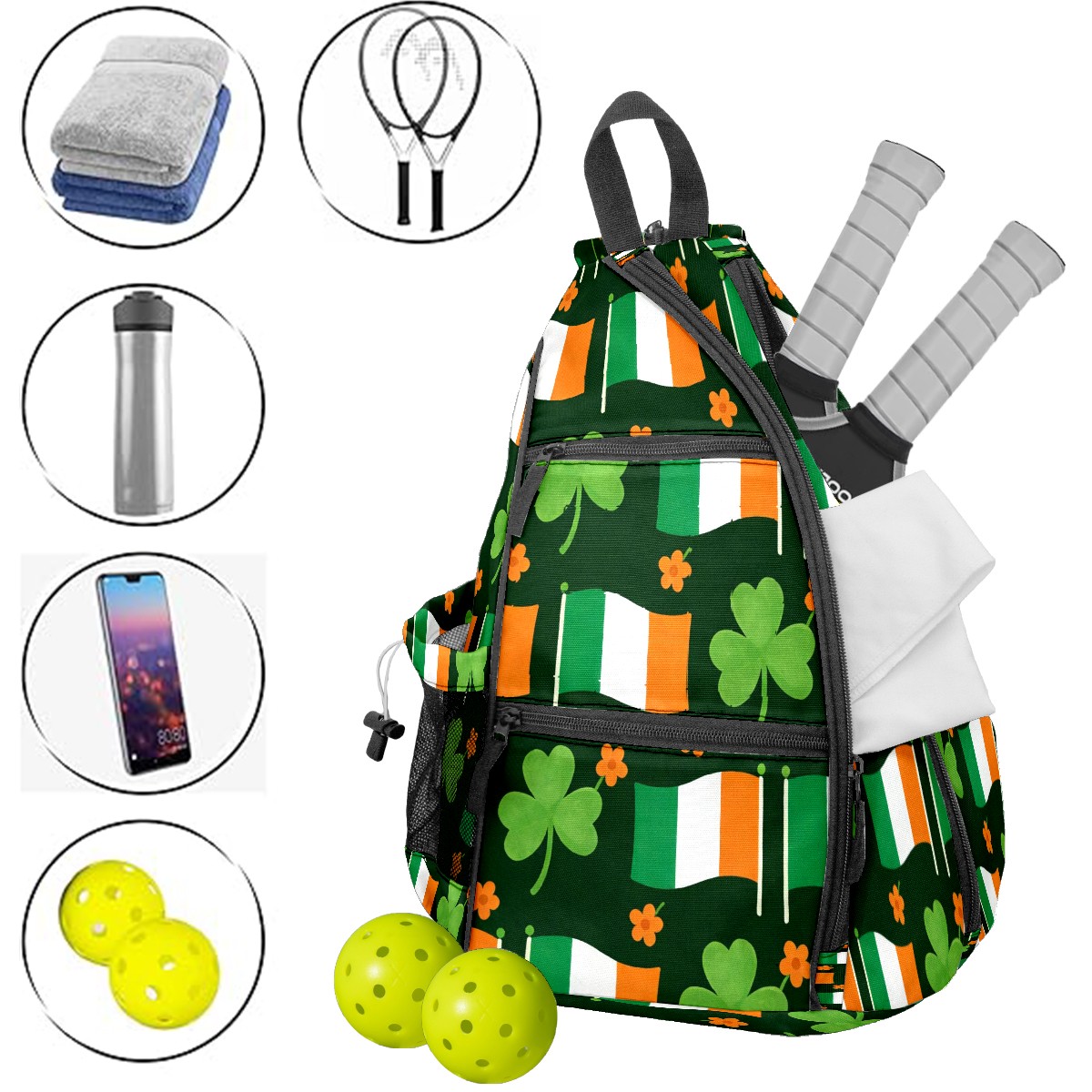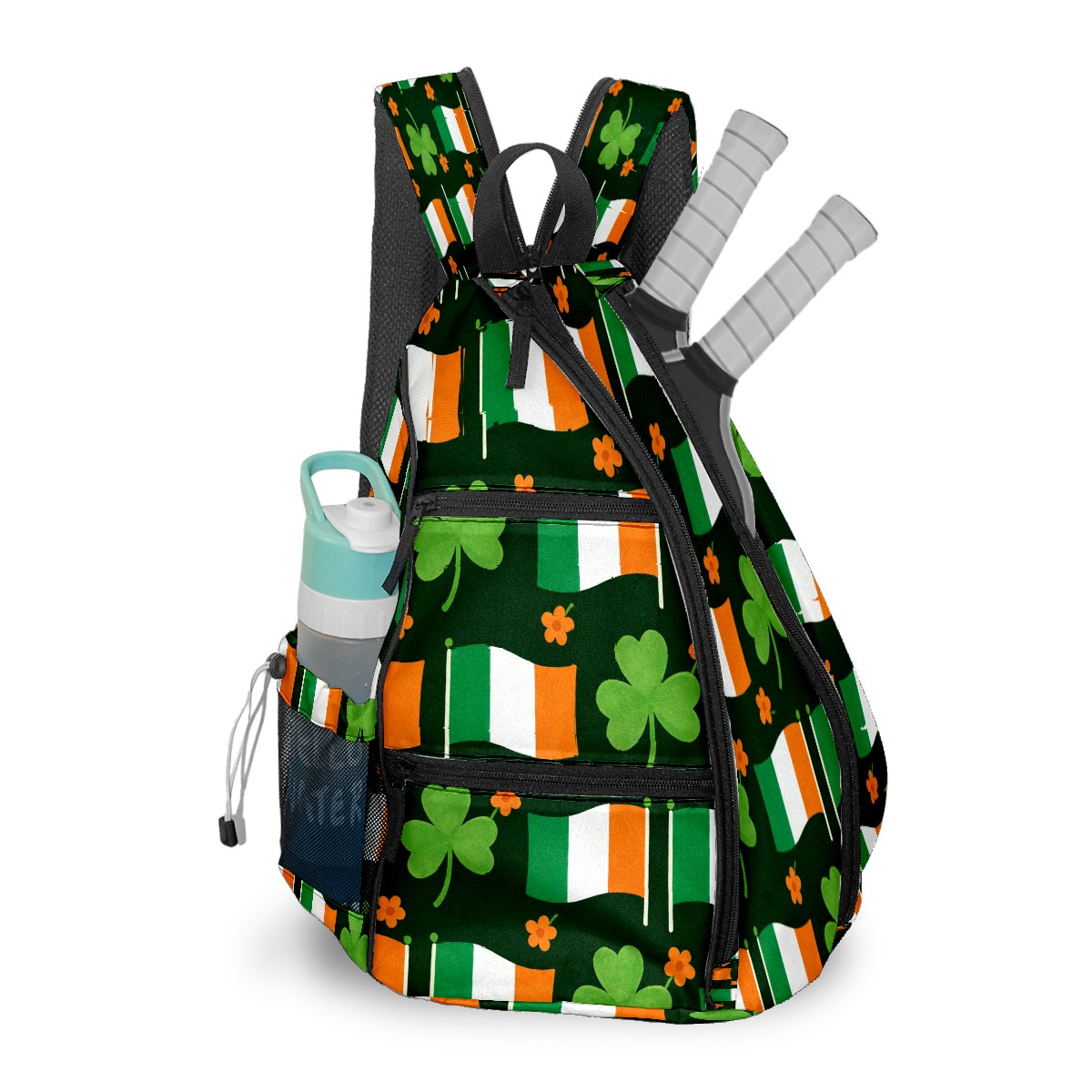 Tennis & Pickleball Backpack for Women Men | Padded 2-3 Paddle Compartment | Multi-Pocket Gym Backpack with Water Bottle Holder | Flag Clover Green