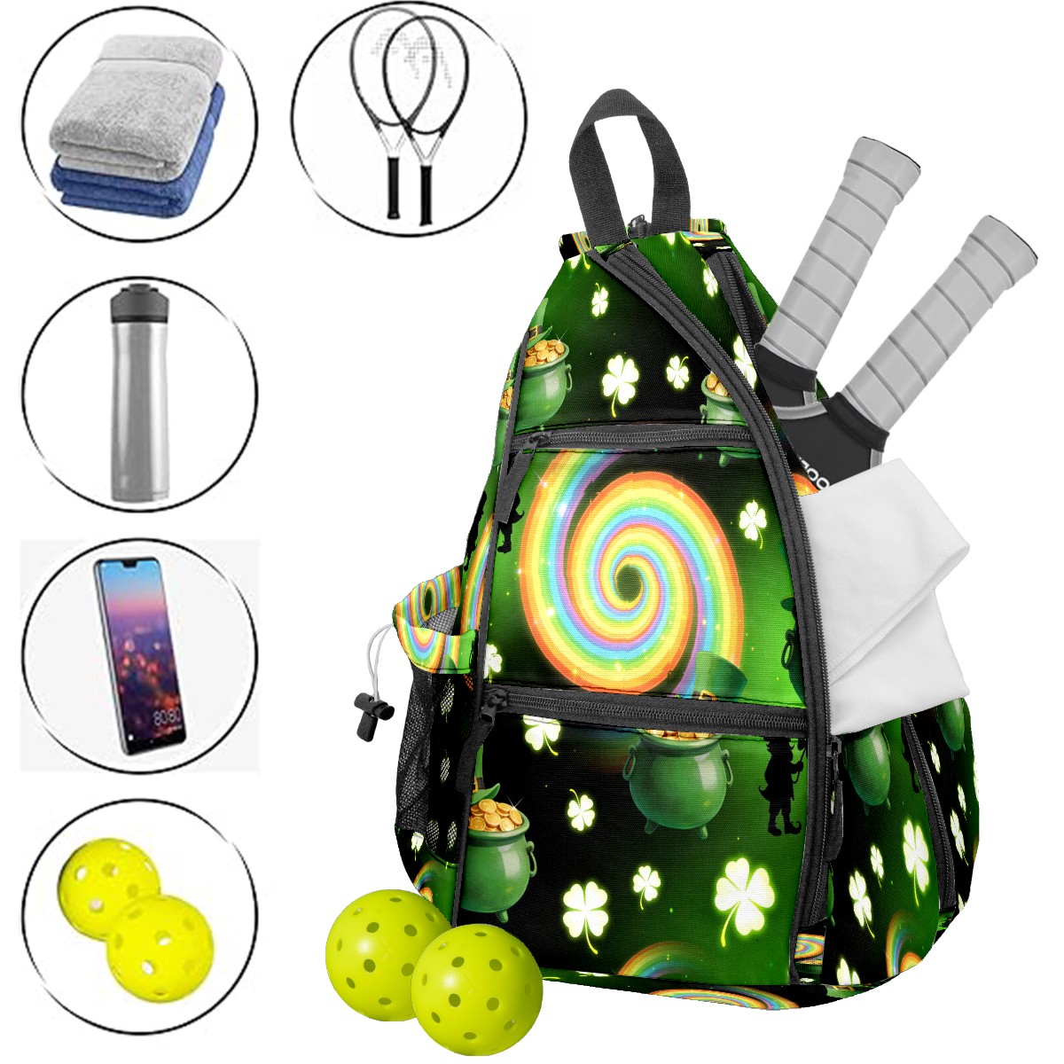 Tennis & Pickleball Backpack for Women Men | Padded 2-3 Paddle Compartment | Multi-Pocket Gym Backpack with Water Bottle Holder | Treasure Pot Dwarf Green