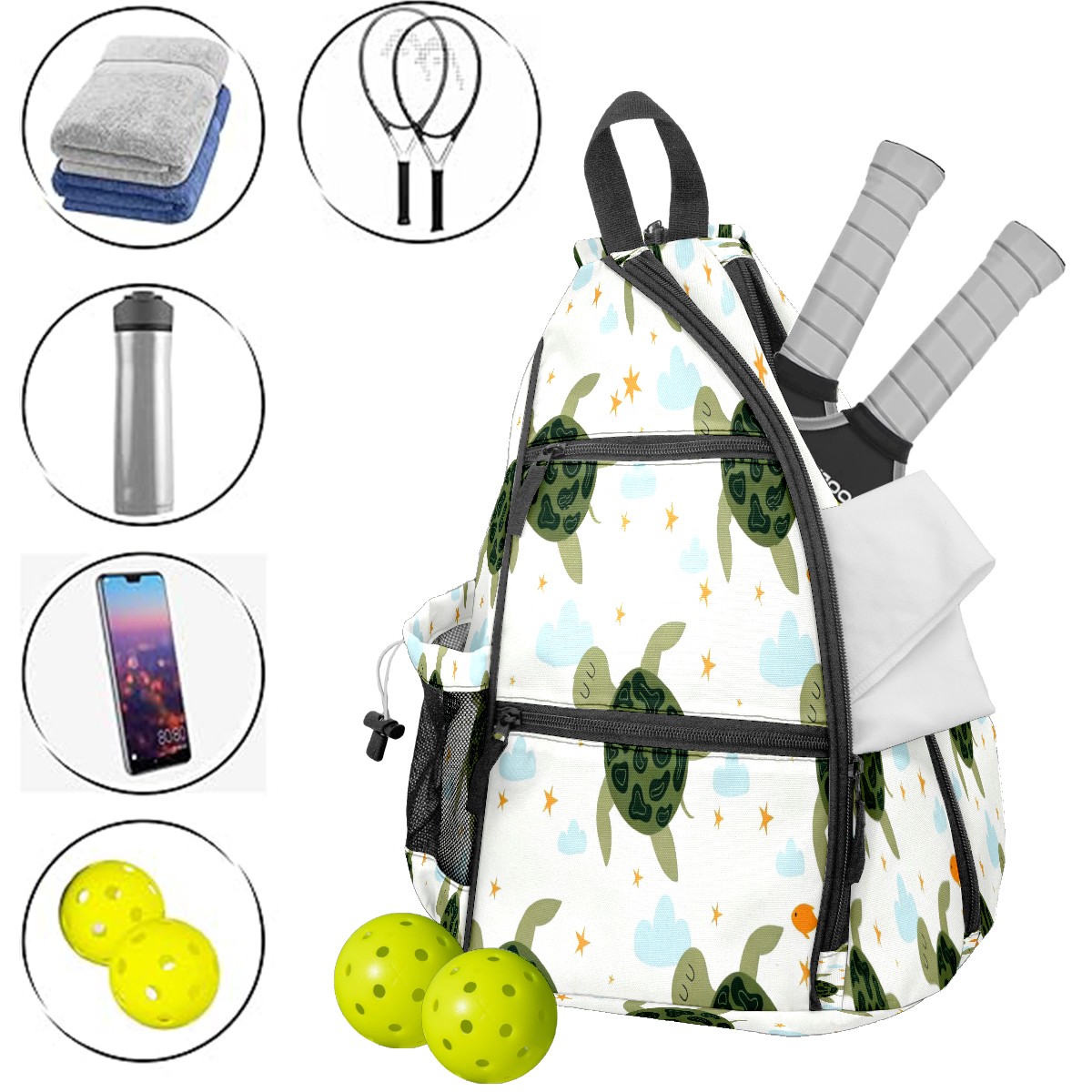 Tennis & Pickleball Backpack for Women Men | Padded 2-3 Paddle Compartment | Multi-Pocket Gym Backpack with Water Bottle Holder | Soft Turtle Green