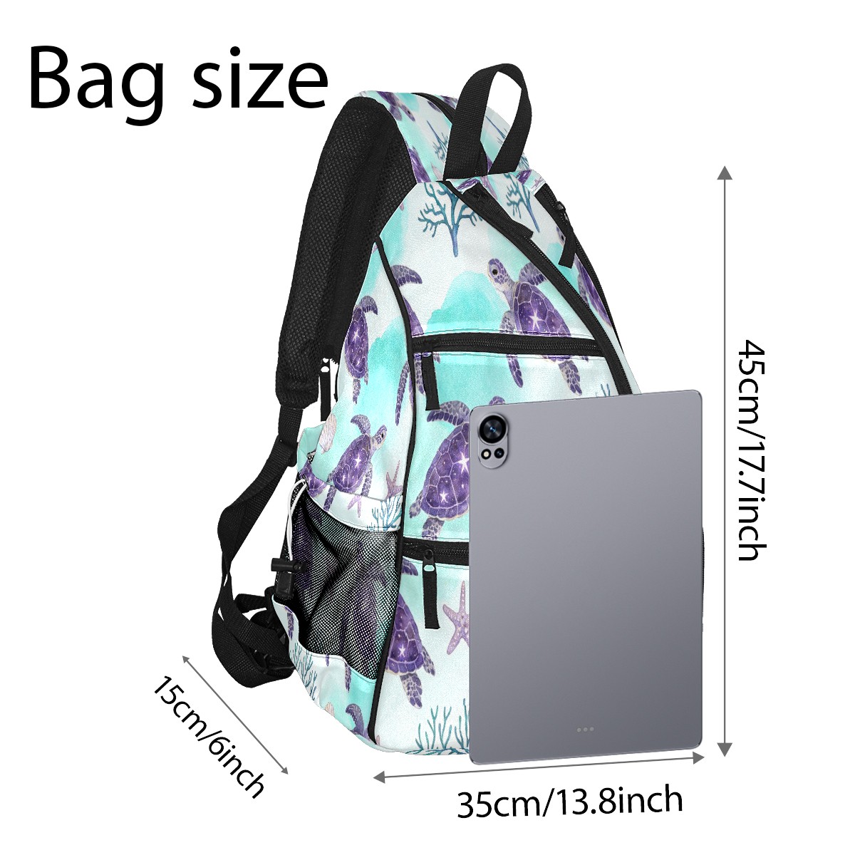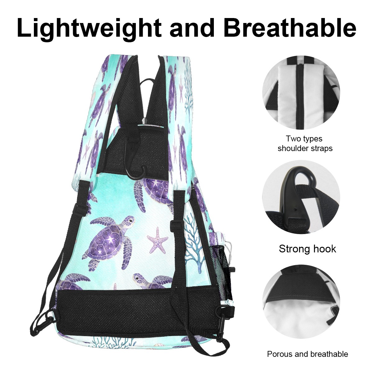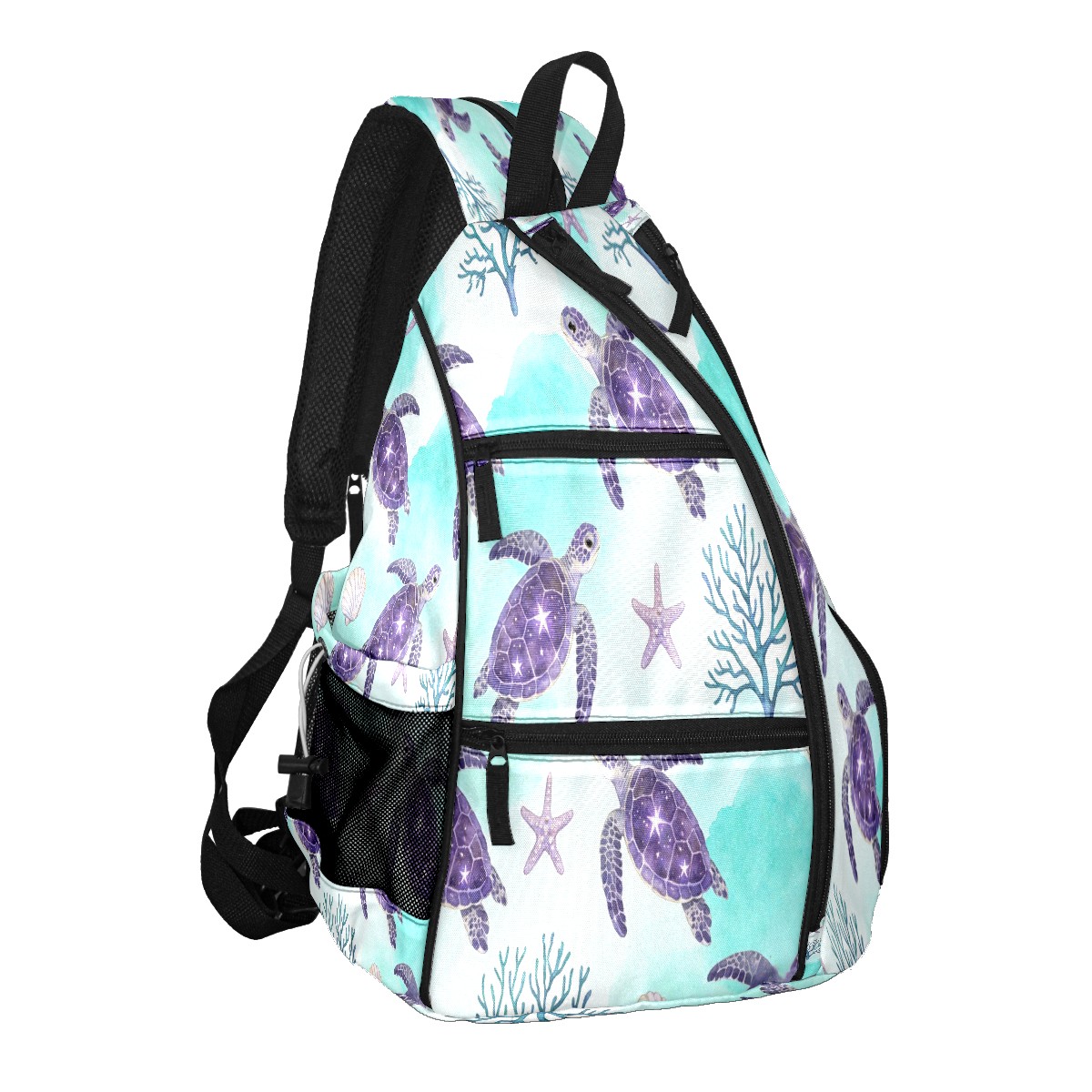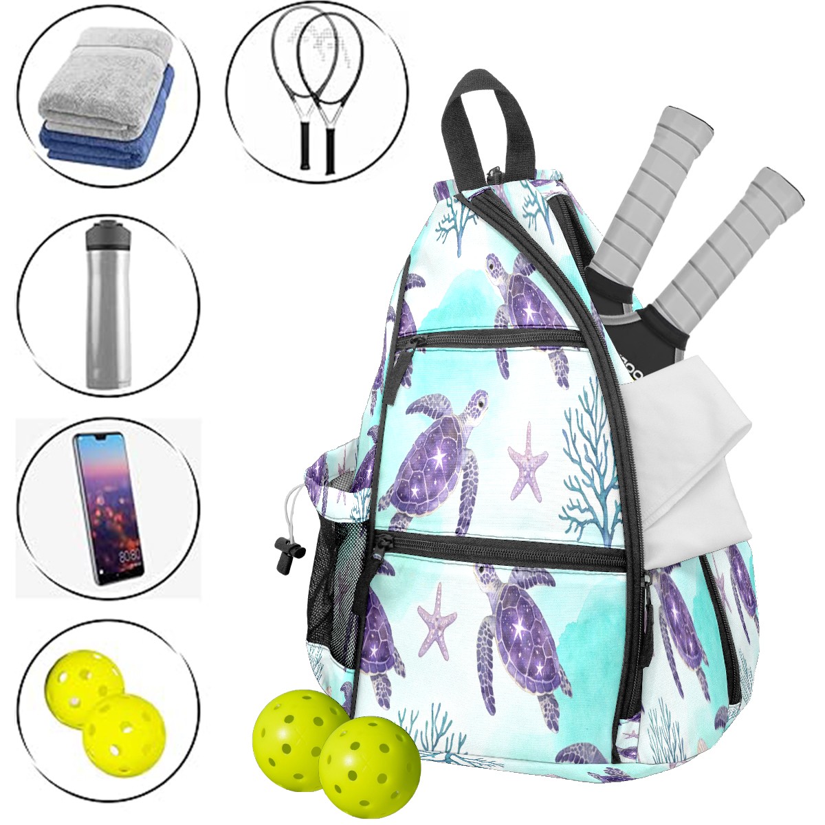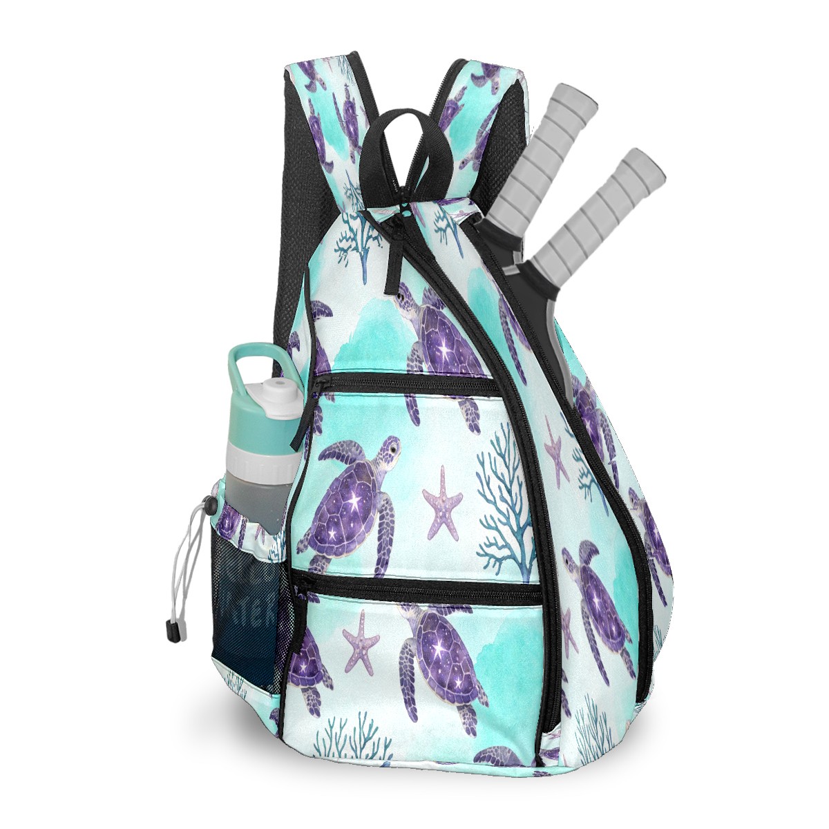 Tennis & Pickleball Backpack for Women Men | Padded 2-3 Paddle Compartment | Multi-Pocket Gym Backpack with Water Bottle Holder | Turtle Starfish Purple
