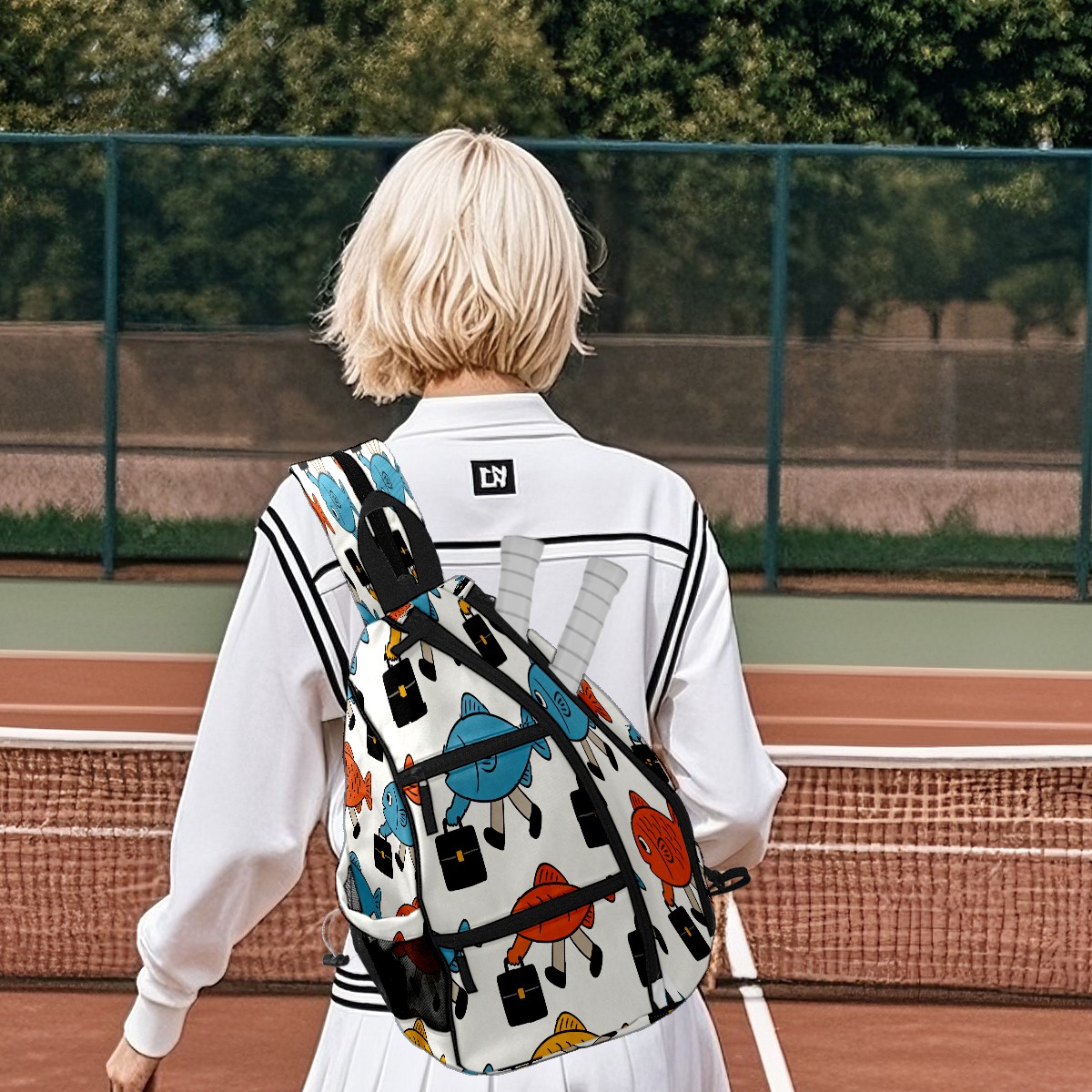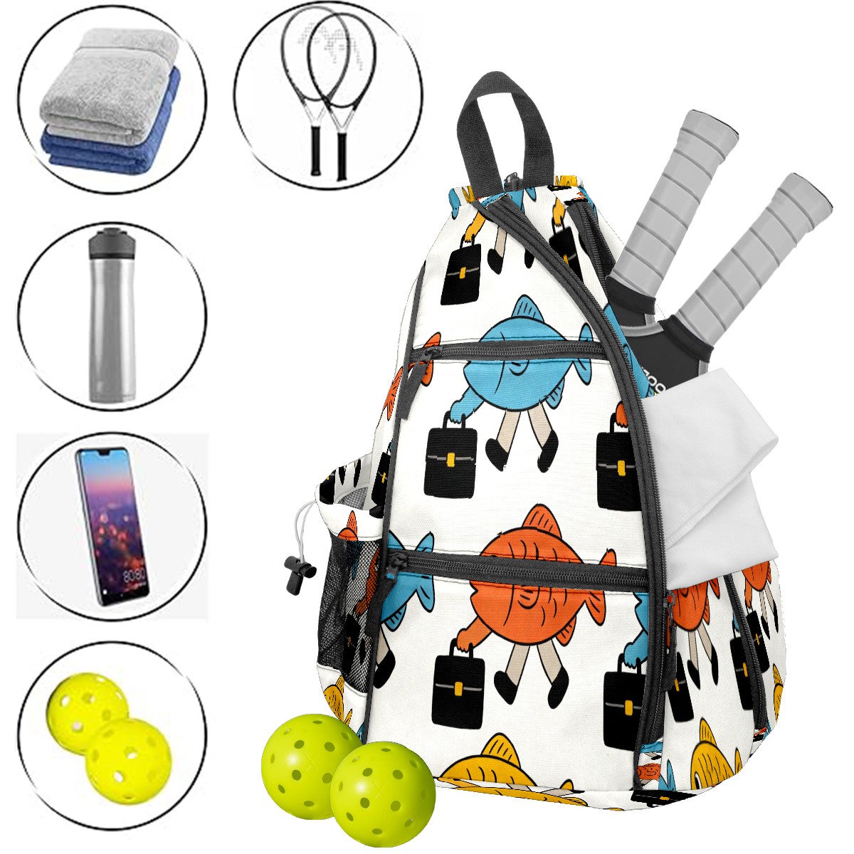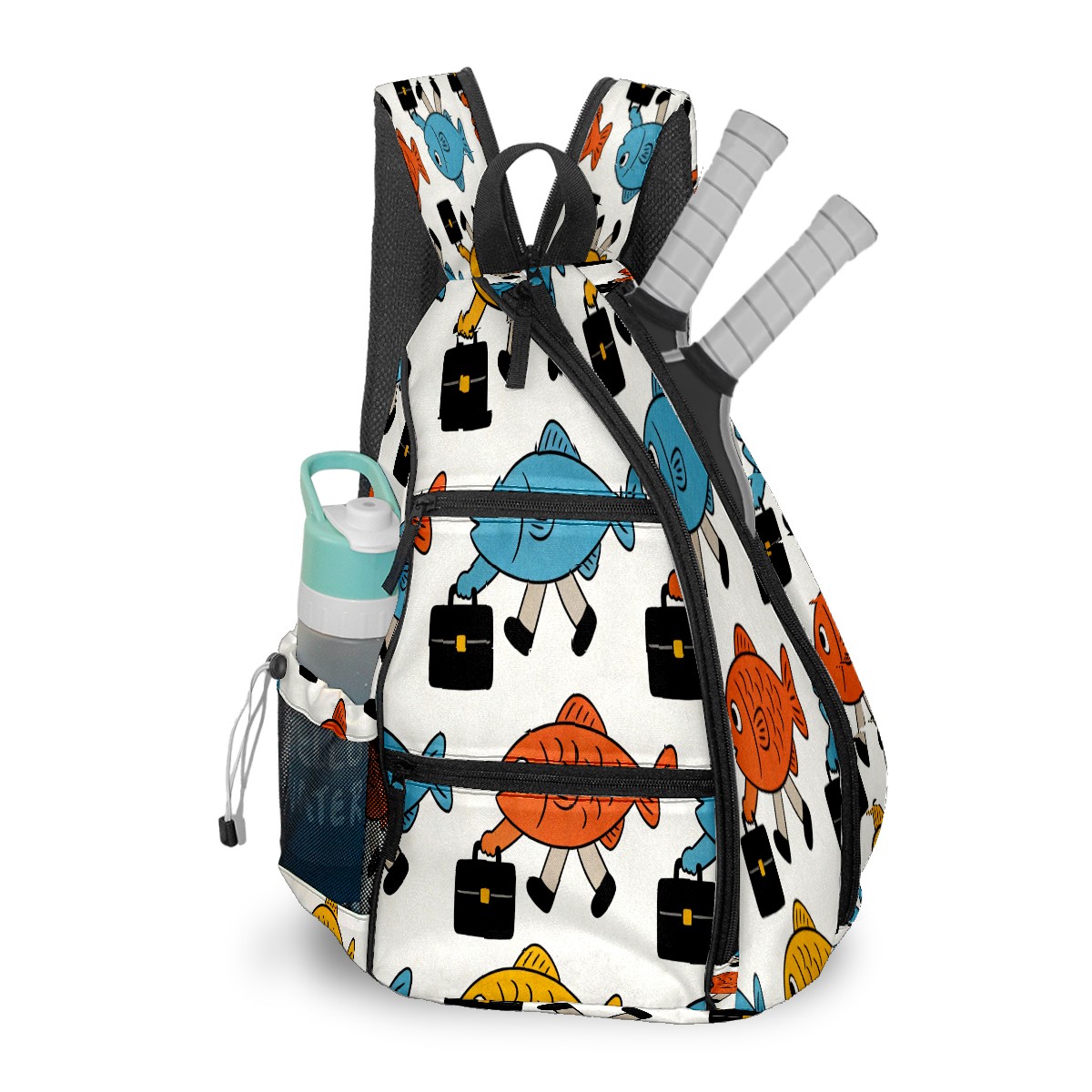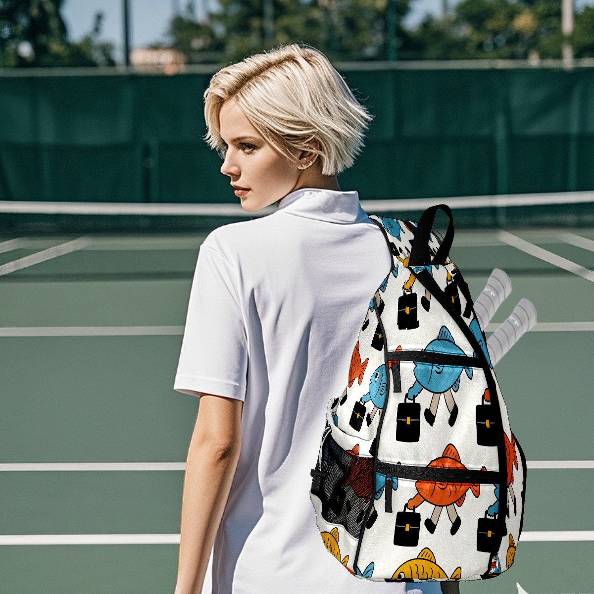 Tennis & Pickleball Backpack for Women Men | Padded 2-3 Paddle Compartment | Multi-Pocket Gym Backpack with Water Bottle Holder | Fish Luggage Orange