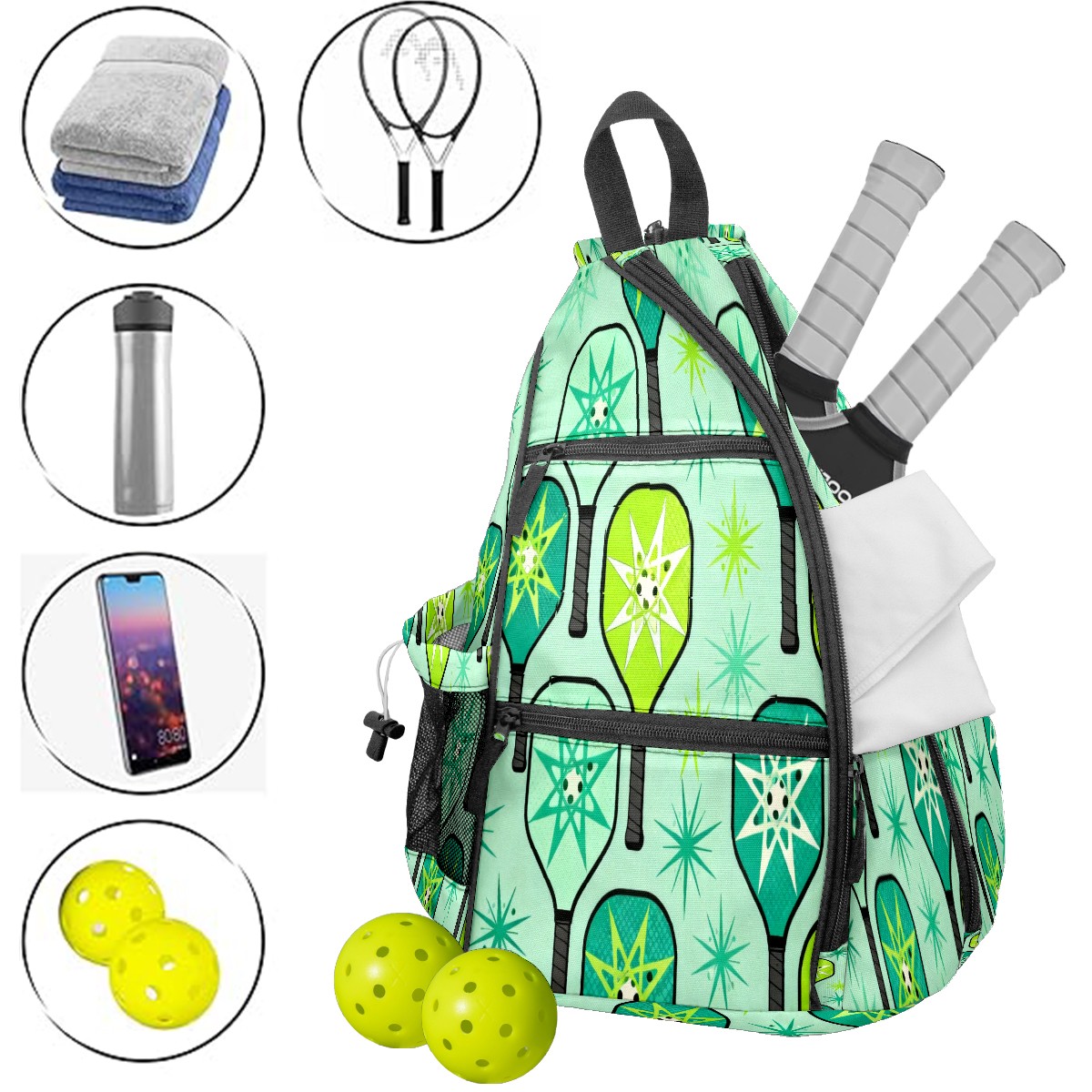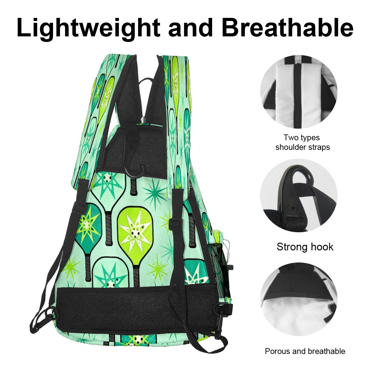 Tennis & Pickleball Backpack for Women Men | Padded 2-3 Paddle Compartment | Multi-Pocket Gym Backpack with Water Bottle Holder | Pickleball Racket Green