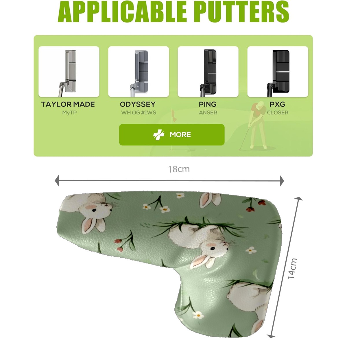 Golf Club Head Covers for Blade Putter, Waterproof Leather Headcovers for Golf Clubs, Ideal Golf Accessories Gift for Men Women (White Rabbits)