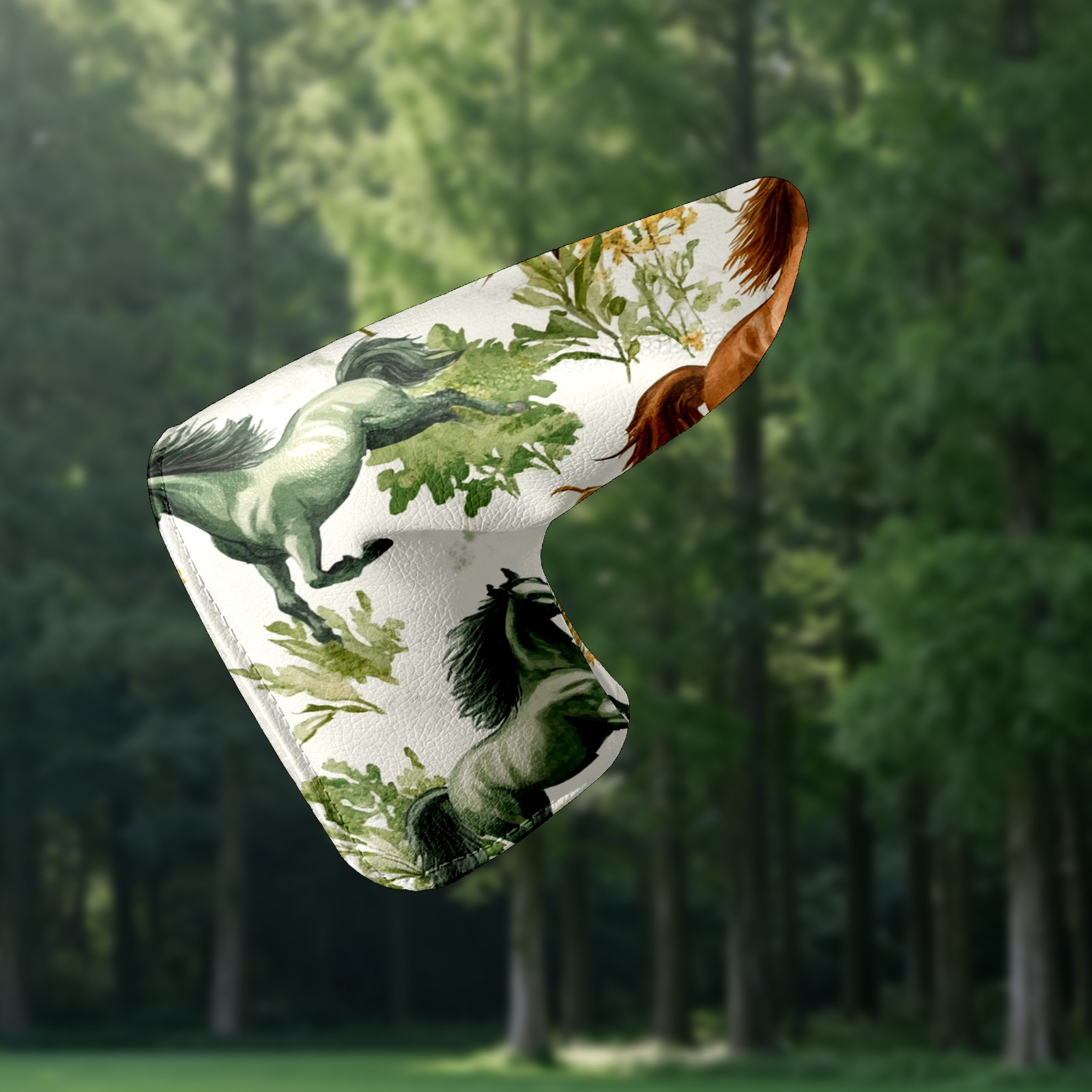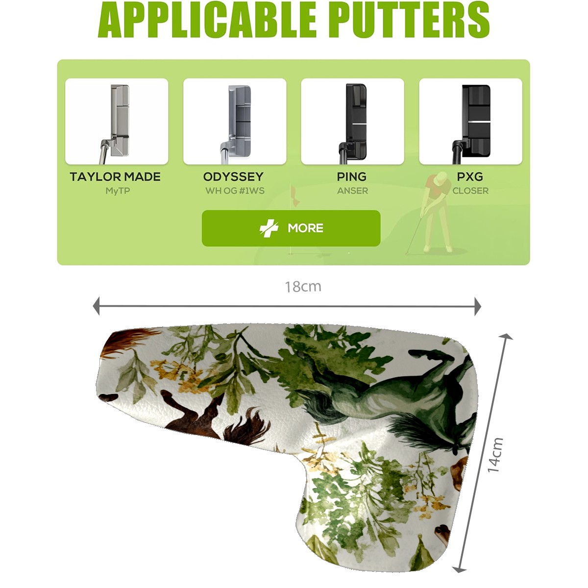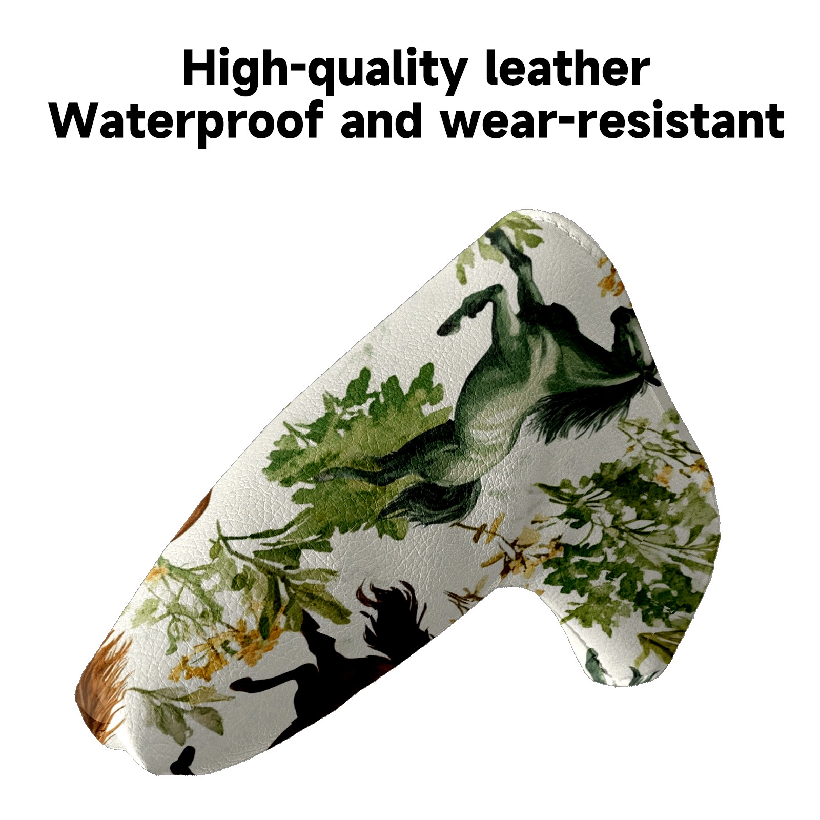 Golf Club Head Covers for Blade Putter, Waterproof Leather Headcovers for Golf Clubs, Ideal Golf Accessories Gift for Men Women (Galloping Horses)