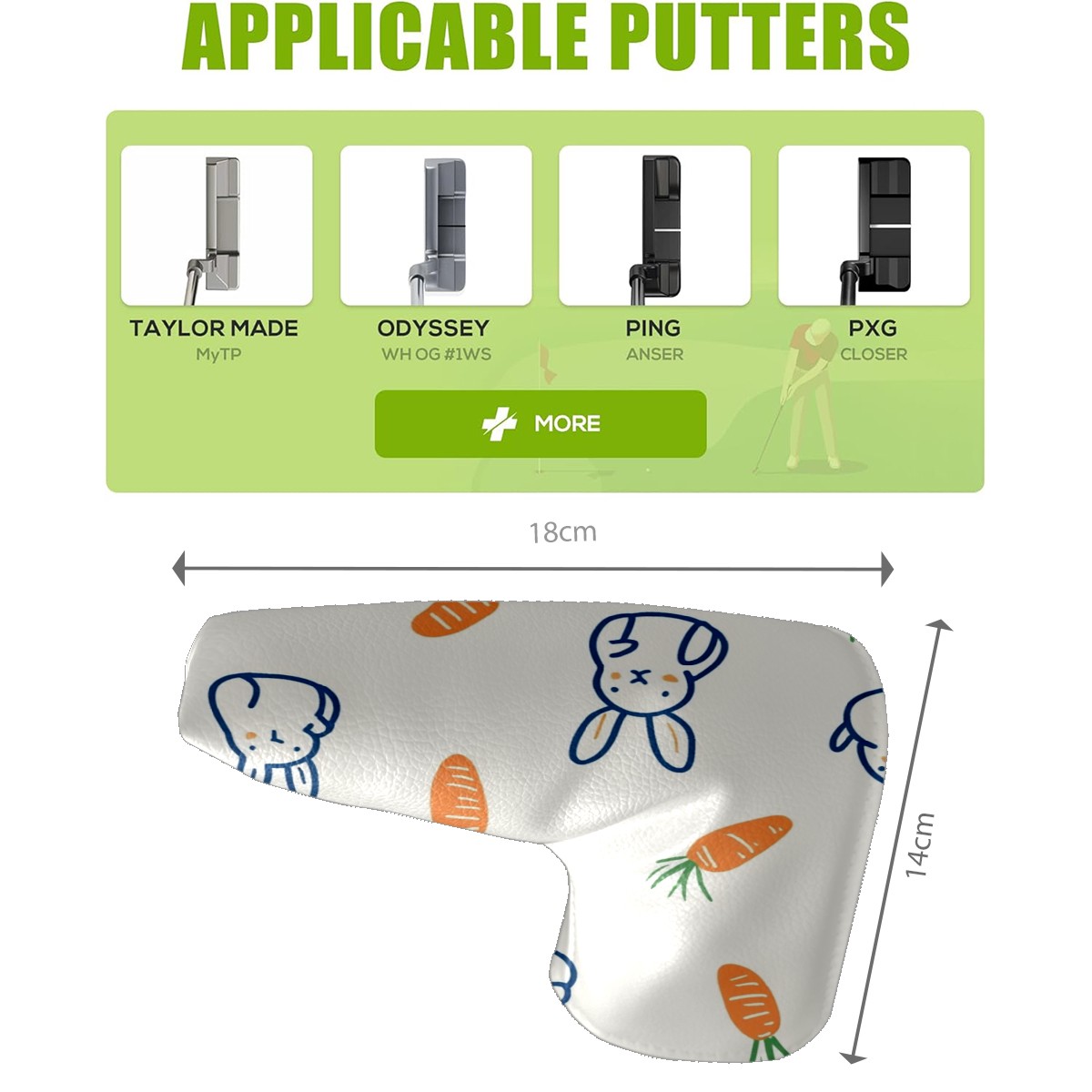 Golf Club Head Covers for Blade Putter, Waterproof Leather Headcovers for Golf Clubs, Ideal Golf Accessories Gift for Men Women (Rabbits And Carrots)