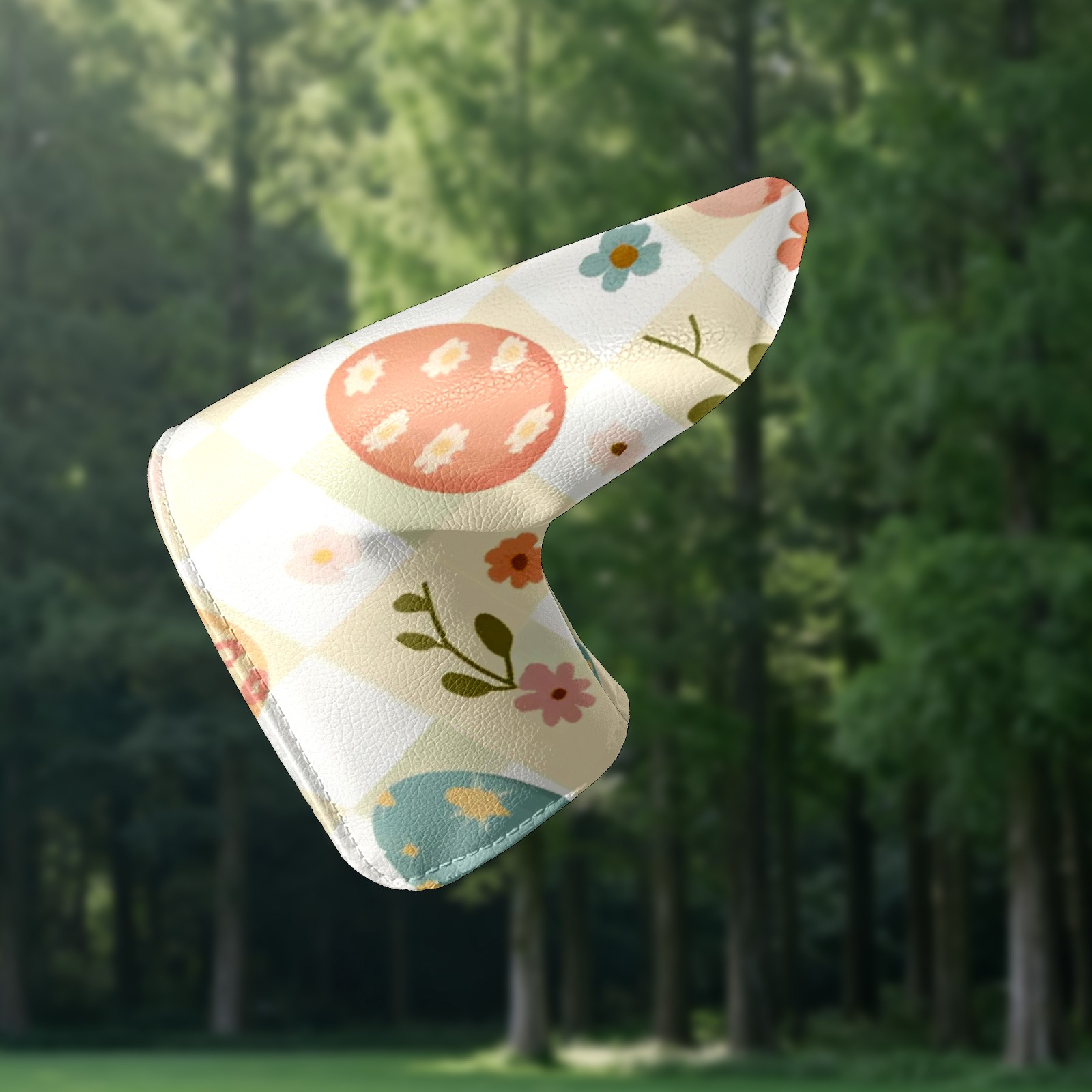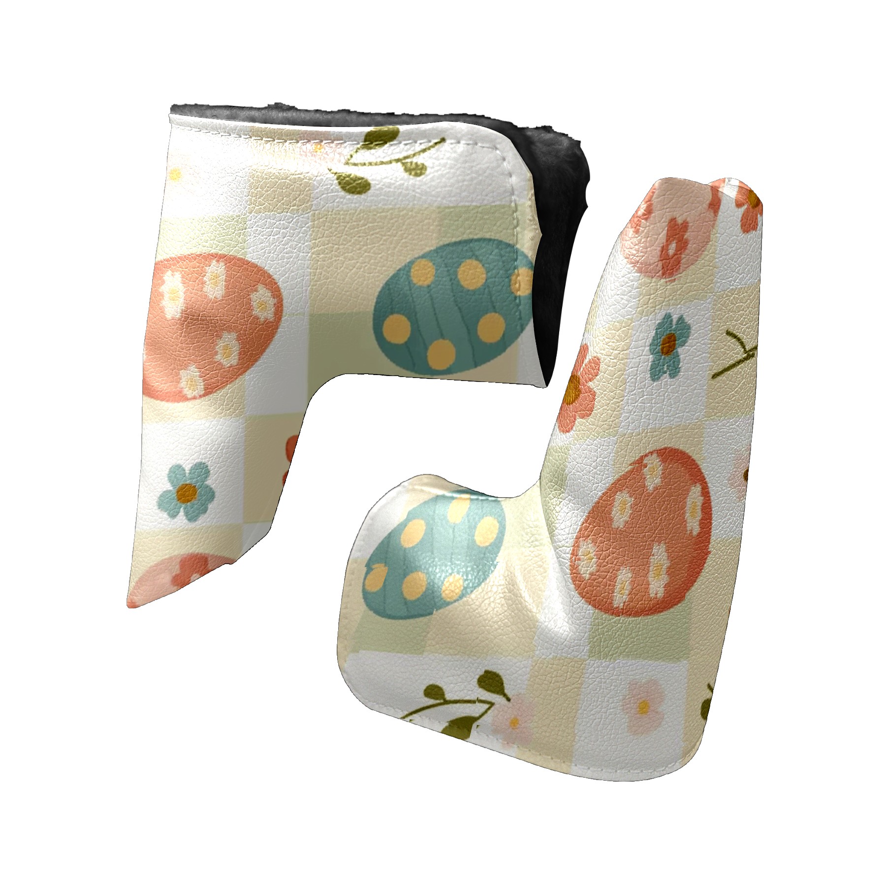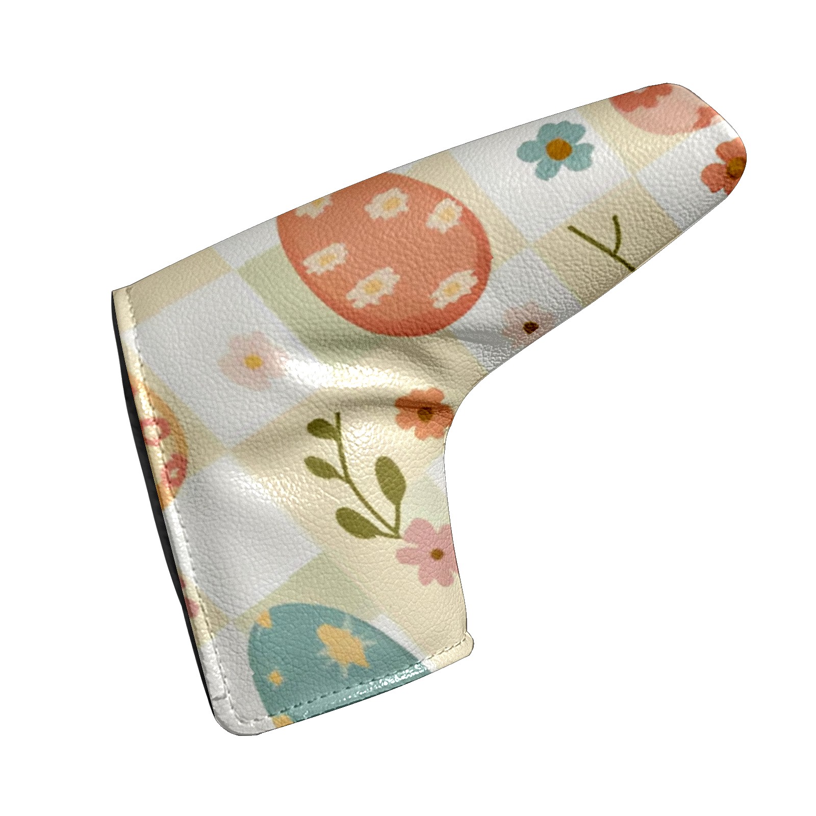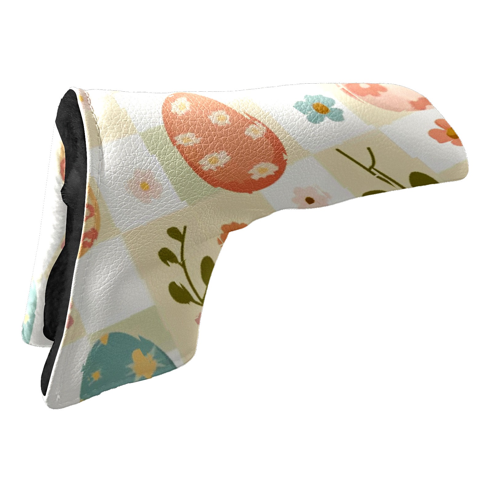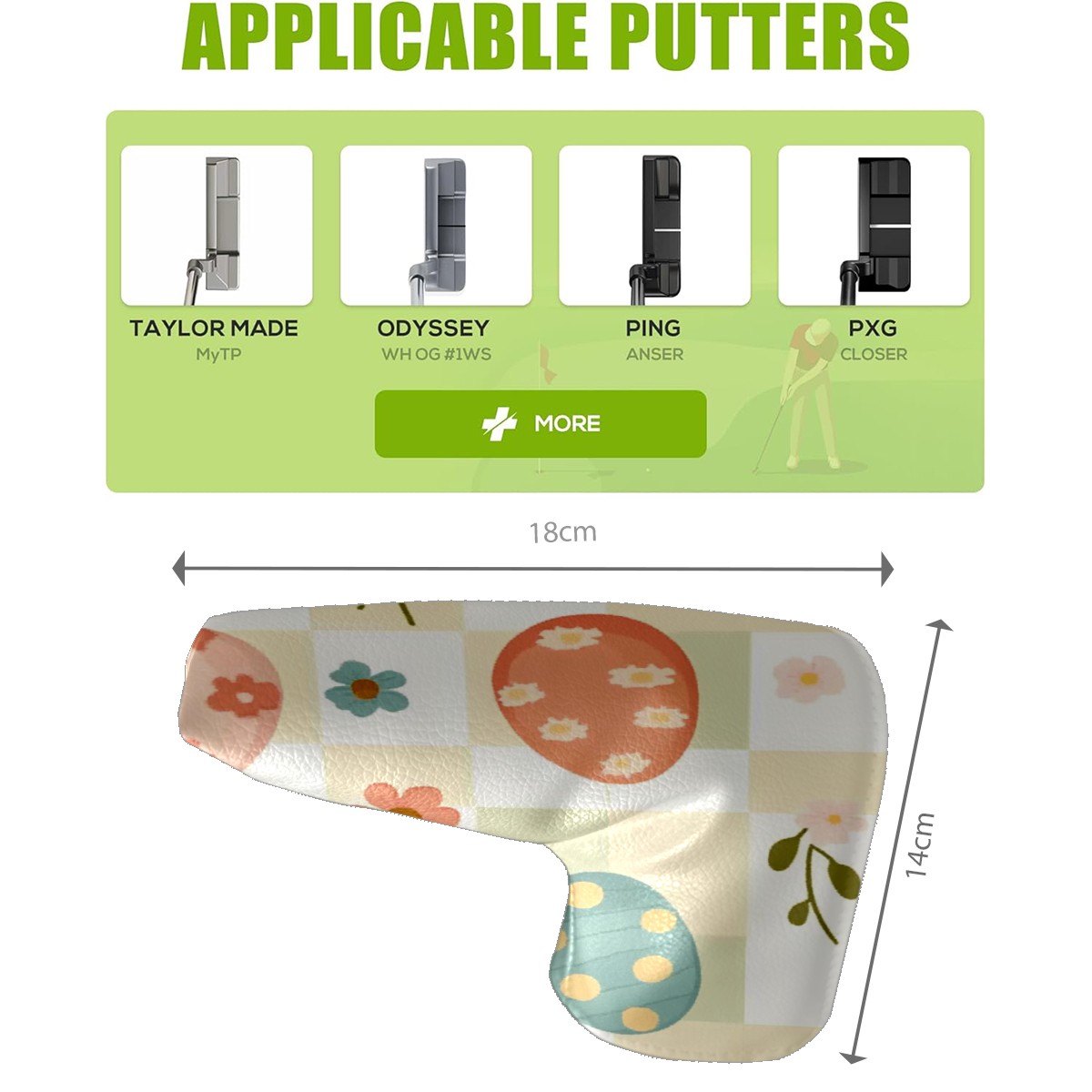 Golf Club Head Covers for Blade Putter, Waterproof Leather Headcovers for Golf Clubs, Ideal Golf Accessories Gift for Men Women (Cute Easter Eggs And Flowers)
