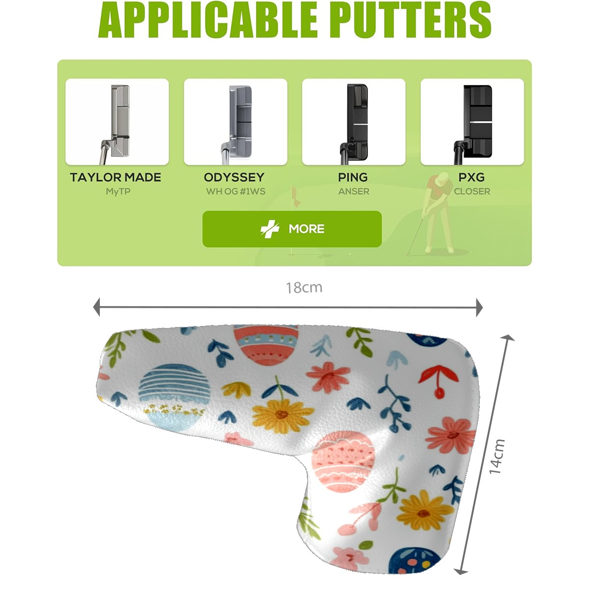 Golf Club Head Covers for Blade Putter, Waterproof Leather Headcovers for Golf Clubs, Ideal Golf Accessories Gift for Men Women (Easter-themed)