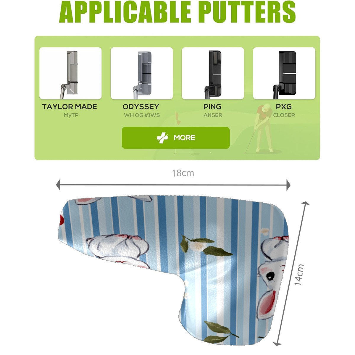Golf Club Head Covers for Blade Putter, Waterproof Leather Headcovers for Golf Clubs, Ideal Golf Accessories Gift for Men Women (Bunnies And Cherries)