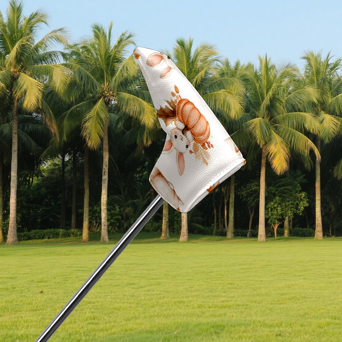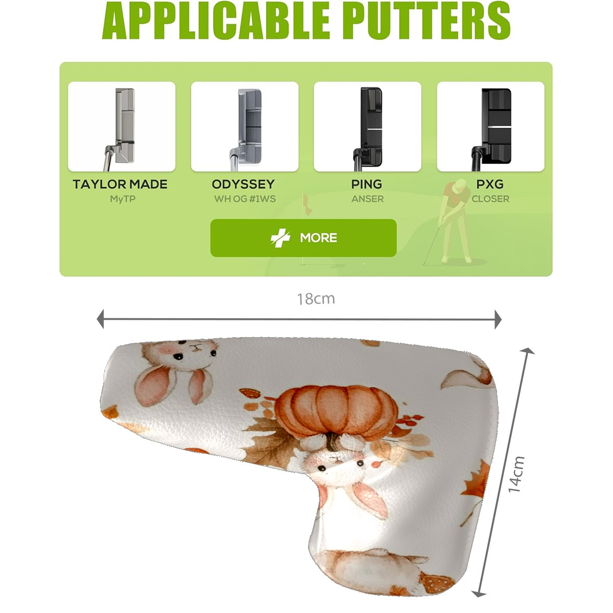 Golf Club Head Covers for Blade Putter, Waterproof Leather Headcovers for Golf Clubs, Ideal Golf Accessories Gift for Men Women (Bunnies And Pumpkin)