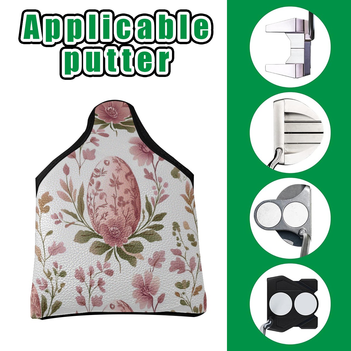 Golf Club Head Covers for Mallet Putter, Waterproof Leather Headcovers for Golf Clubs, Ideal Golf Accessories Gift for Men Women (Pink Egg-shaped Floral)