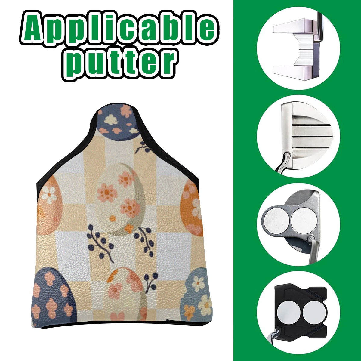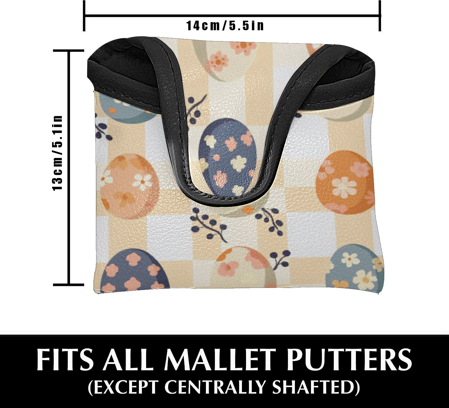Golf Club Head Covers for Mallet Putter, Waterproof Leather Headcovers for Golf Clubs, Ideal Golf Accessories Gift for Men Women (Pastel Easter Eggs And Flowers)