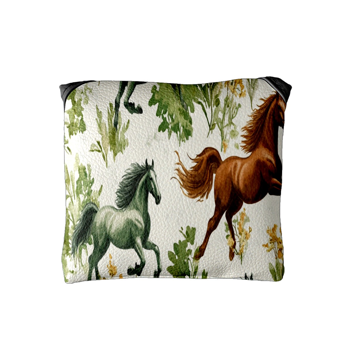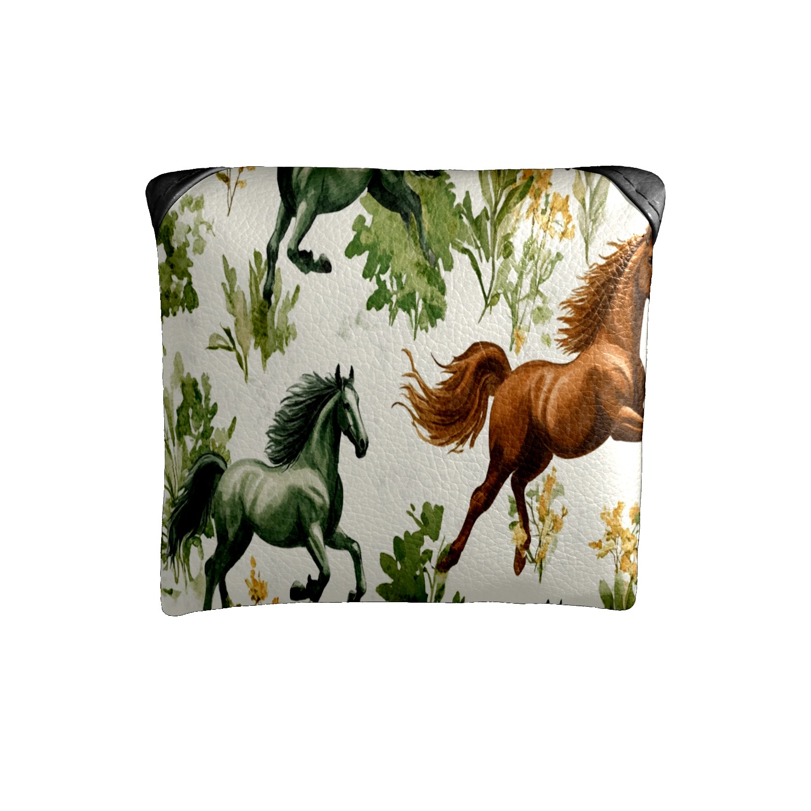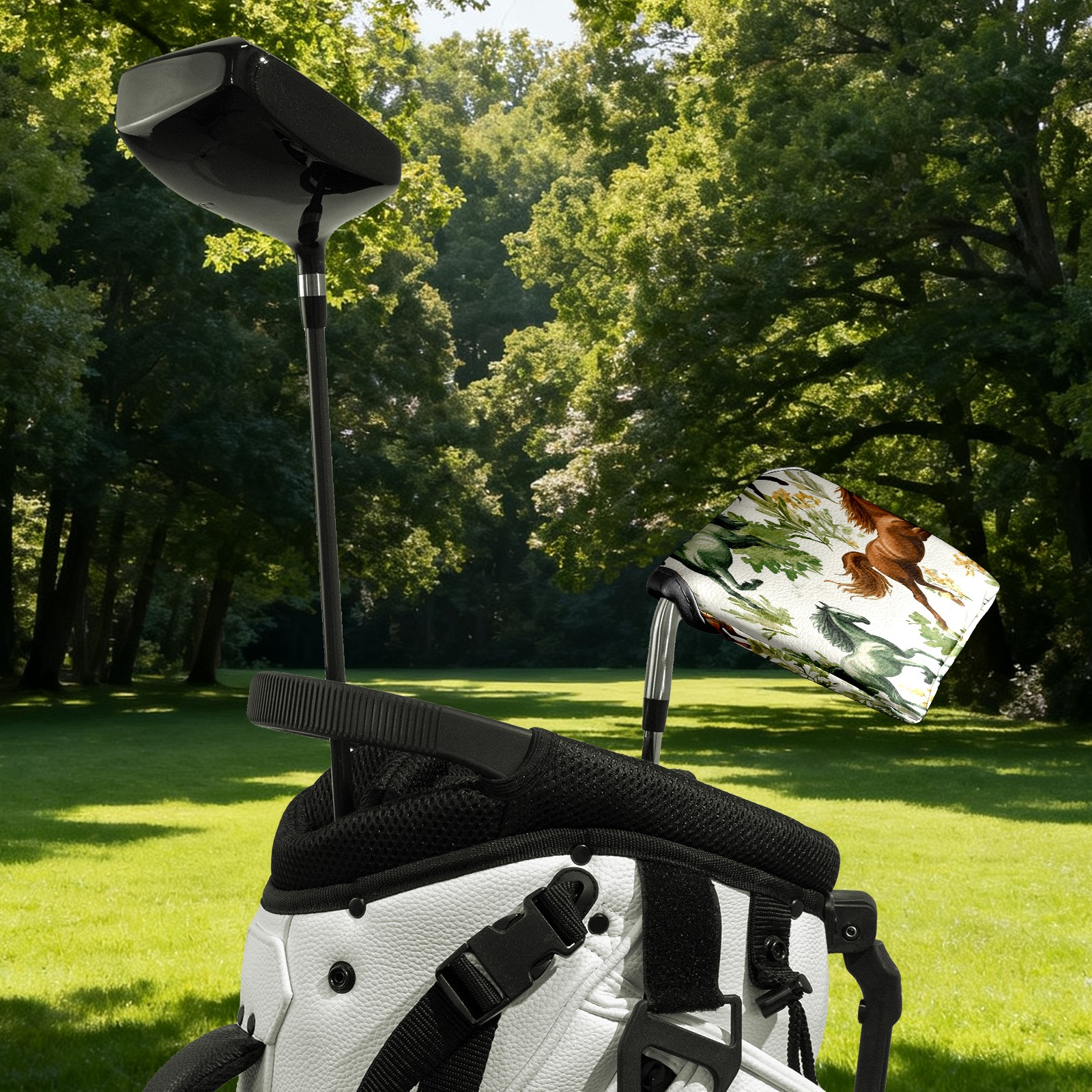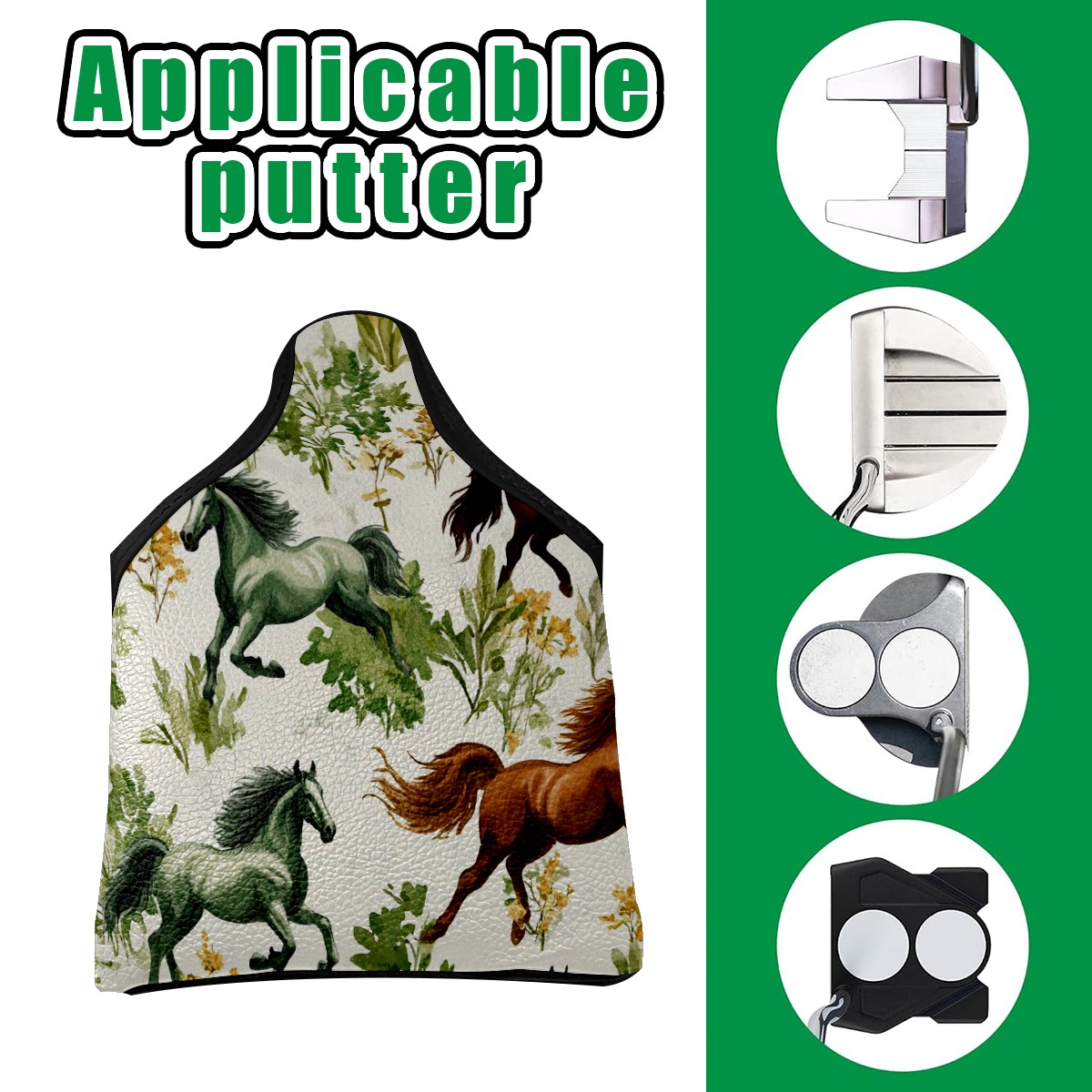 Golf Club Head Covers for Mallet Putter, Waterproof Leather Headcovers for Golf Clubs, Ideal Golf Accessories Gift for Men Women (Galloping Horses)