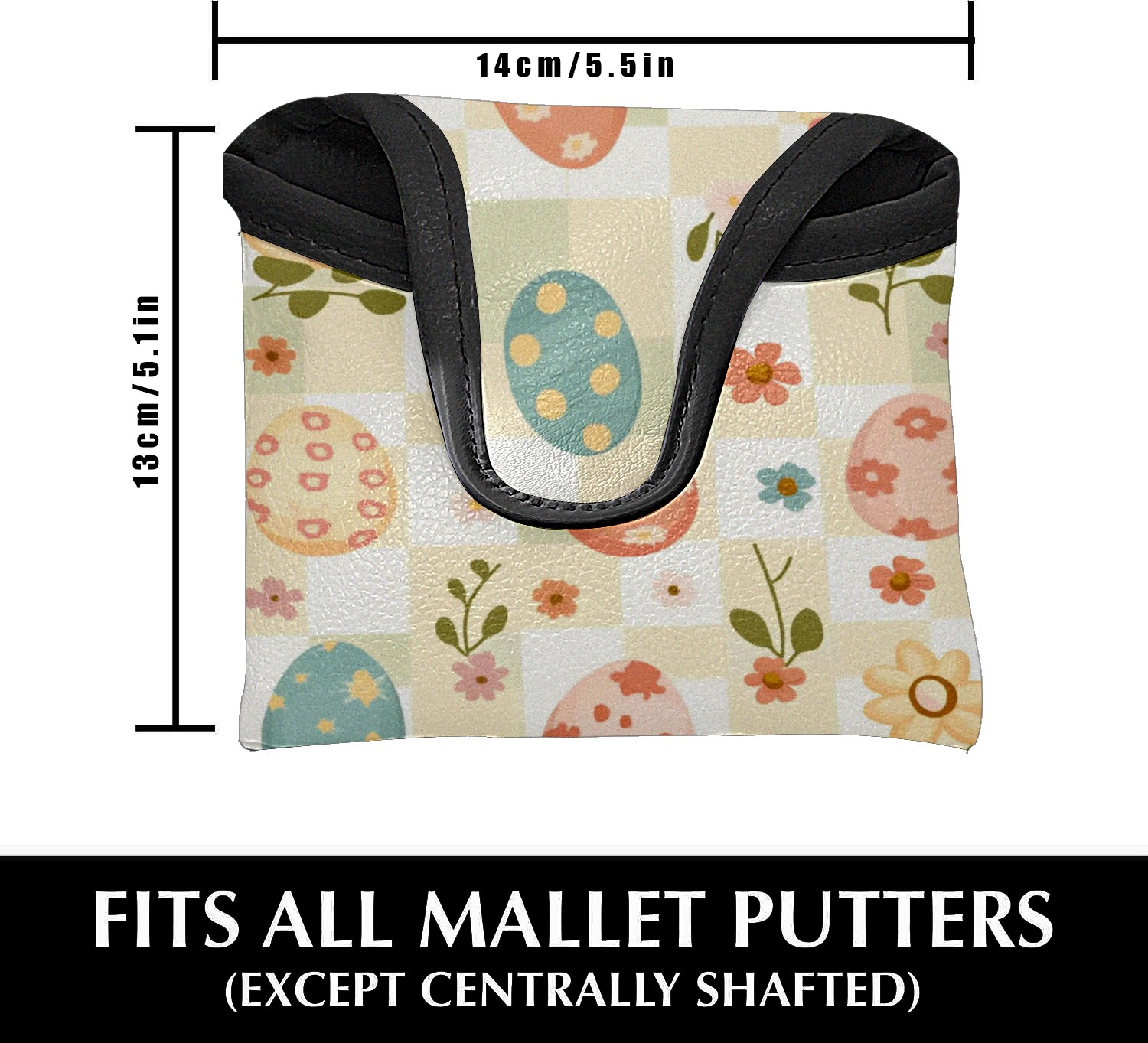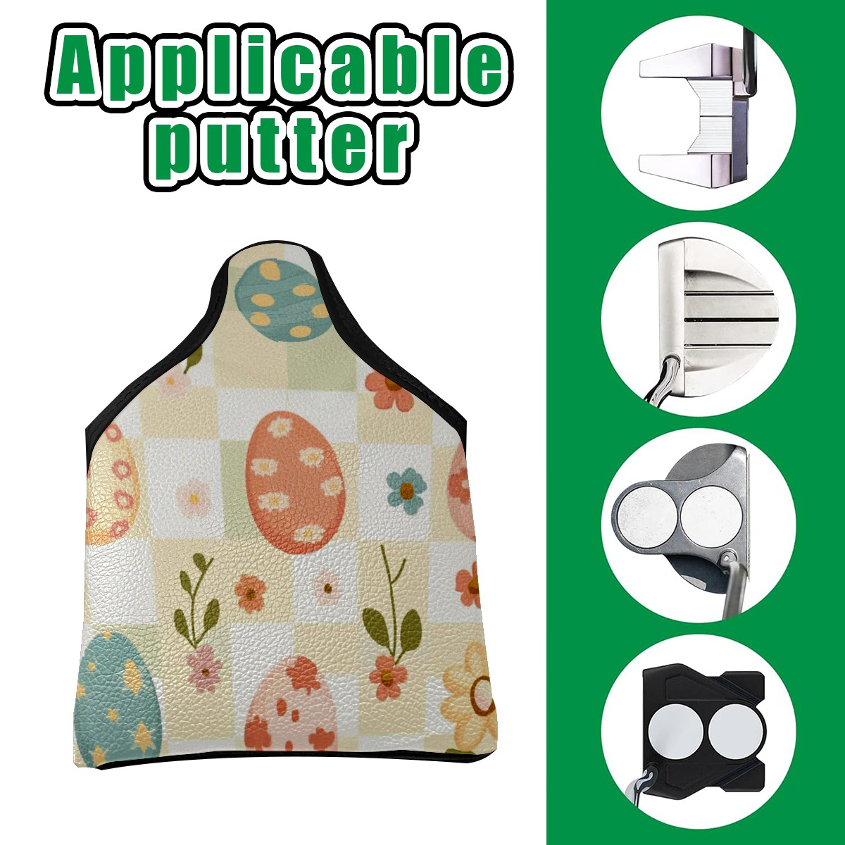 Golf Club Head Covers for Mallet Putter, Waterproof Leather Headcovers for Golf Clubs, Ideal Golf Accessories Gift for Men Women (Cute Easter Eggs And Flowers)