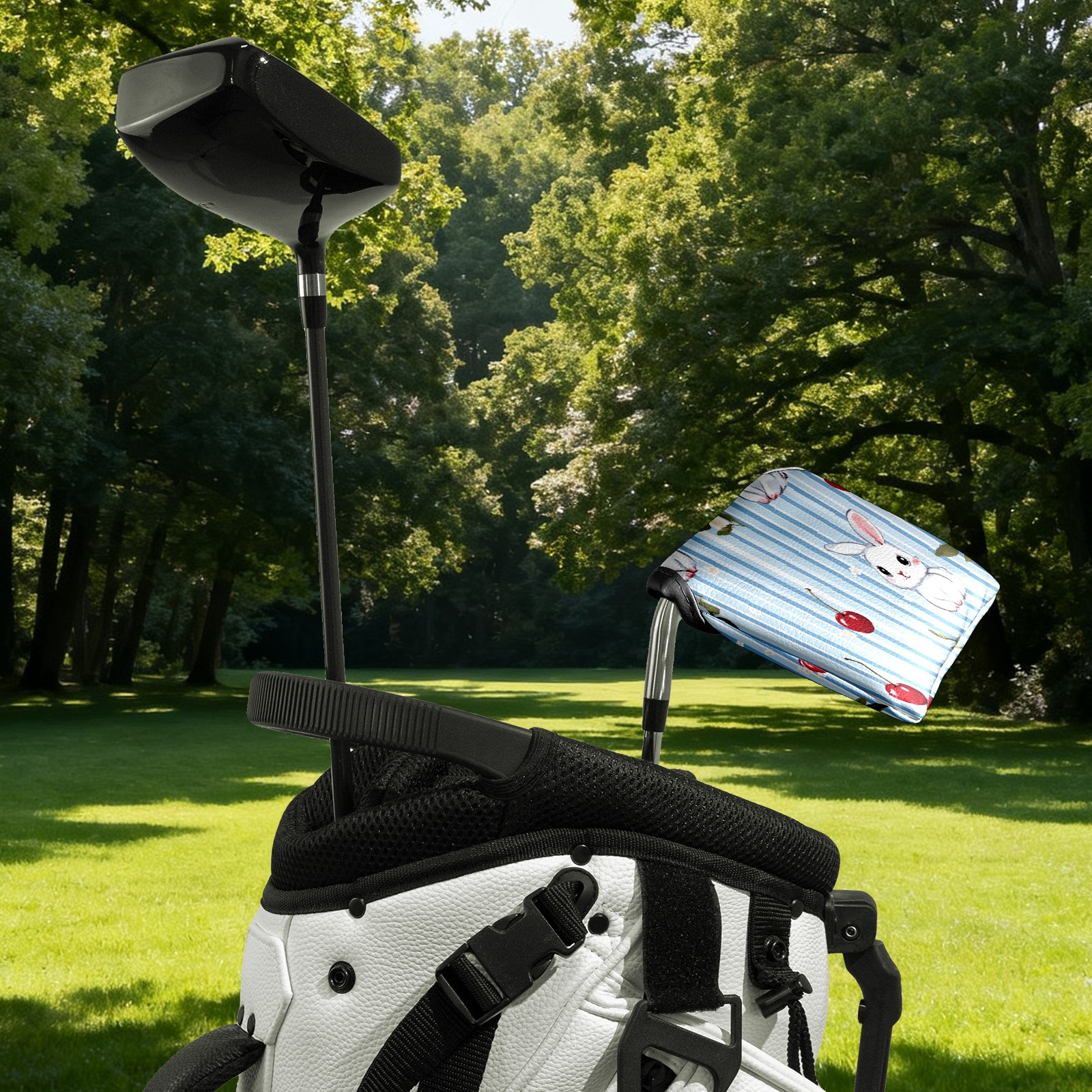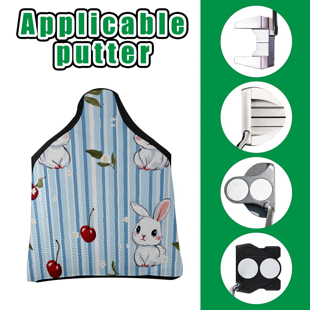 Golf Club Head Covers for Mallet Putter, Waterproof Leather Headcovers for Golf Clubs, Ideal Golf Accessories Gift for Men Women (Bunnies And Cherries)