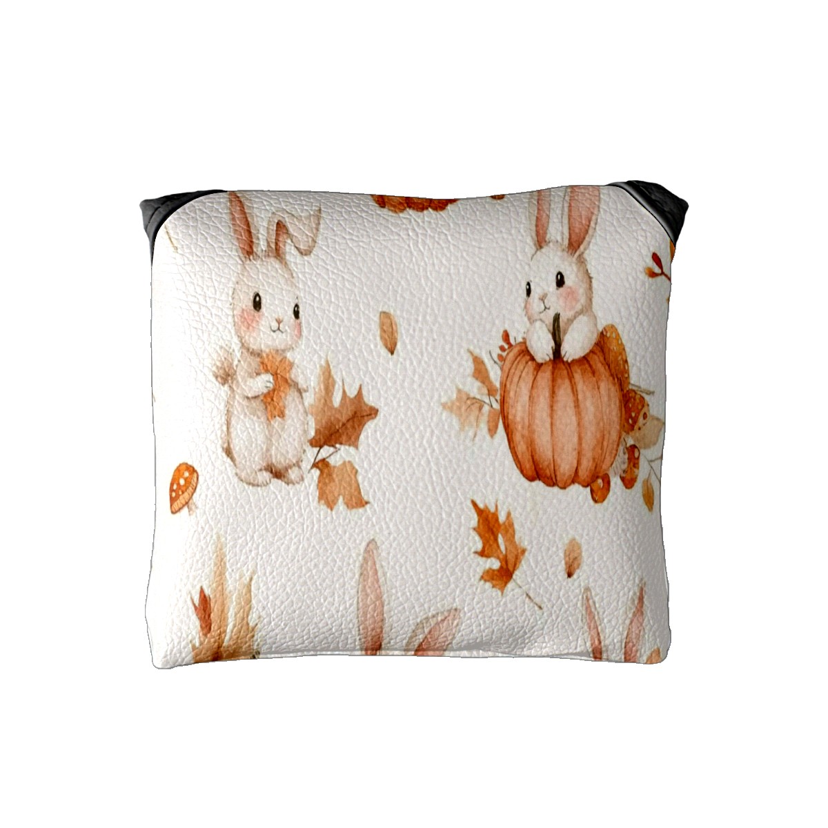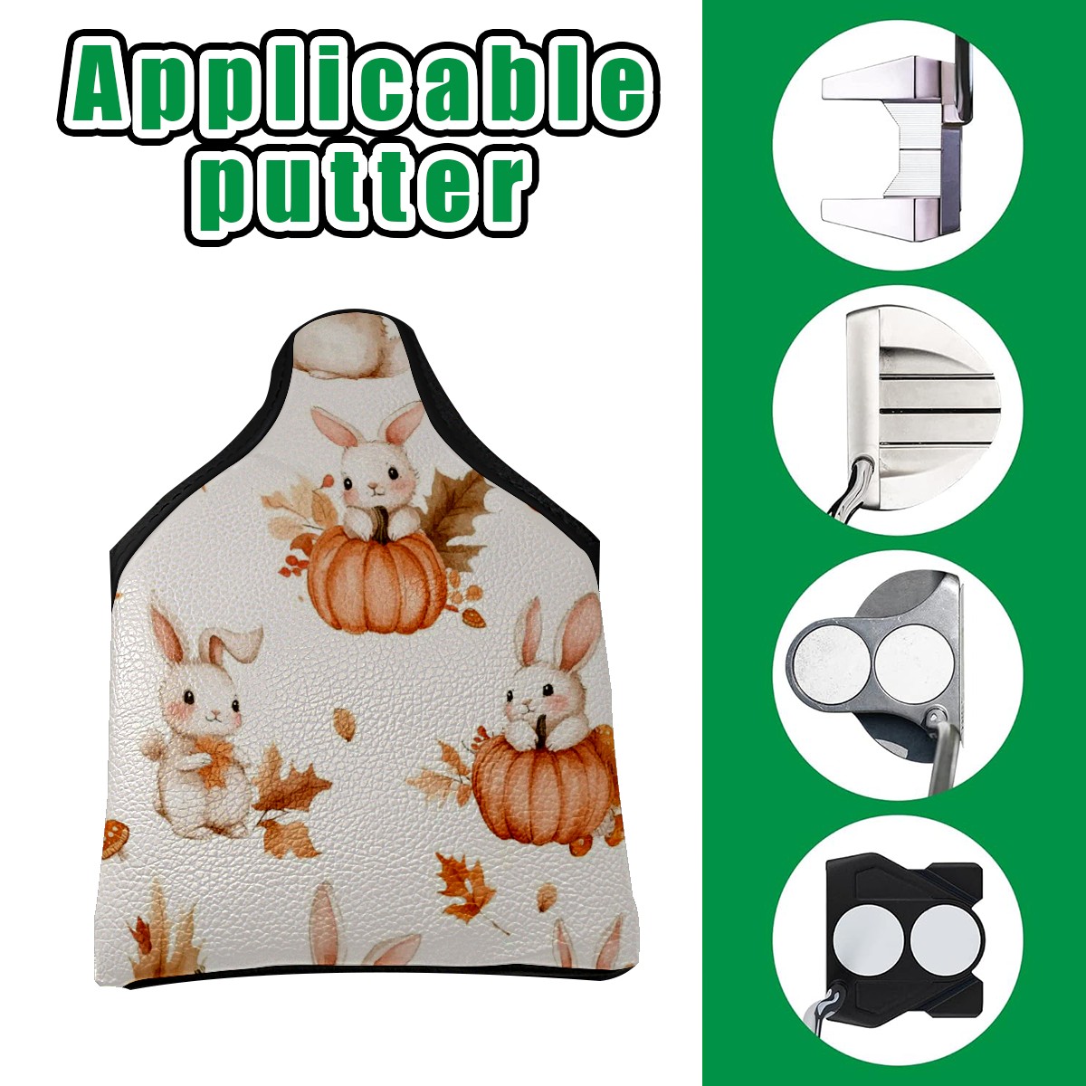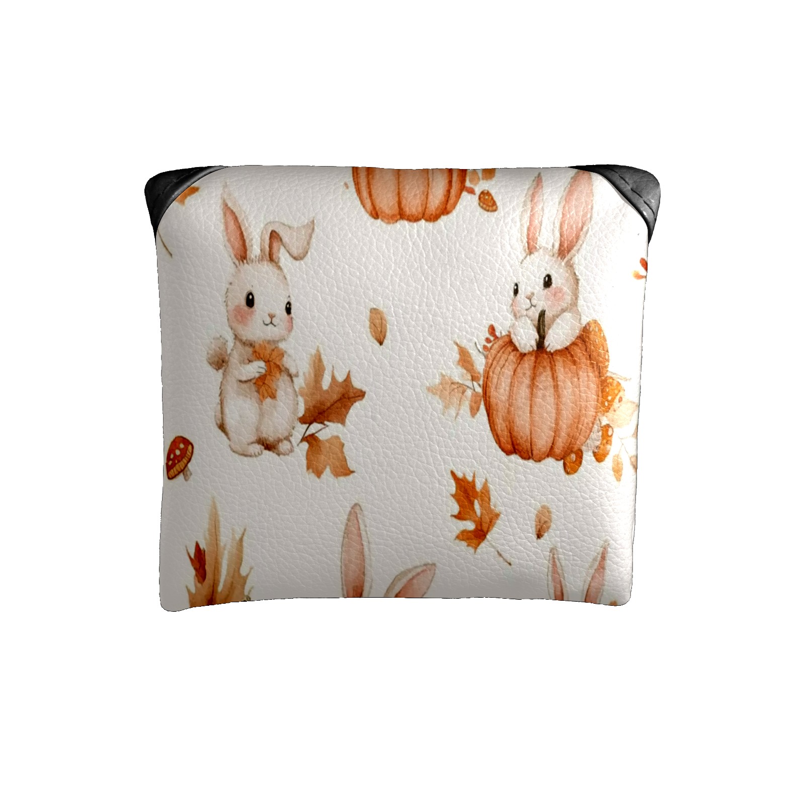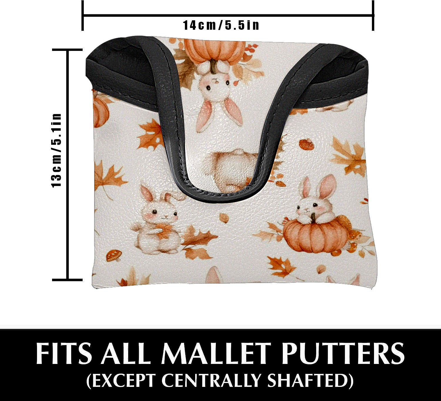 Golf Club Head Covers for Mallet Putter, Waterproof Leather Headcovers for Golf Clubs, Ideal Golf Accessories Gift for Men Women (Bunnies And Pumpkin)