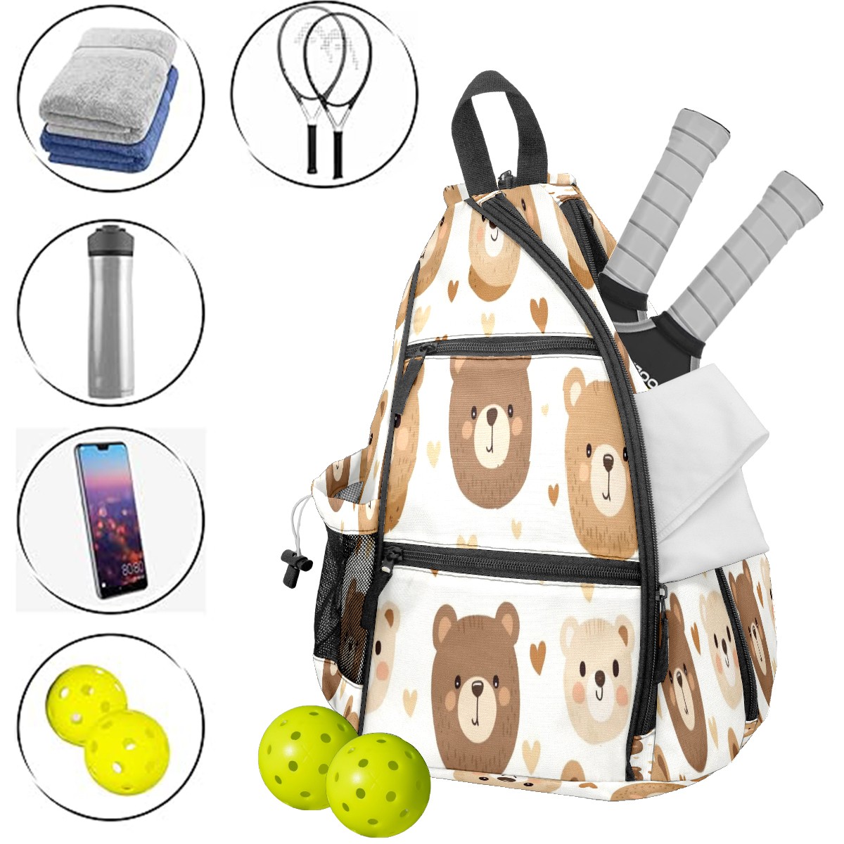 Pickleball Backpack for Women and Men, Adjustable Pickleball Sling Bag for Paddles, Balls & Accessories (Teddy Bear)