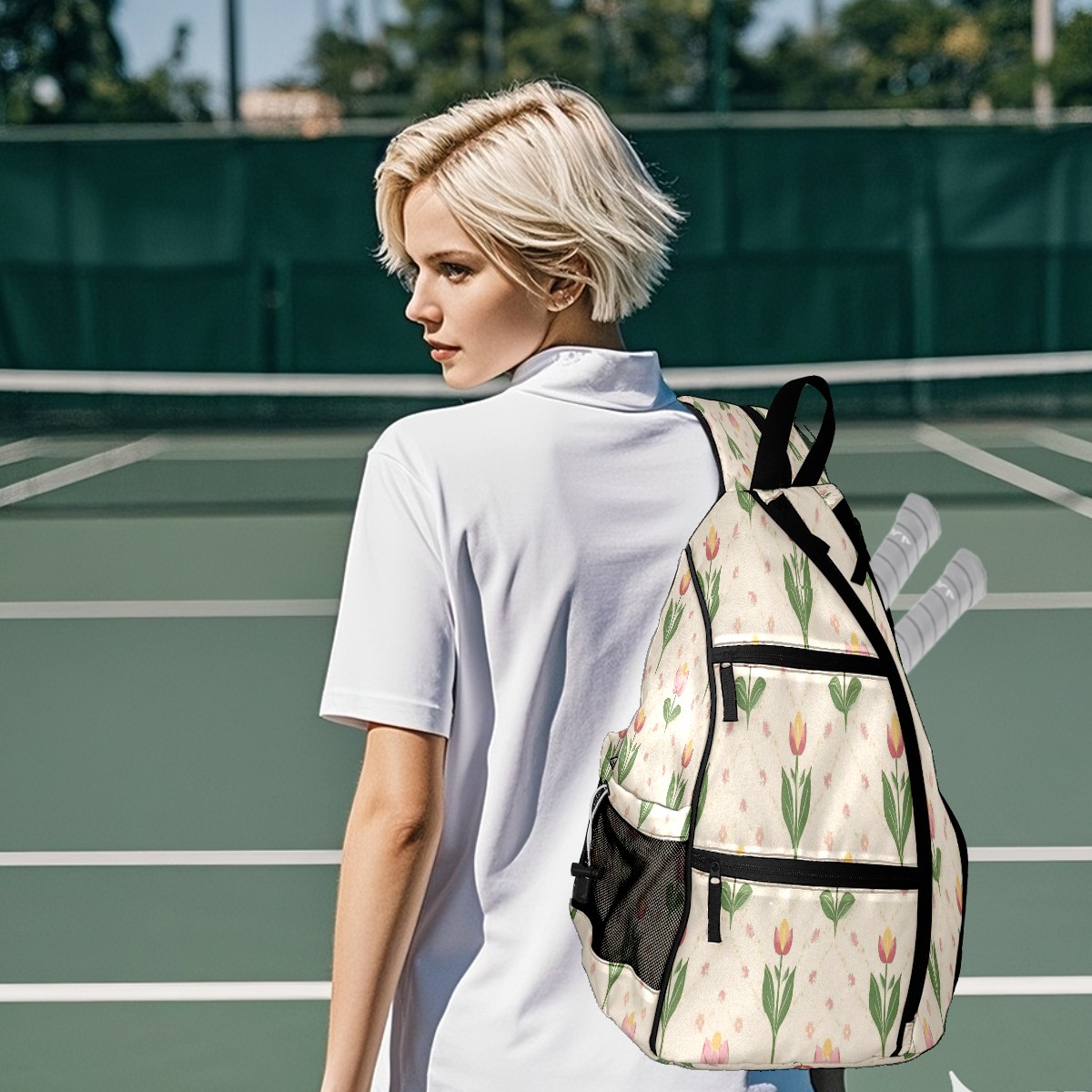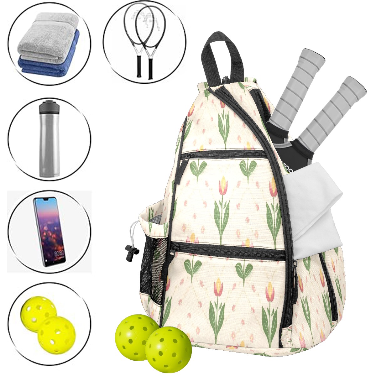 Pickleball Backpack for Women and Men, Adjustable Pickleball Sling Bag for Paddles, Balls & Accessories (Small Tulips)
