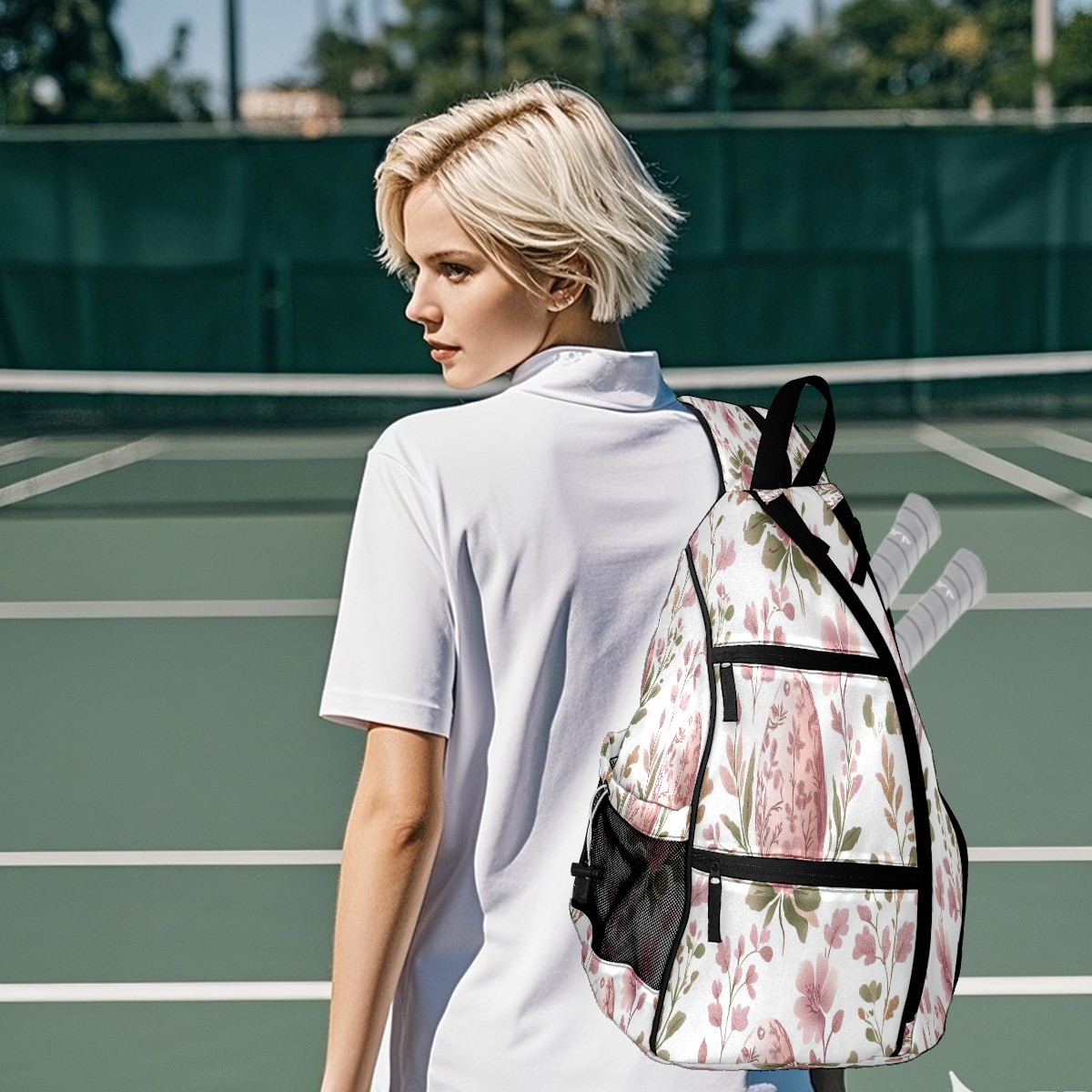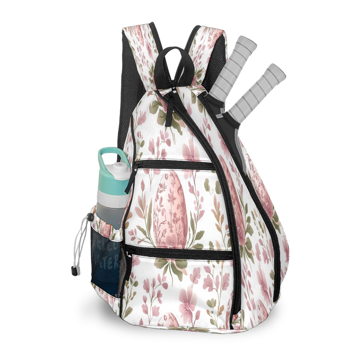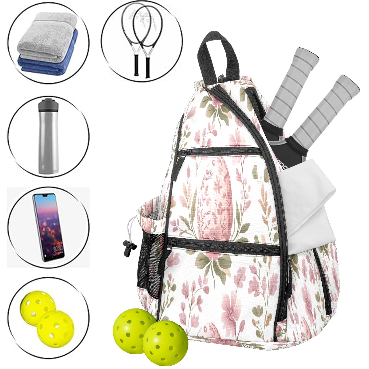 Pickleball Backpack for Women and Men, Adjustable Pickleball Sling Bag for Paddles, Balls & Accessories (Pink Egg-shaped Floral)